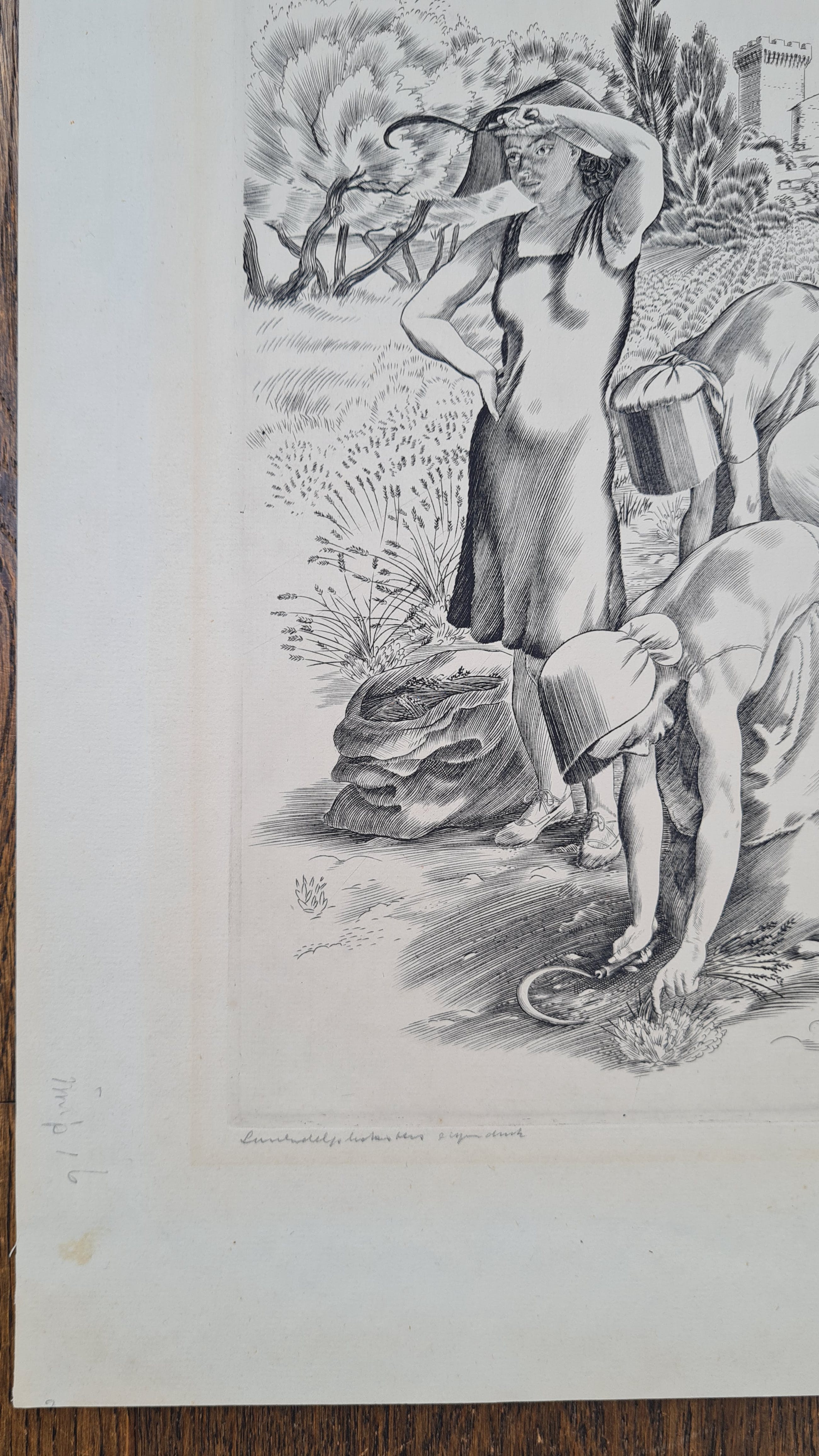 Mooie kopergravure van Kuno Brinks, handgesigneerd en getiteld in potlood.
