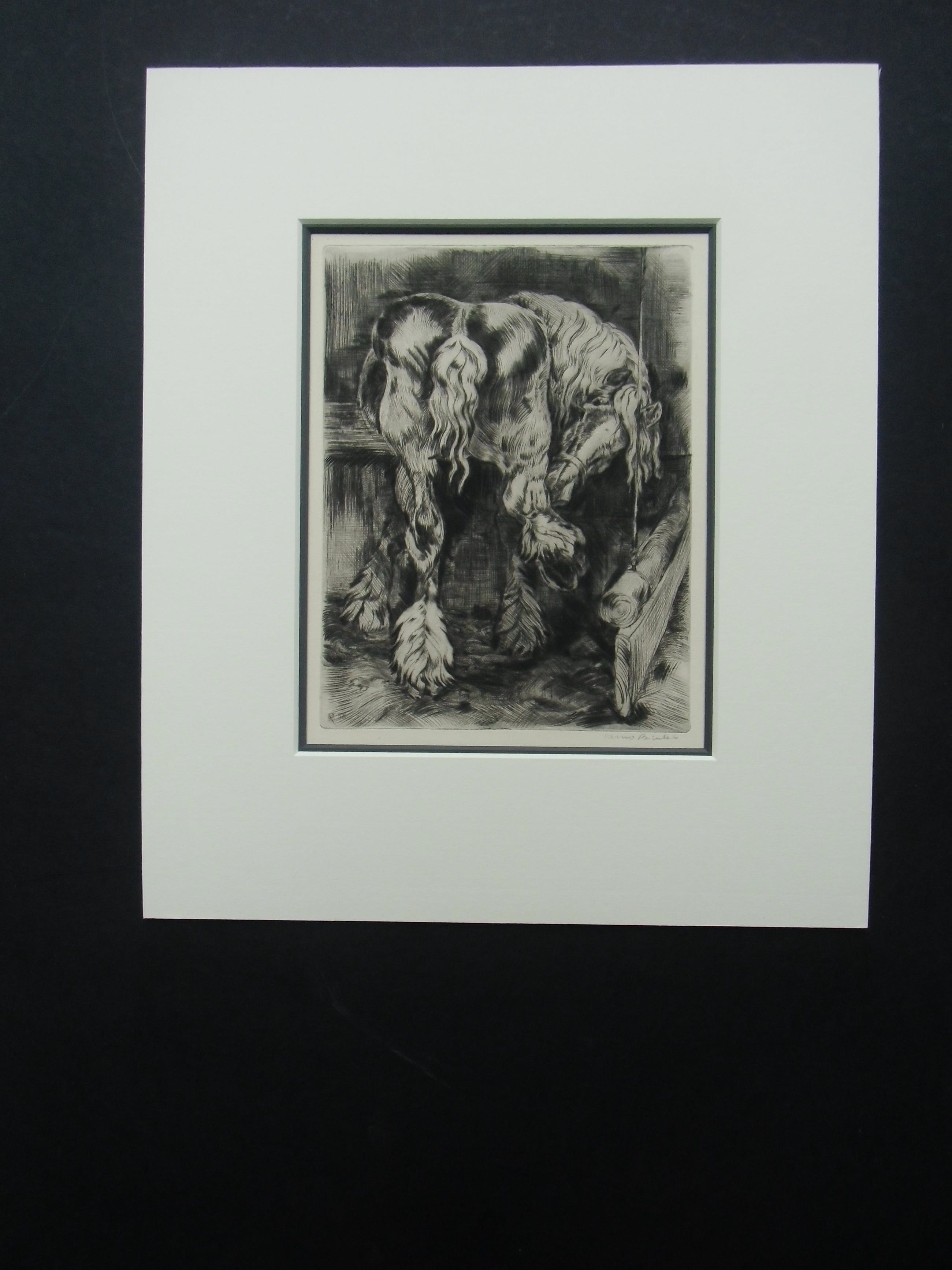 Deze droge naald met als titel "Paard " is nr. 69 in de oeuvre-catalogus van de grafiek van Kuno Brinks van Michel Kersten. Jaar 1935. Opgenomen in passepartout met achtervel. Gesigneerd met potlood. Nieuwstaat.