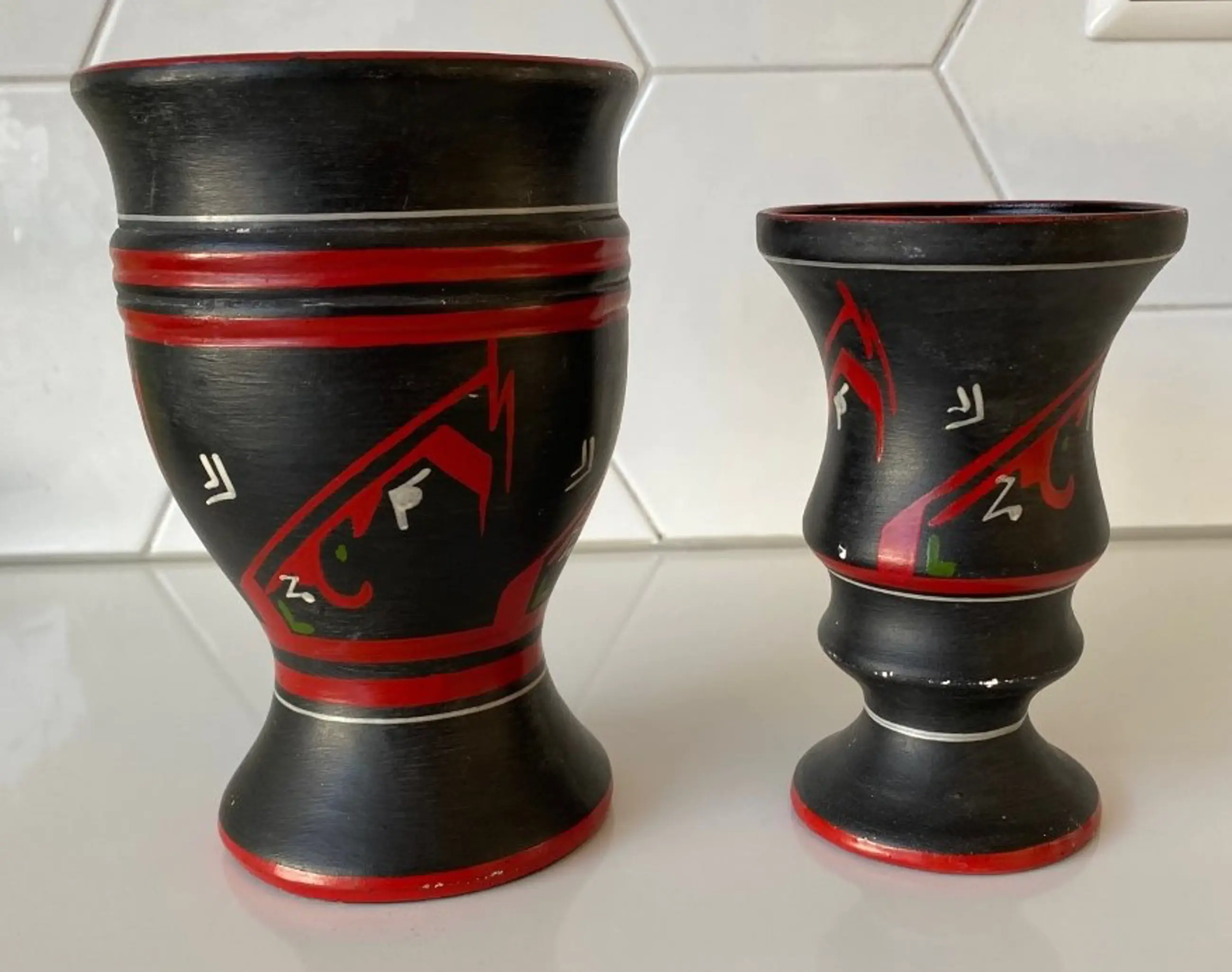 De vazen hebben wat flinters in de lak