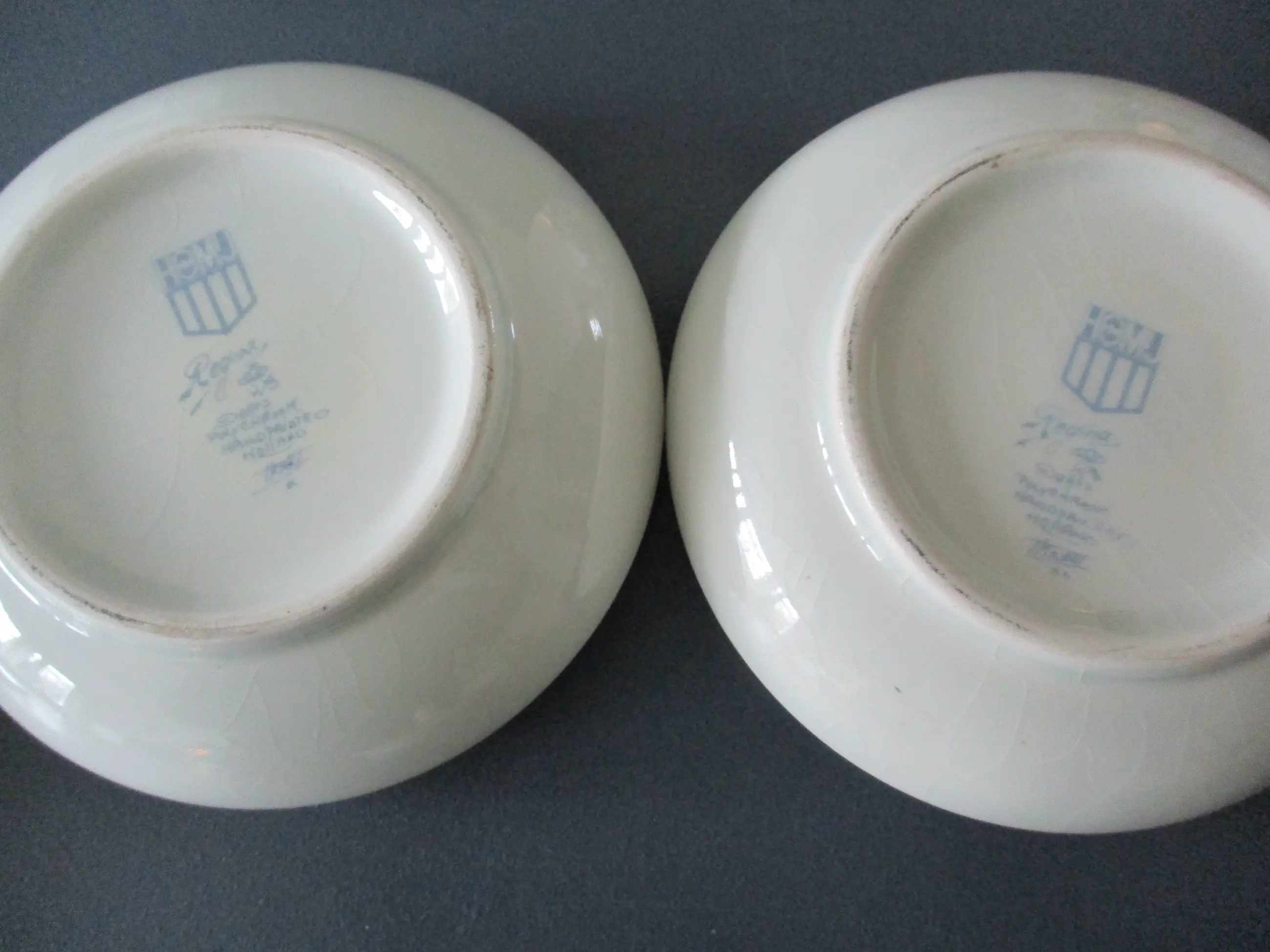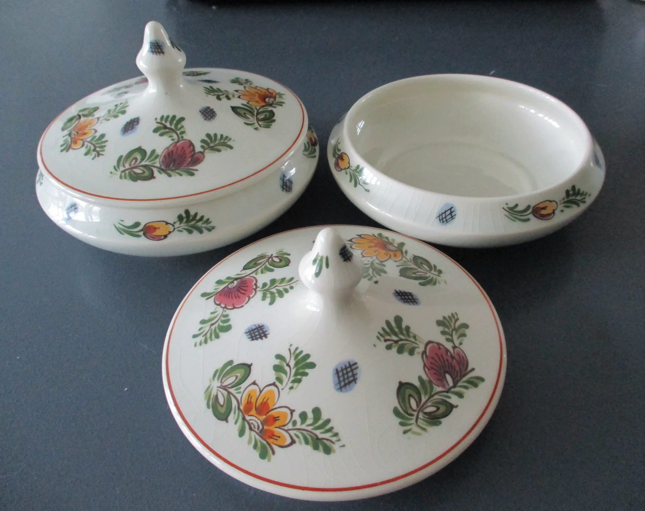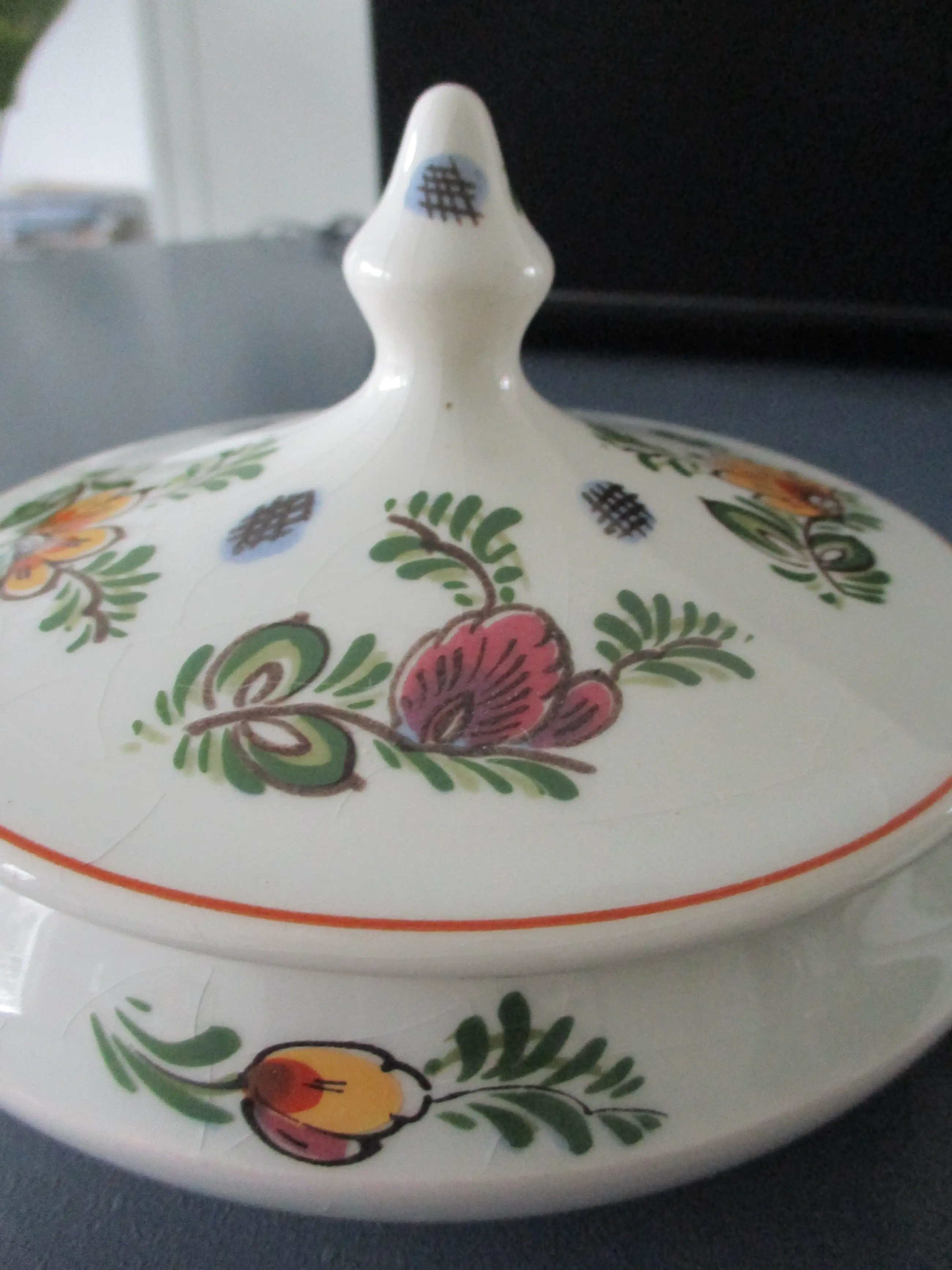 2 stuks antieke bonbonschaaltjes met deksel van Regina Delfts Polychroom. Handpainted Holland. In een heel goede staat.