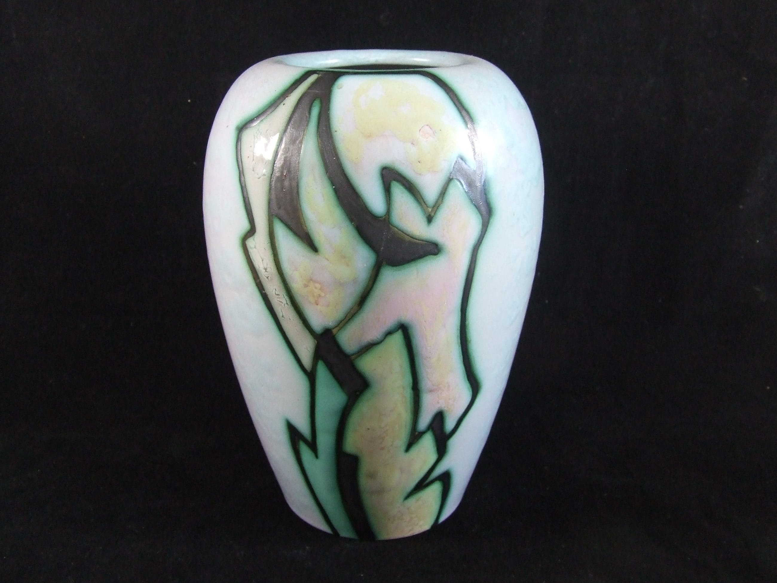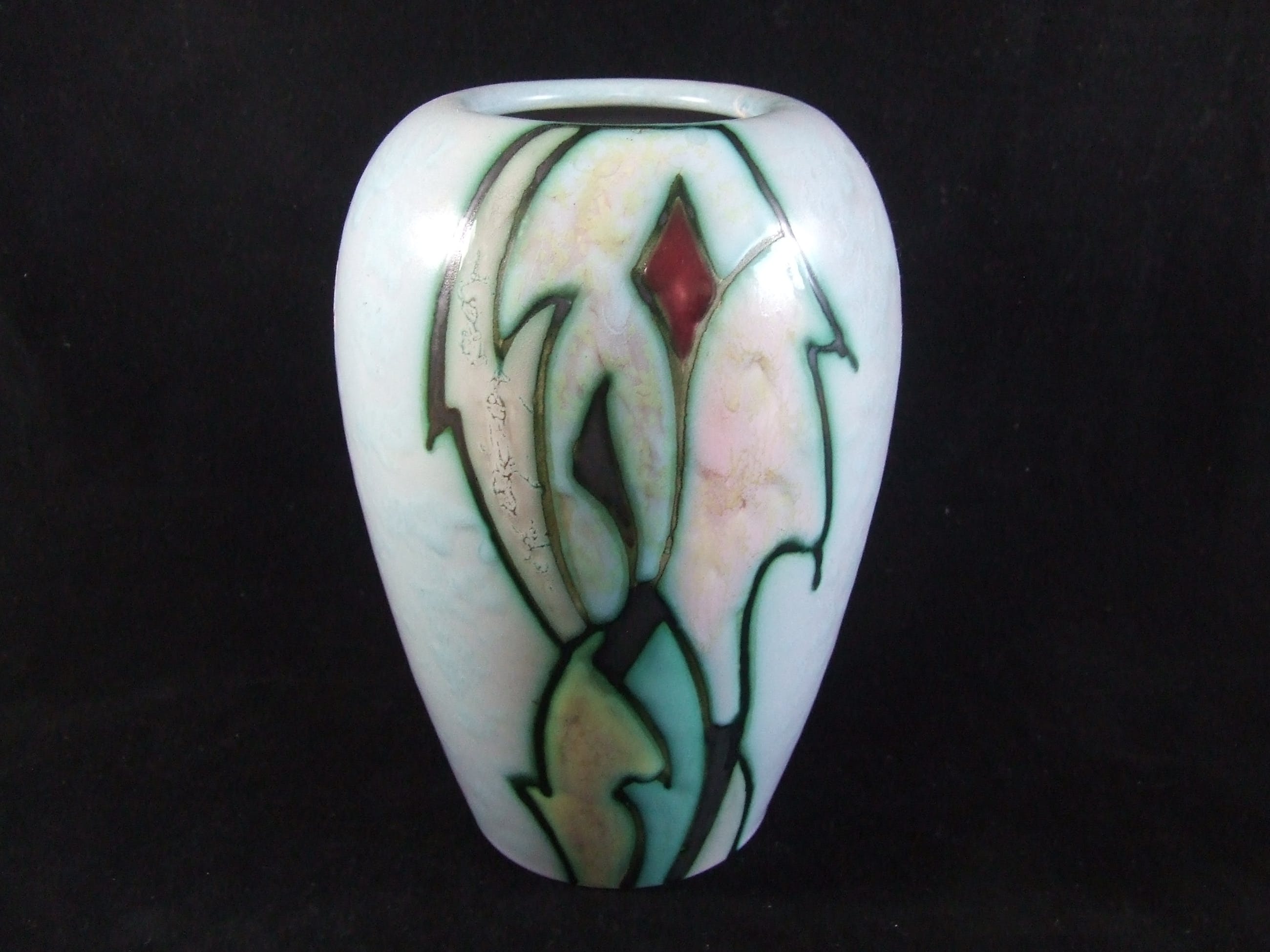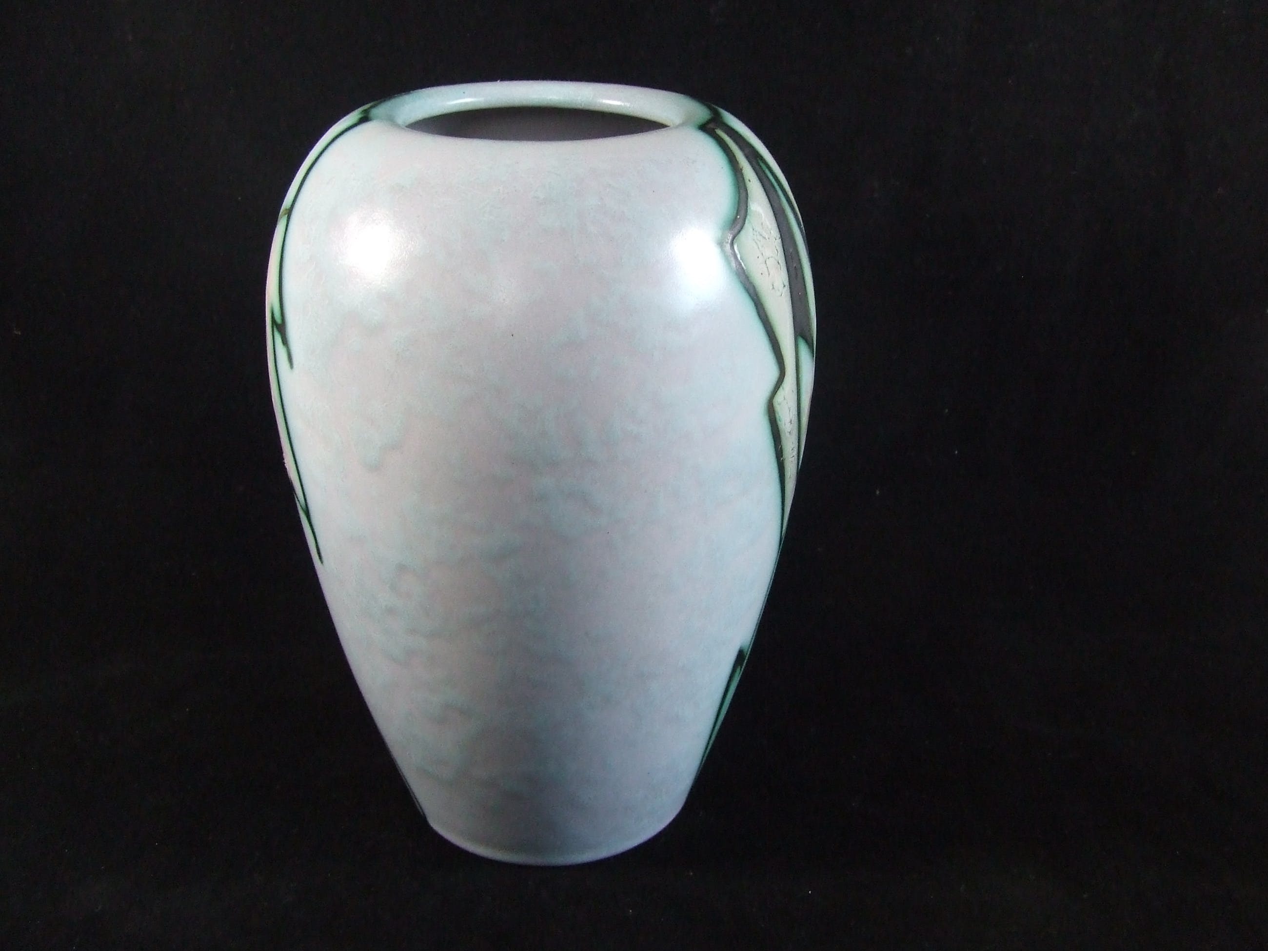 De hoogte van de vaas is ongeveer ca. 22 cm. De vaas heeft kleine chip onderkant, (zie foto`s), verder is de vaas in hele goede staat. Gemerkt fabrieksmerk onderzijde en met 2 originele stickers