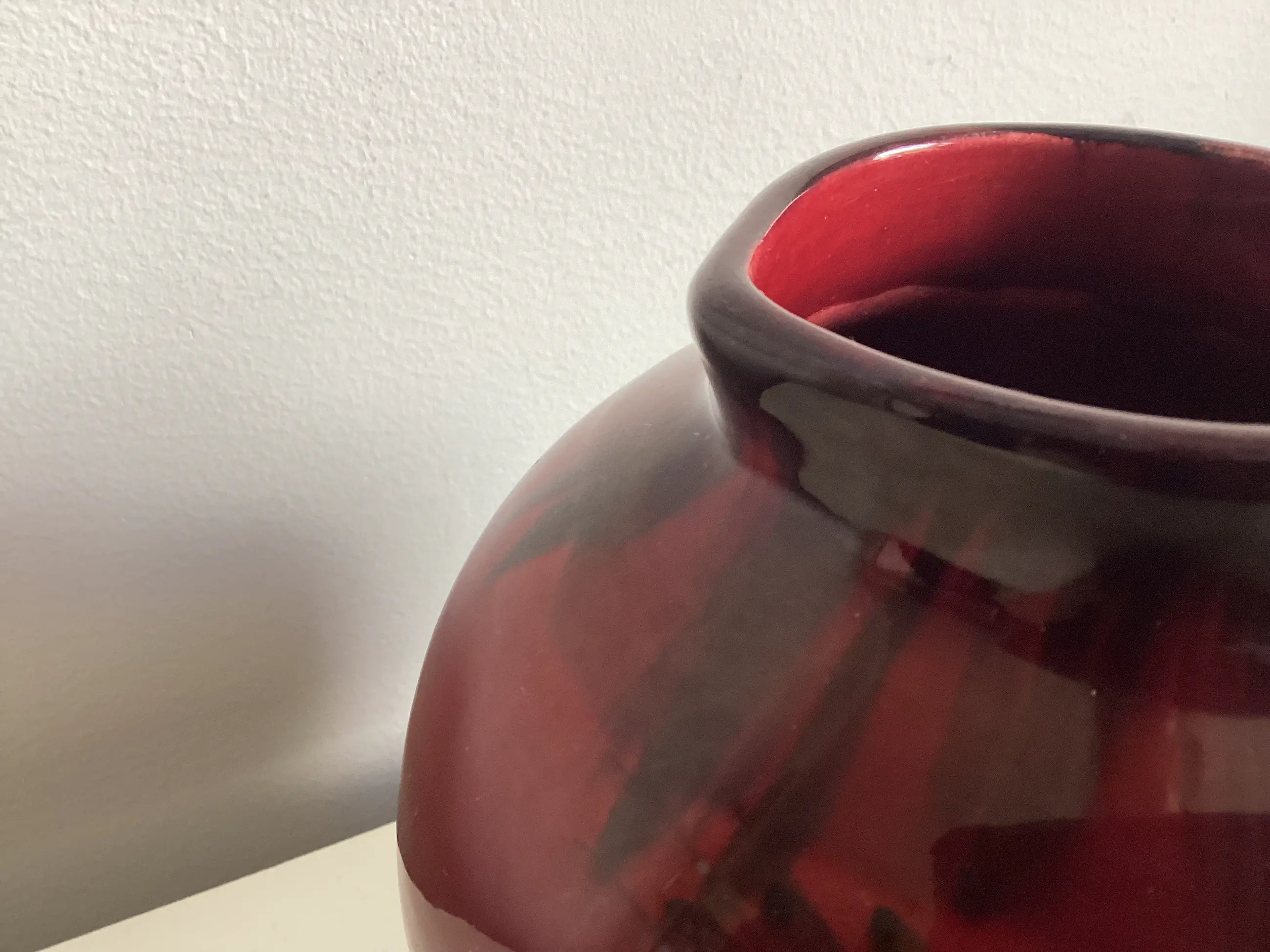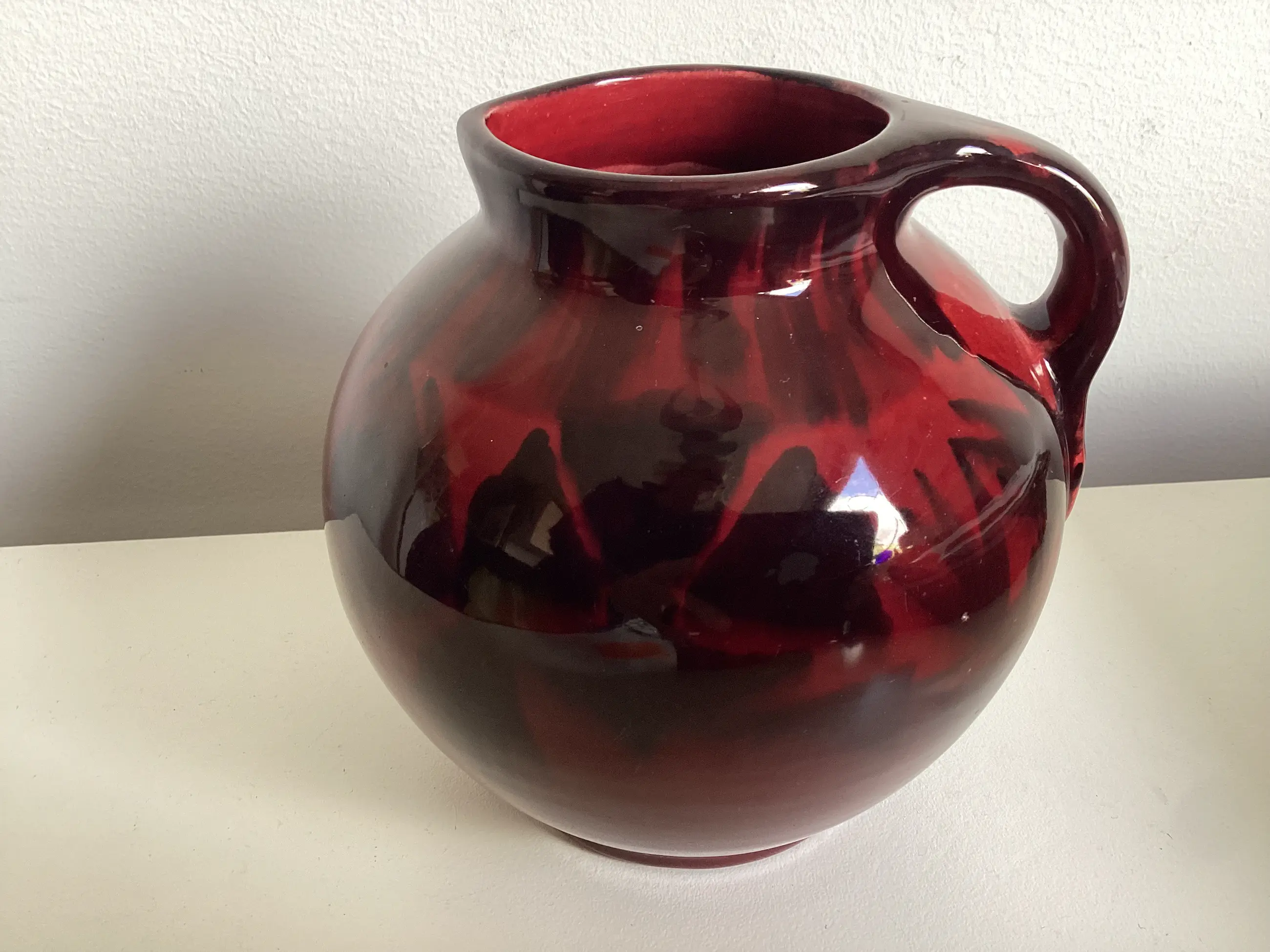 Art Deco keramiek sierkan van Maarssen (voorheen St.Lucas). Ossenrood glazuur met floraal decor. Hoogte 14,5 cm. Onderop voorzien van kenmerken en tekens. Mogelijk ontwerp van Willem Stuurman. Ca. 1927. Kent wat gebruikssporen.