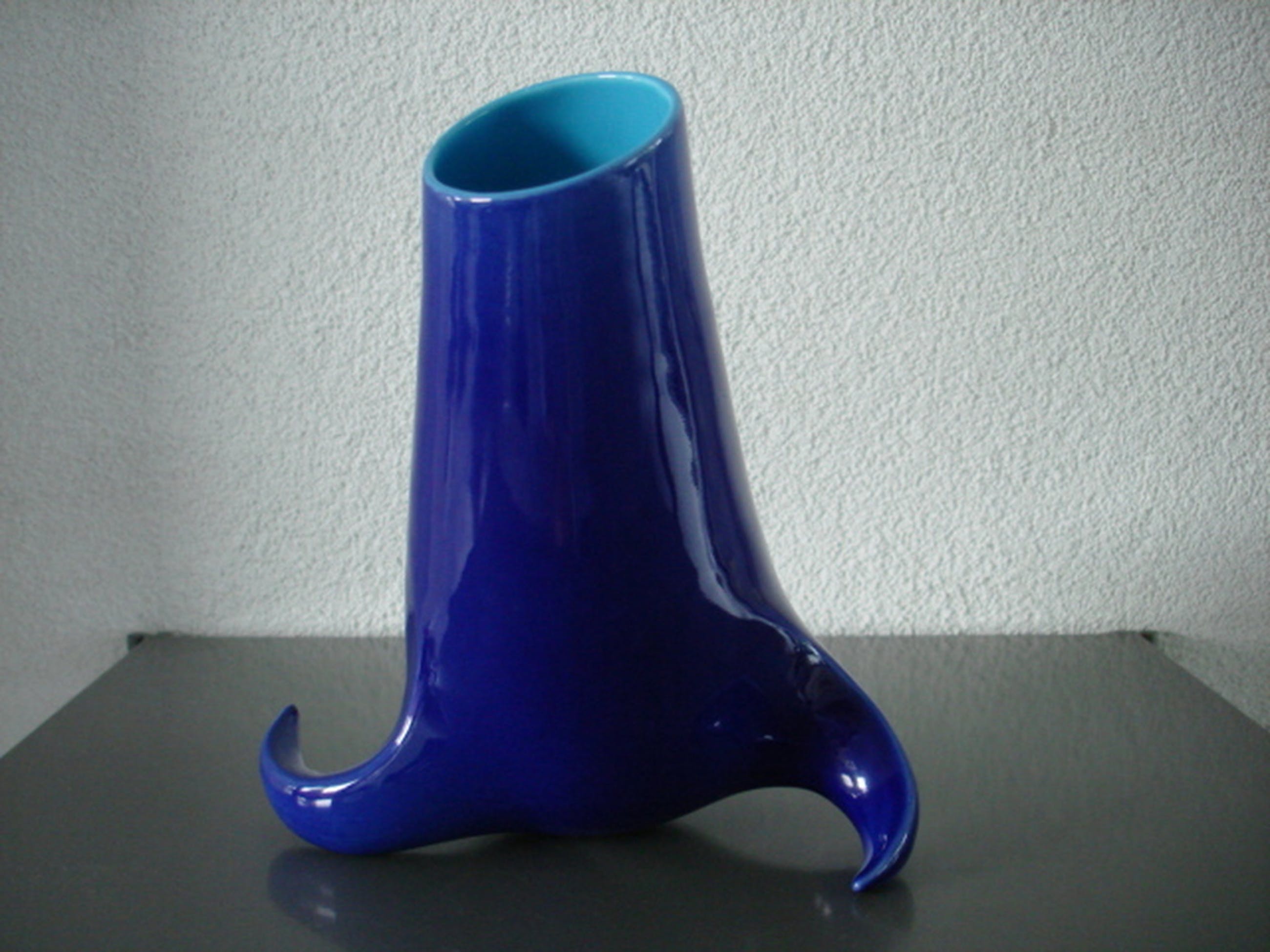 De buitenzijde is kobalt blauw, de binnenzijde azuurblauw.