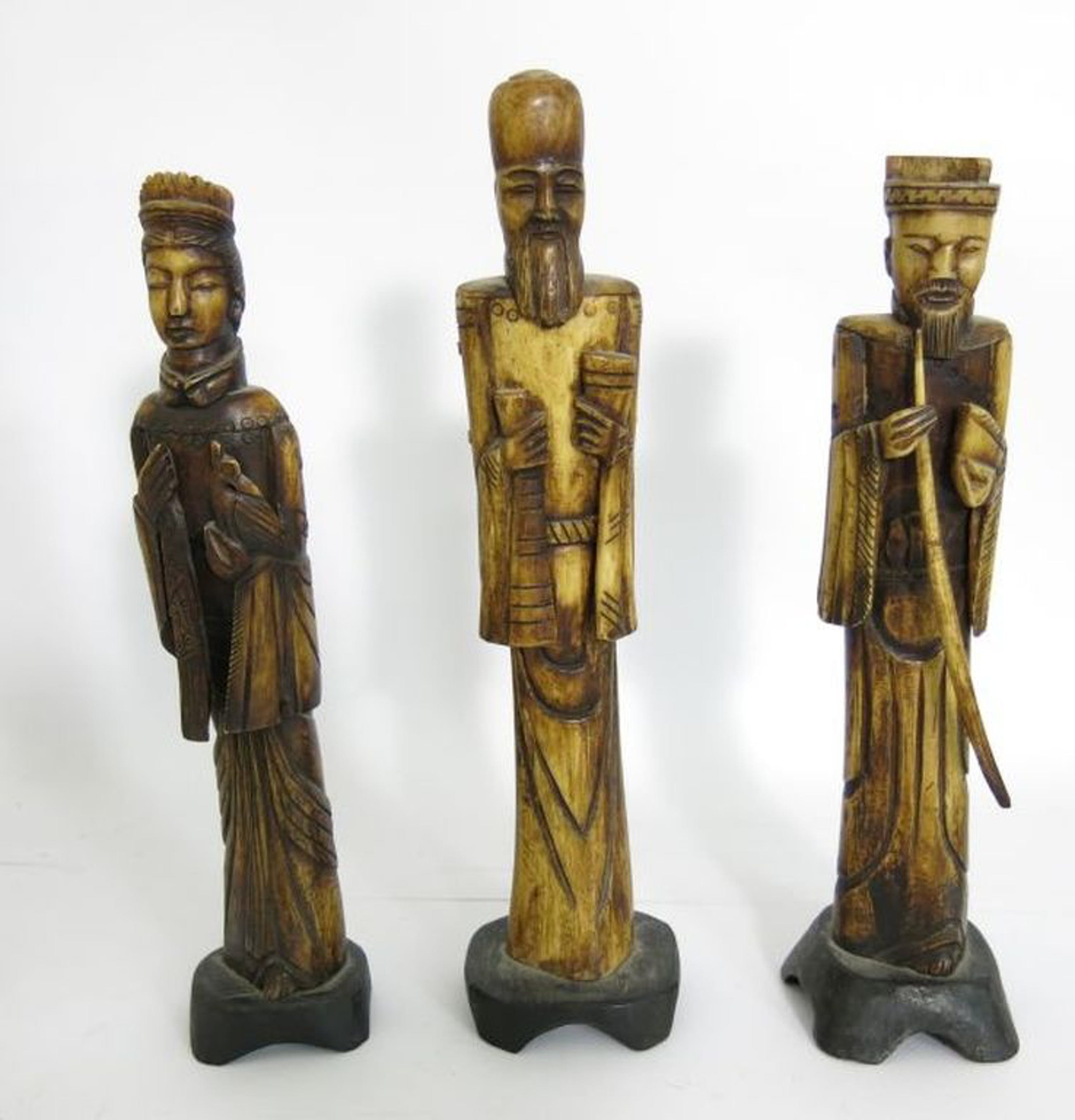 Drie authentiek gesneden beelden (volgens ons geen ivoor).