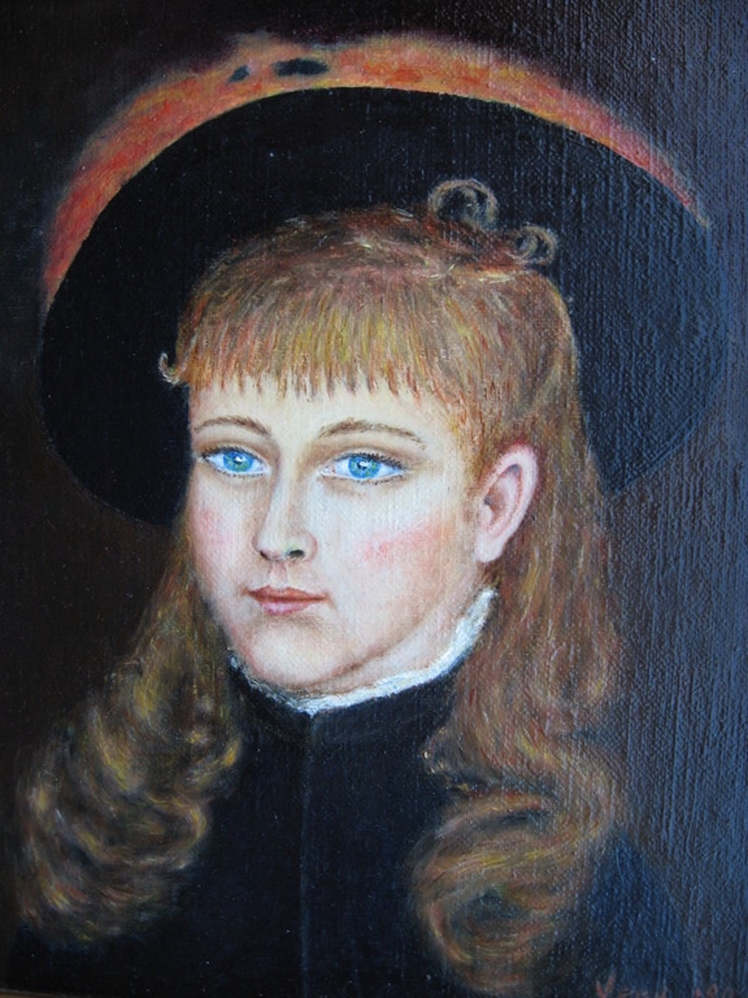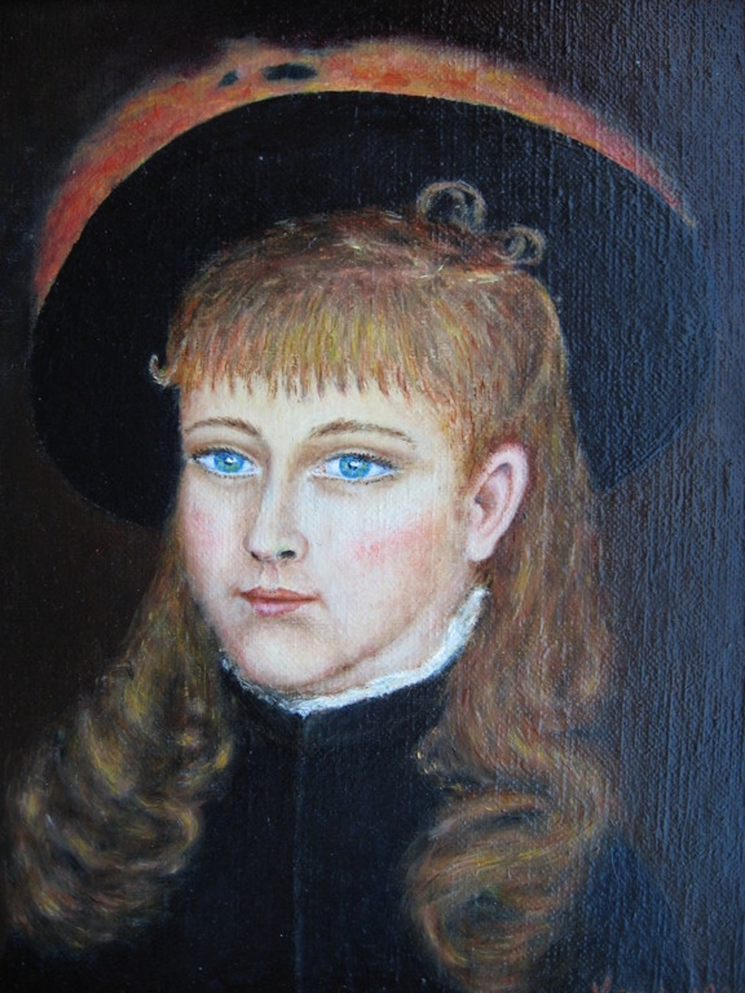 Leuk schilderijtje van een meisje met hoed uit 1980. Gesigneerd met Vend. '80?