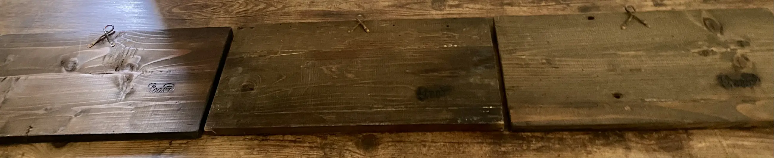 Het middelste paneel is jammer genoeg beschadigd door de nageltjes aan de achterzijde van het vorige paneel, door op elkaar in een verhuisdoos te zijn getransporteerd, zonder beschermingsmateriaal ertussen.