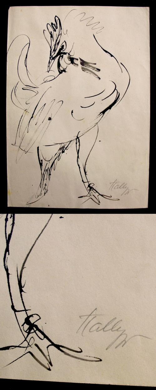Kurt Hallegger - Hahn. signierte Rohrfederzeichnung.