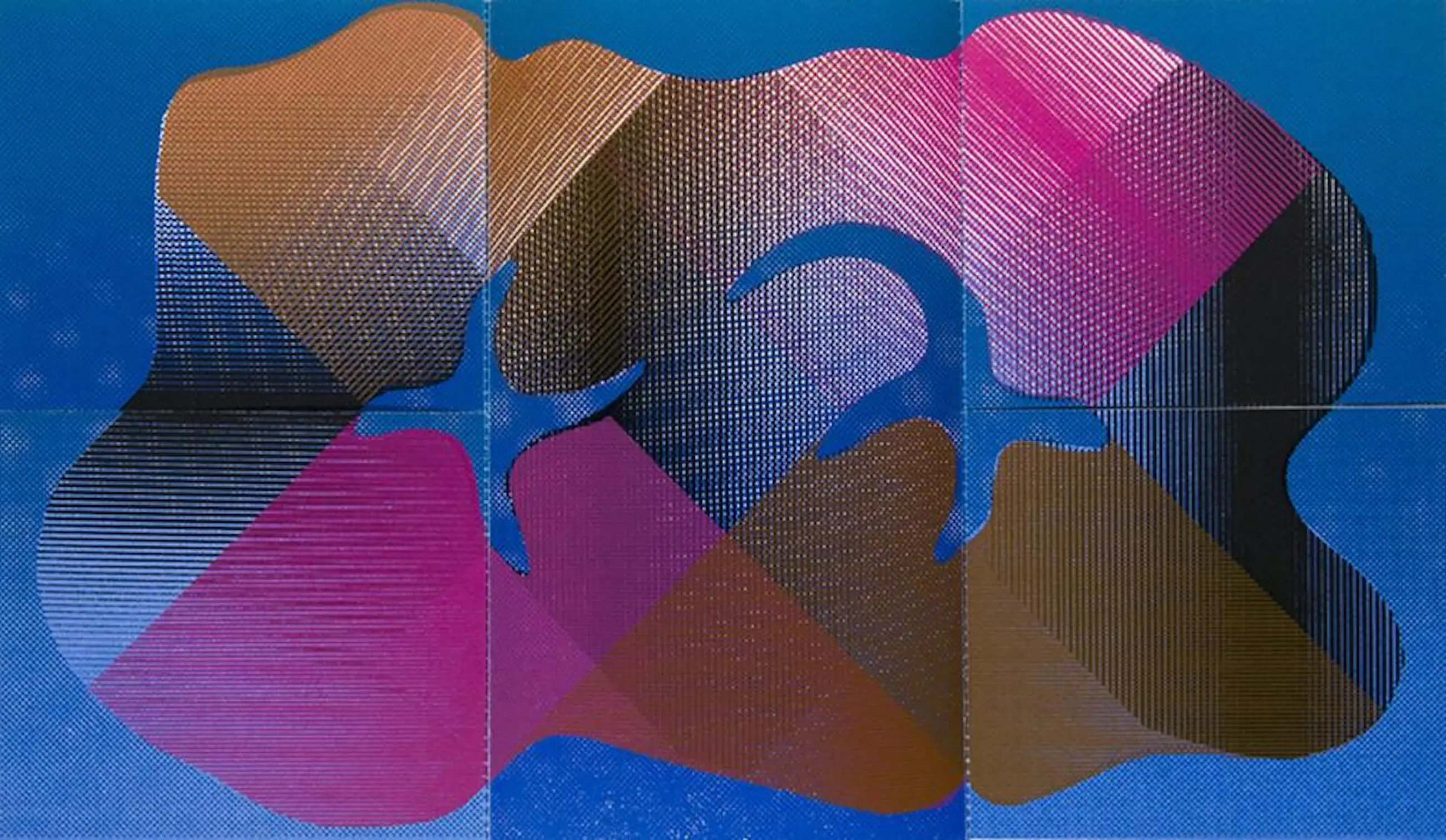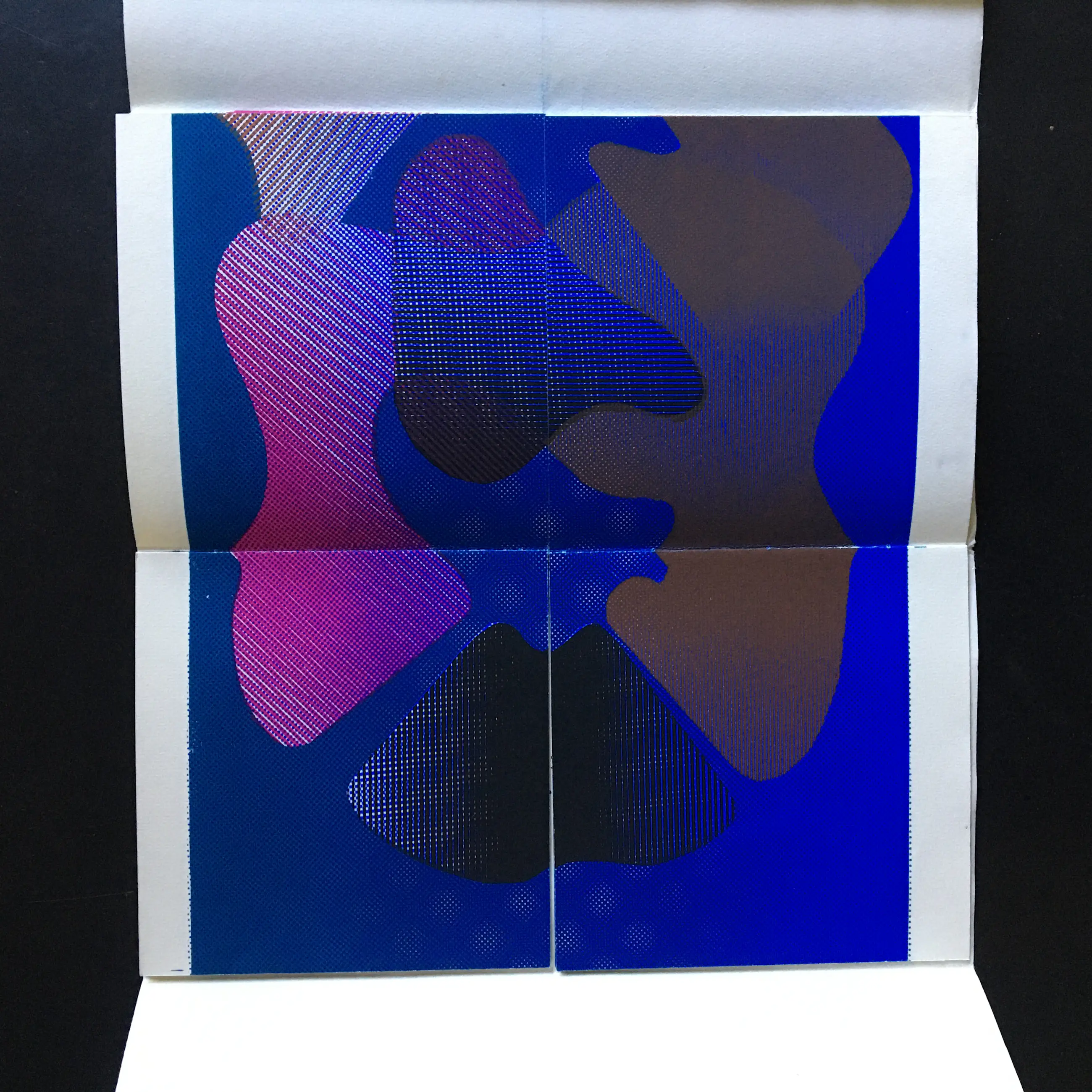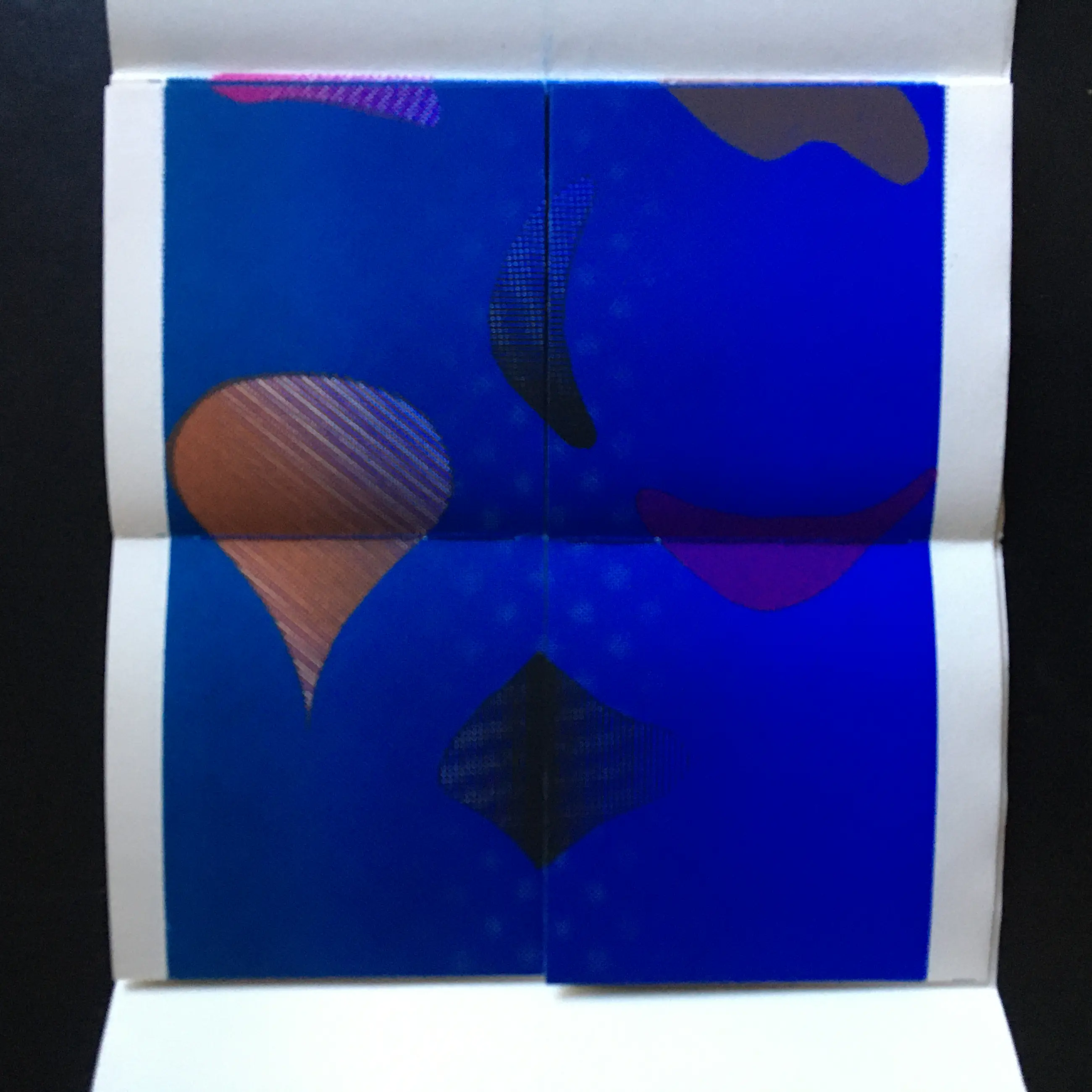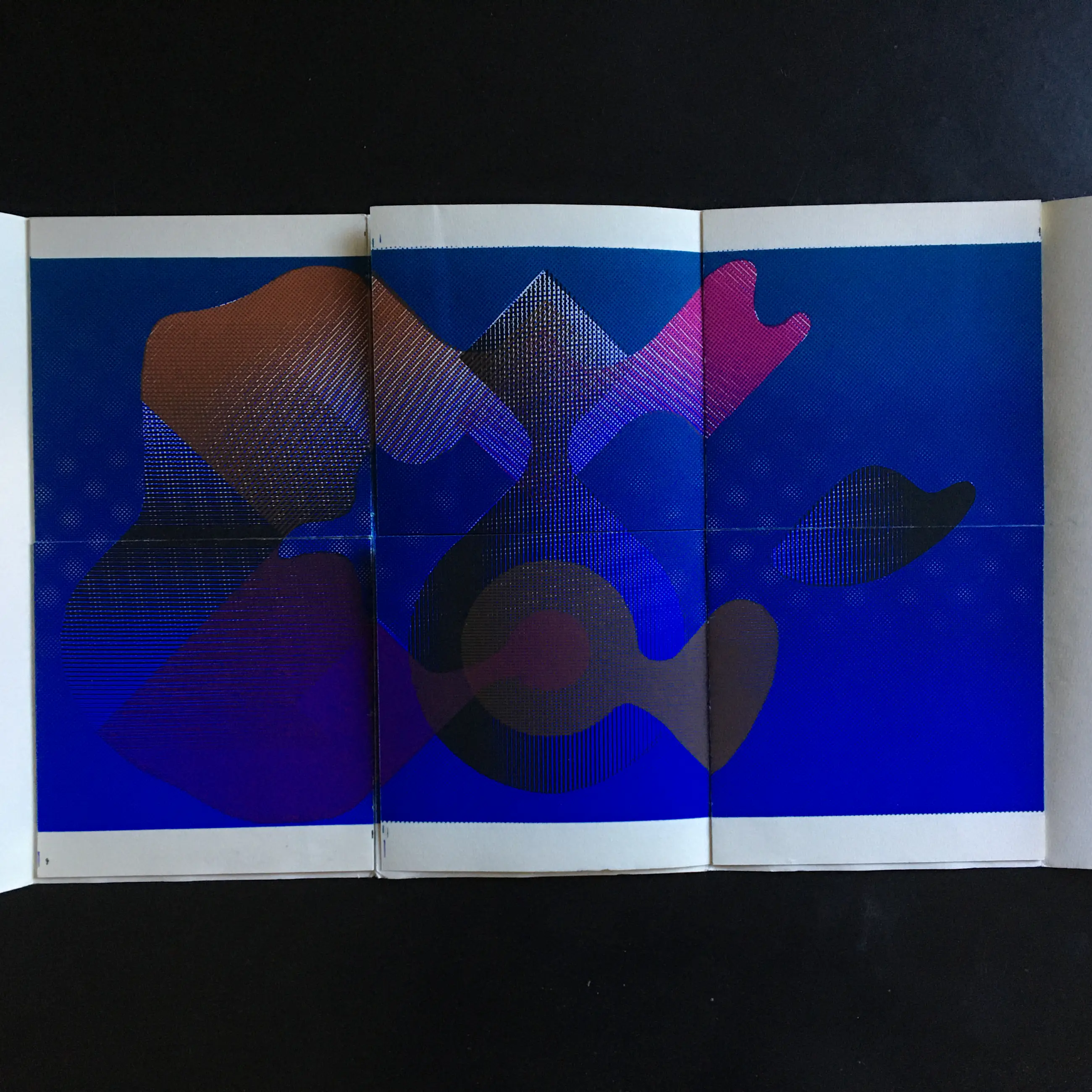 Gekleurde zeefdrukken als variatiedrukken op velijnpapier. oO, 1966.