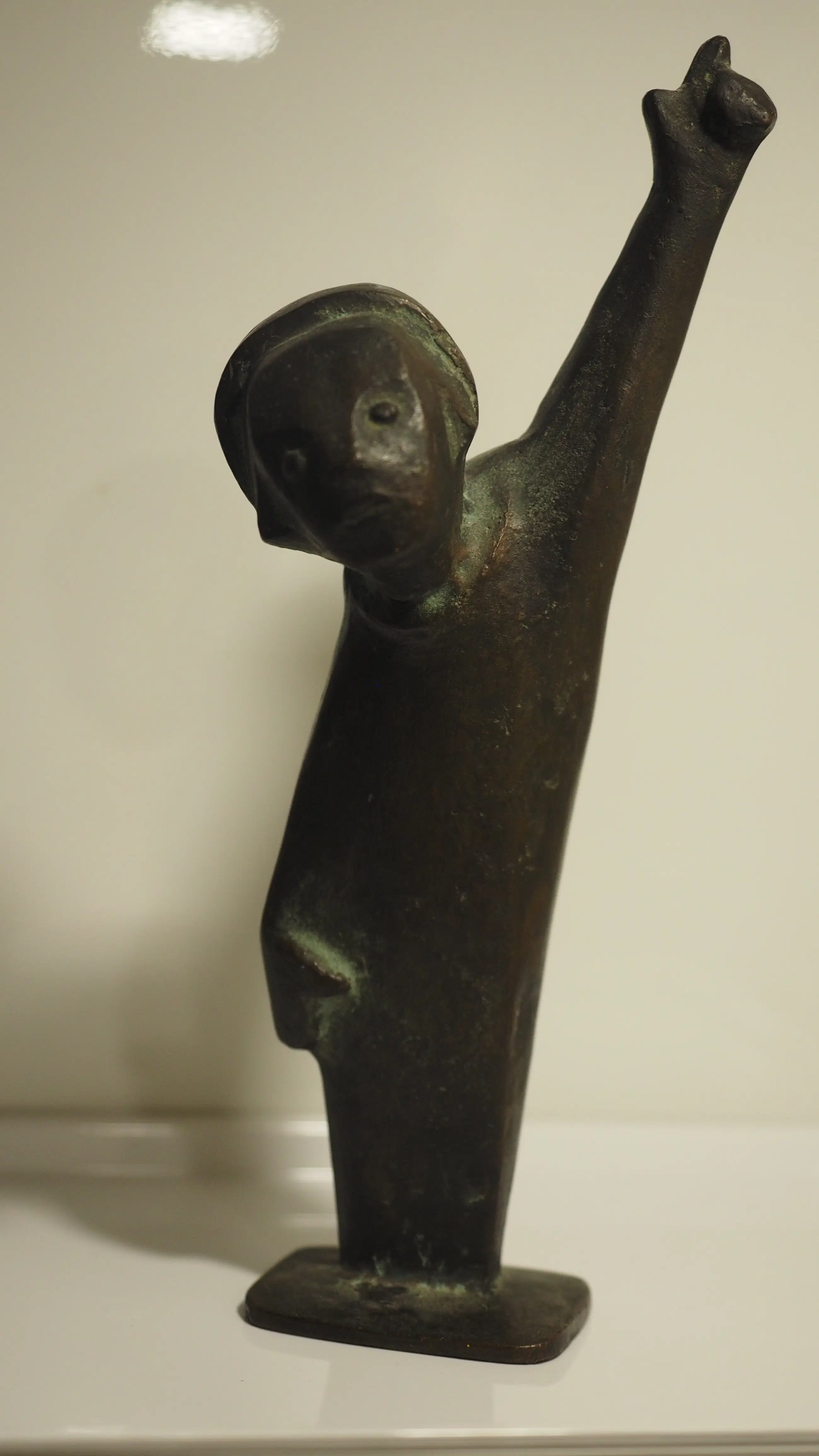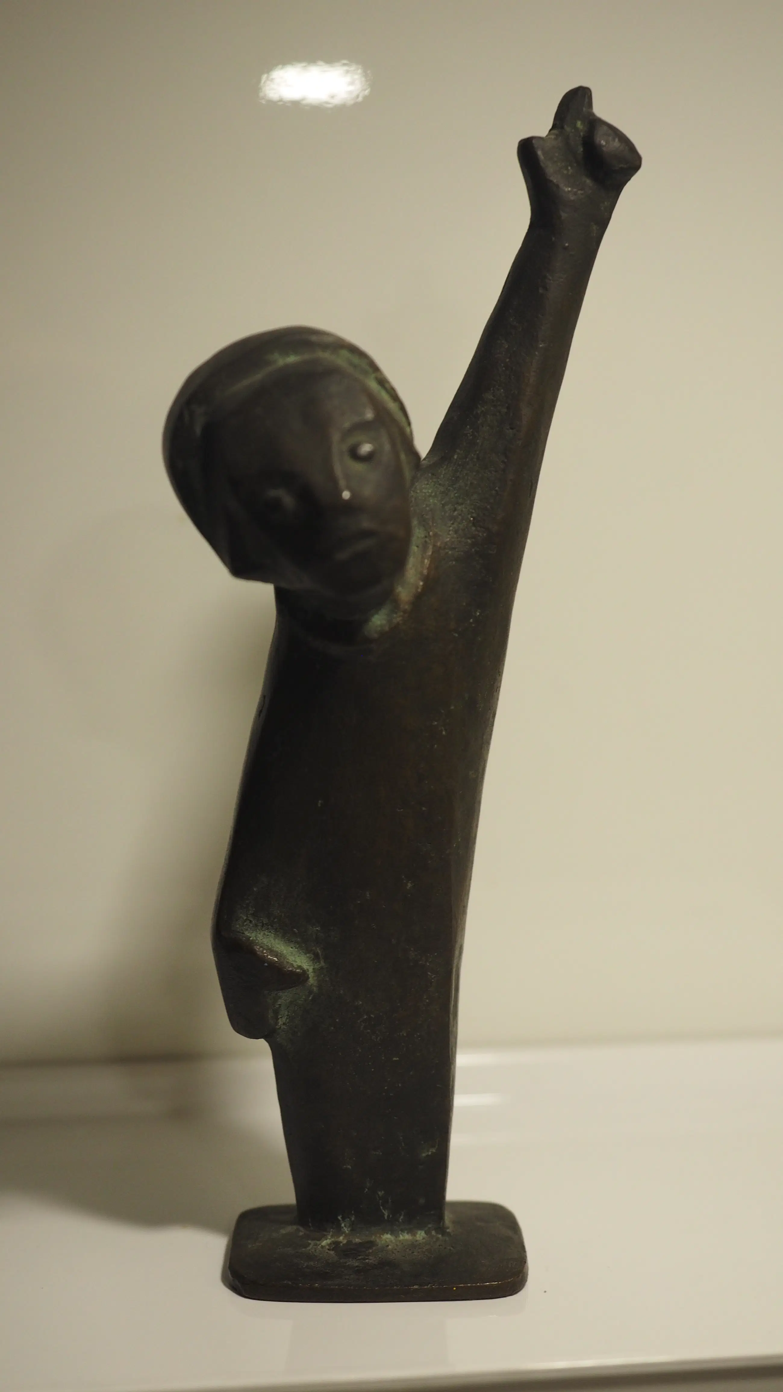Kleine jongen met opgeheven arm (gestileerde afbeelding van een wijzende schooljongen)