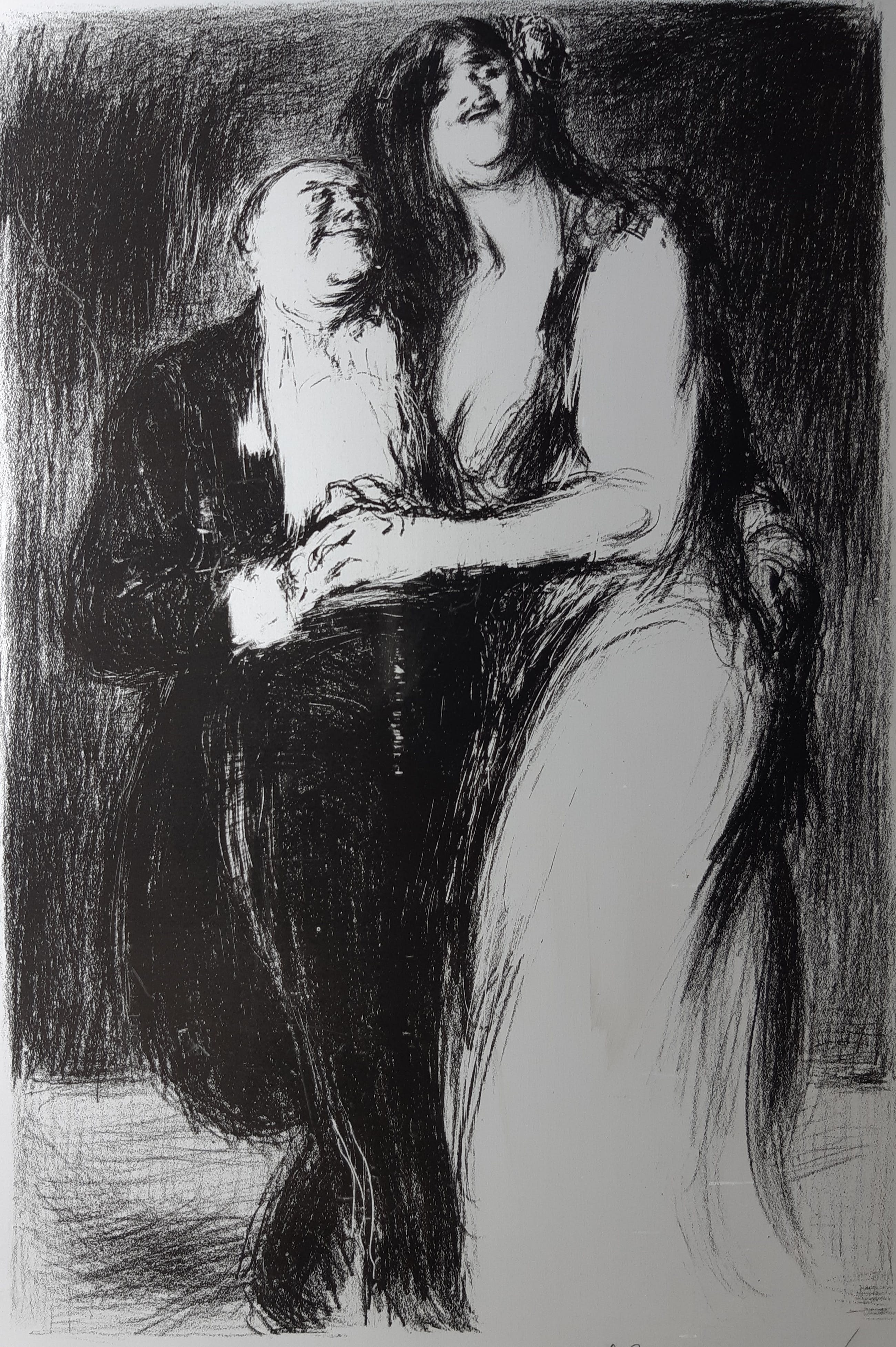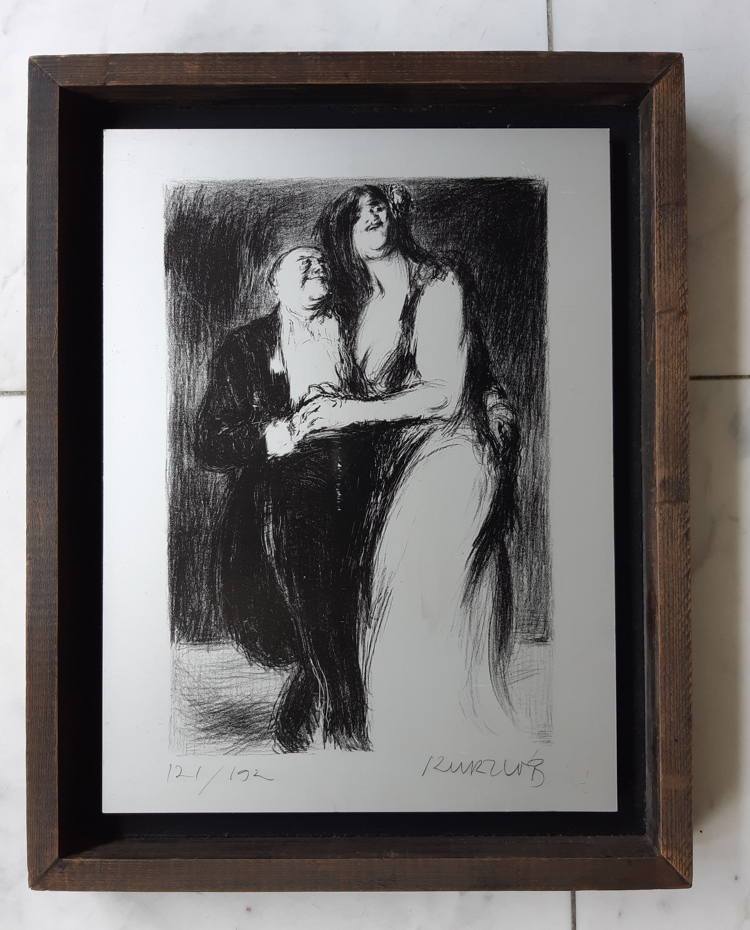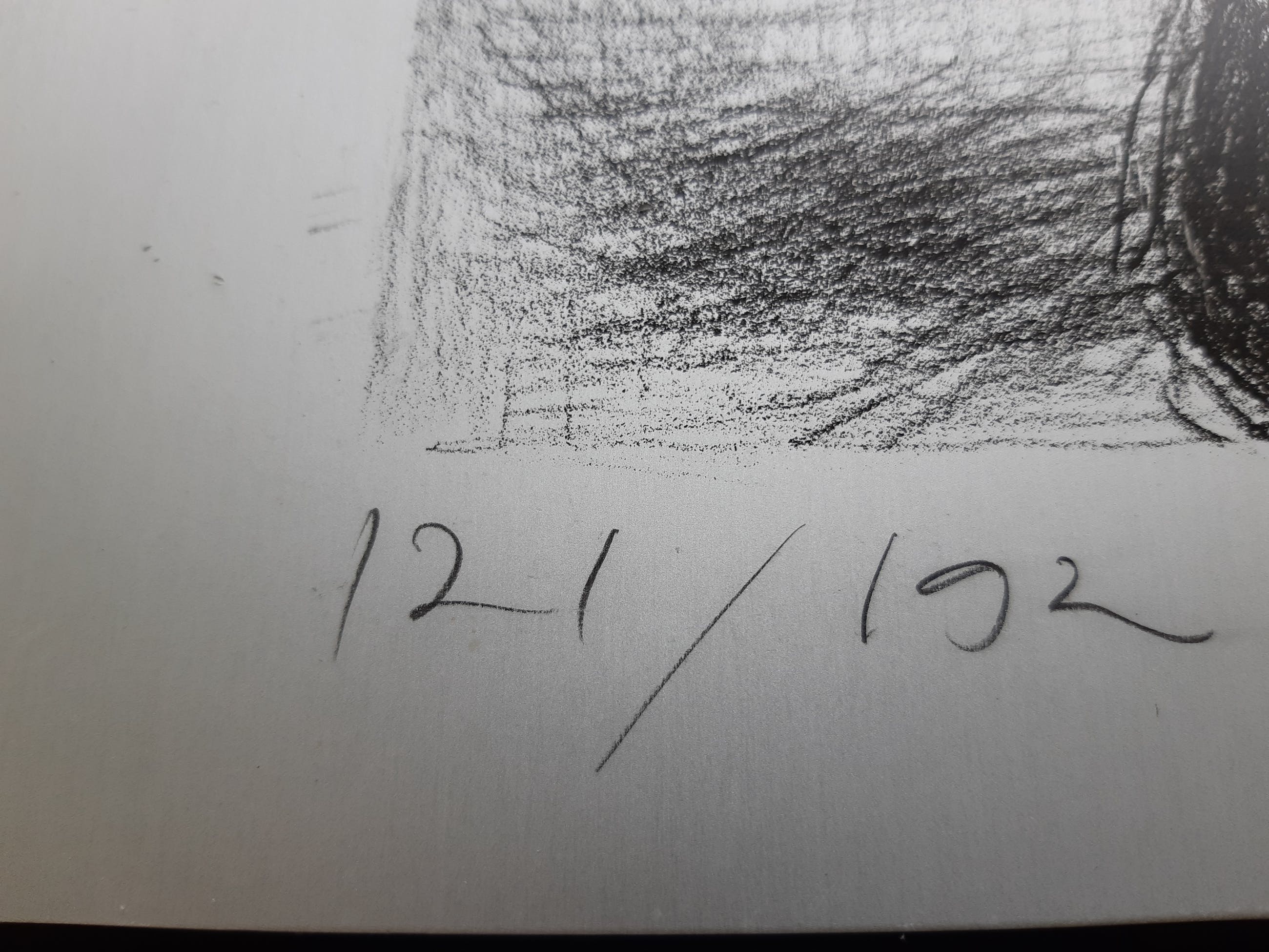 Bijzondere litho van Kurt Löb, afgedrukt op een aluminium plaat. Het werk vermeldt geen titel, is gesigneerd en genummerd 121 / 192. Ingelijst in houten baklijst zonder glas.