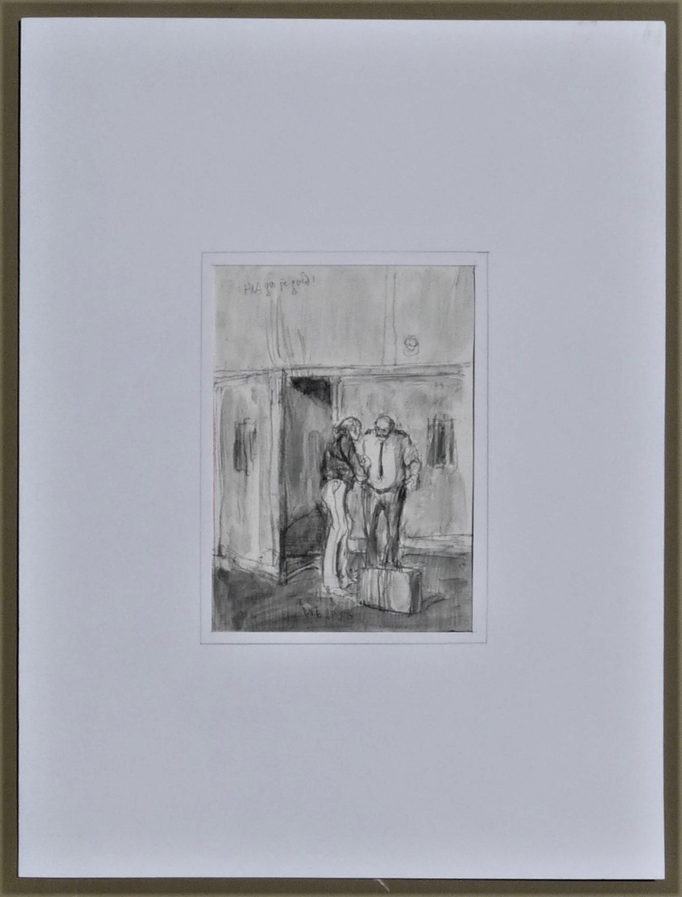 *Fraaie originele tekening met potlood en gewassen oost-indische inkt van Kurt Lob. Het betreft hier dus geen grafiek maar een tekening welke meestal gebruikt werden als illustraties voor boeken van bekende (russische) schrijvers. In dit geval is het me niet bekend waarvoor deze tekening is gebruikt. *Löb was een uitstekend schilder, aquarellist, maar vooral illustrator met een duidelijk herkenbaar handschrift. *Verzending is aangetekend, verzekerd en goed verpakt.