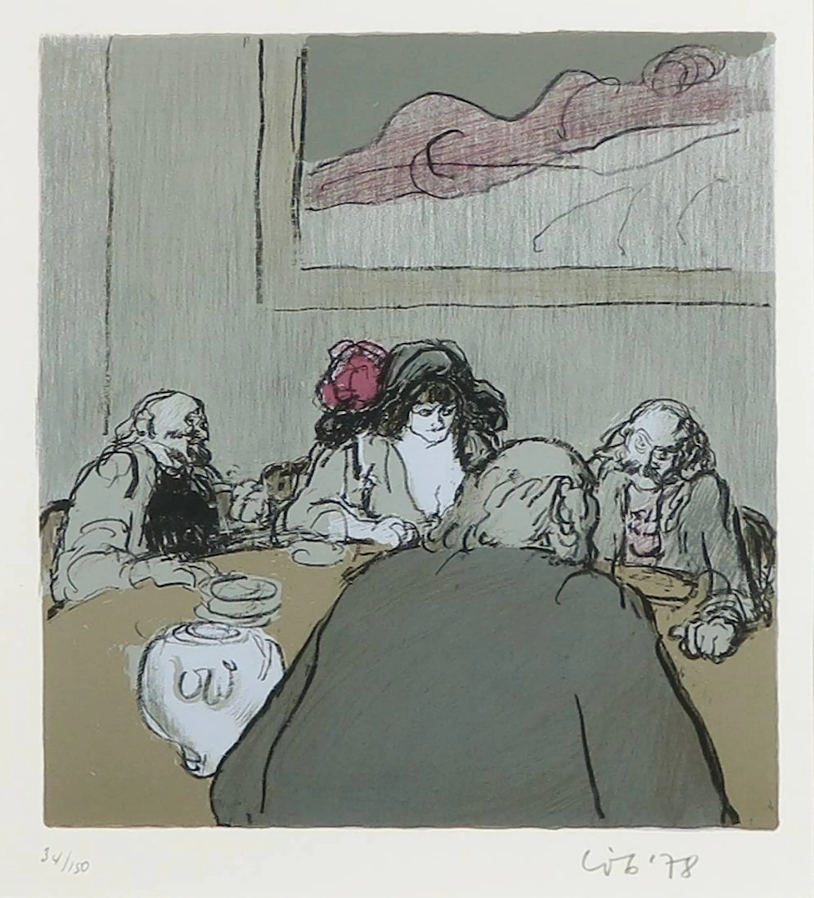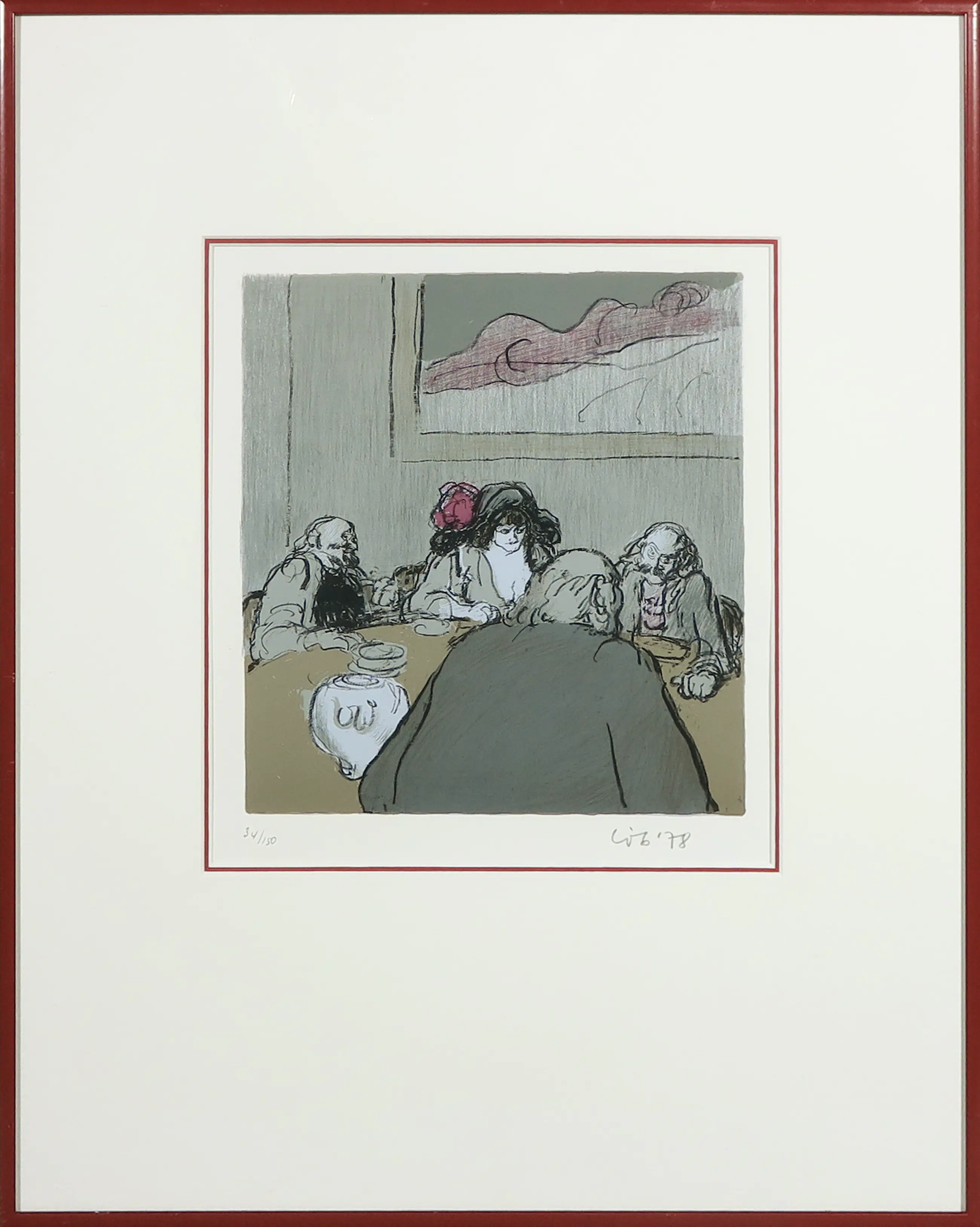 Kurt Lob - Litho, Aan tafel - Ingelijst - Verkocht