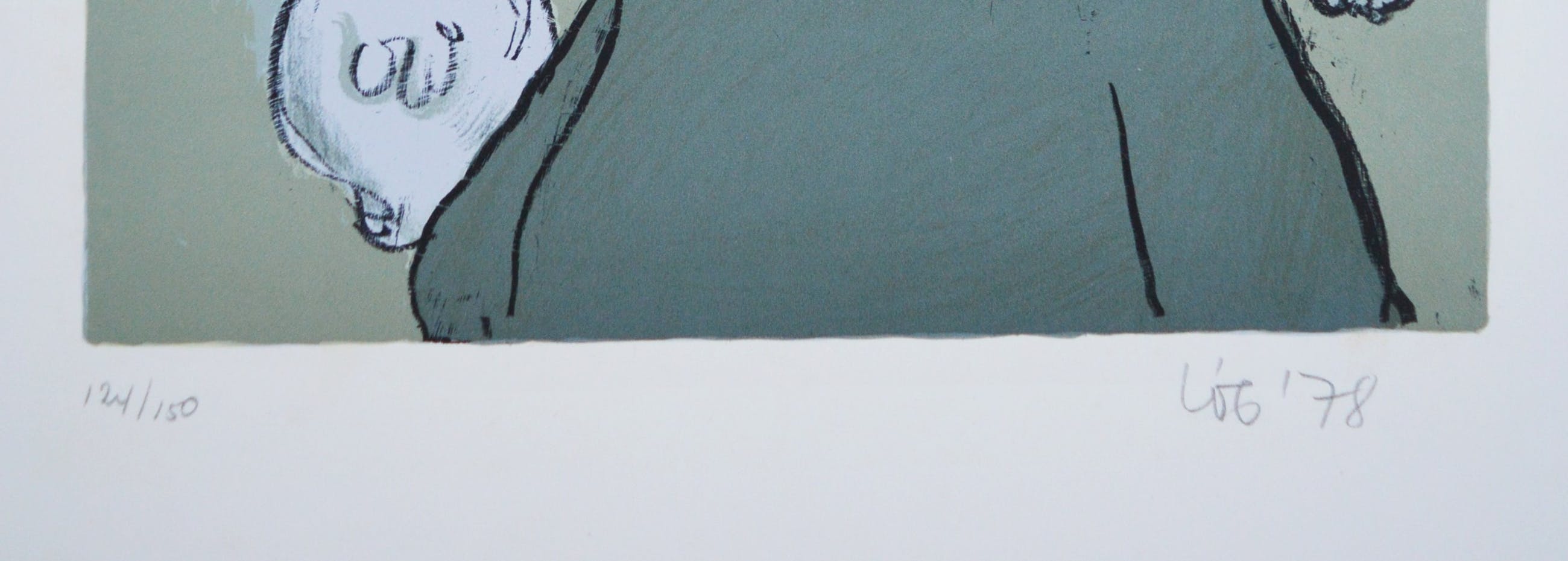 Deze zeefdruk is rechtsonder gesigneerd met potlood en heeft oplage nummer 124/150. Papiermaat is 50 x 35 cm en beeldmaat 22 x 21 cm.