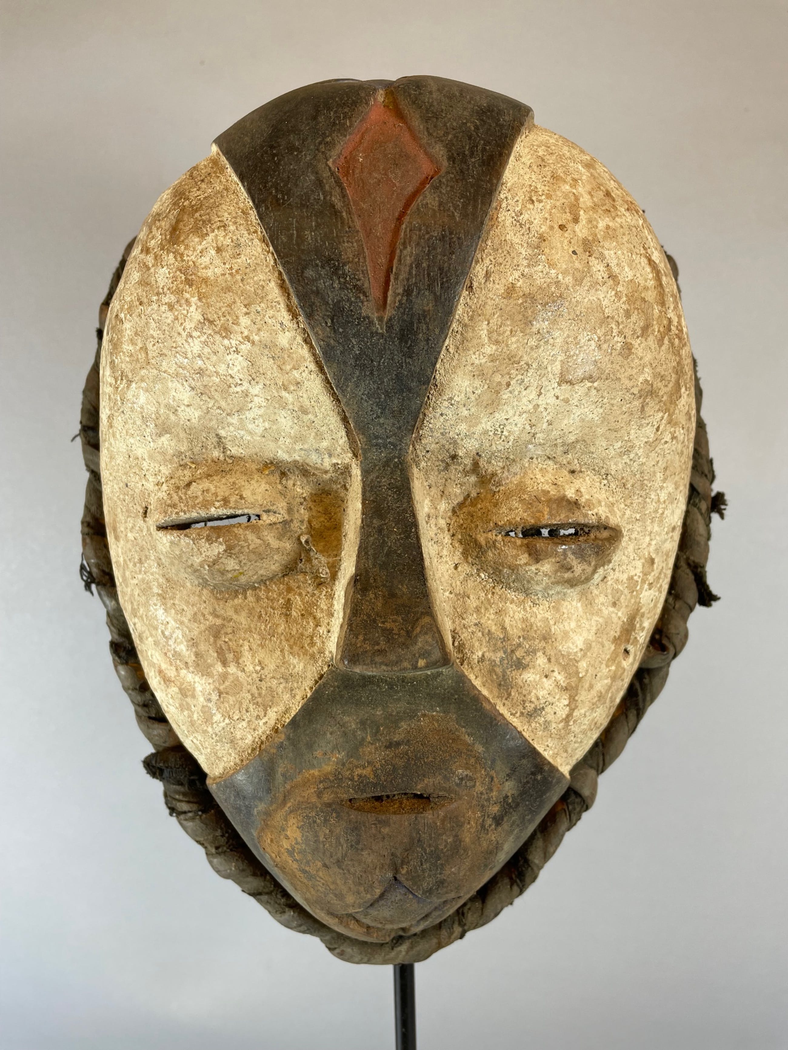 The Kwele people are a tribal group of eastern Gabon, Republic of the Congo, and Cameroons in Central Africa. They fled the coastal area of West Africa during the 19th century, after their traditional enemies acquired firearms from the slave traders. This altercation is often called the "Poupou" war. The Kwele then settled into lands between the Dja and Ivindo rivers. The Kwele are noted for their ceremonial masks which are collected as art objects.