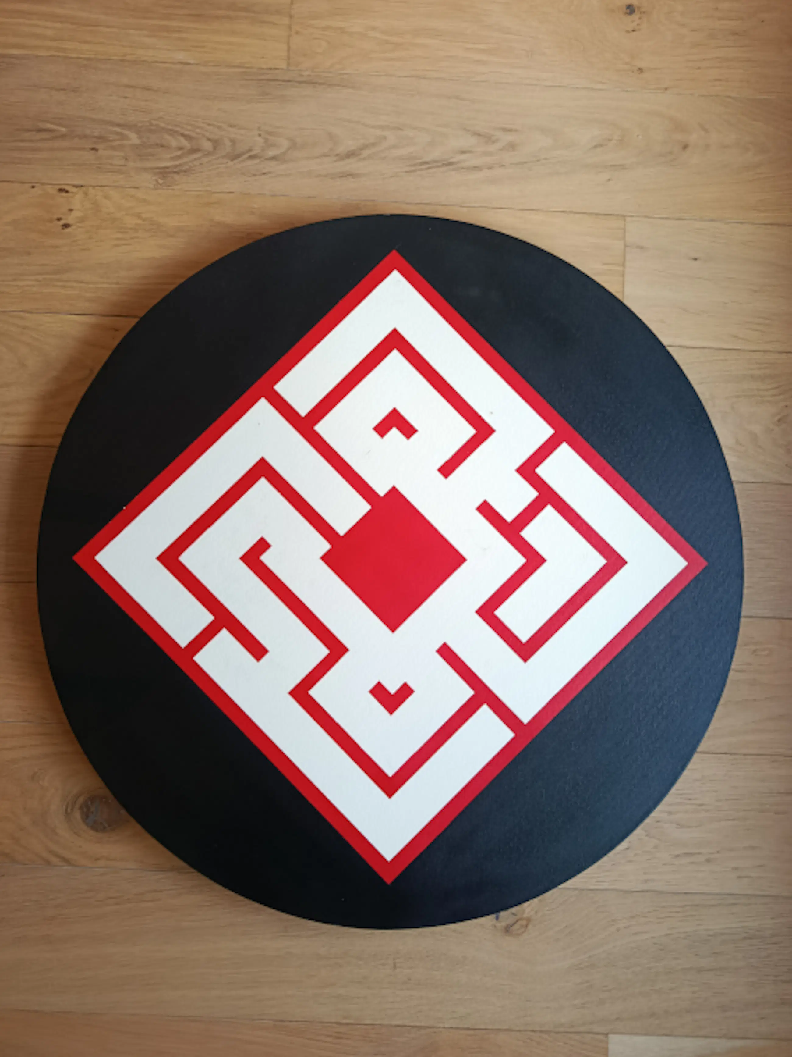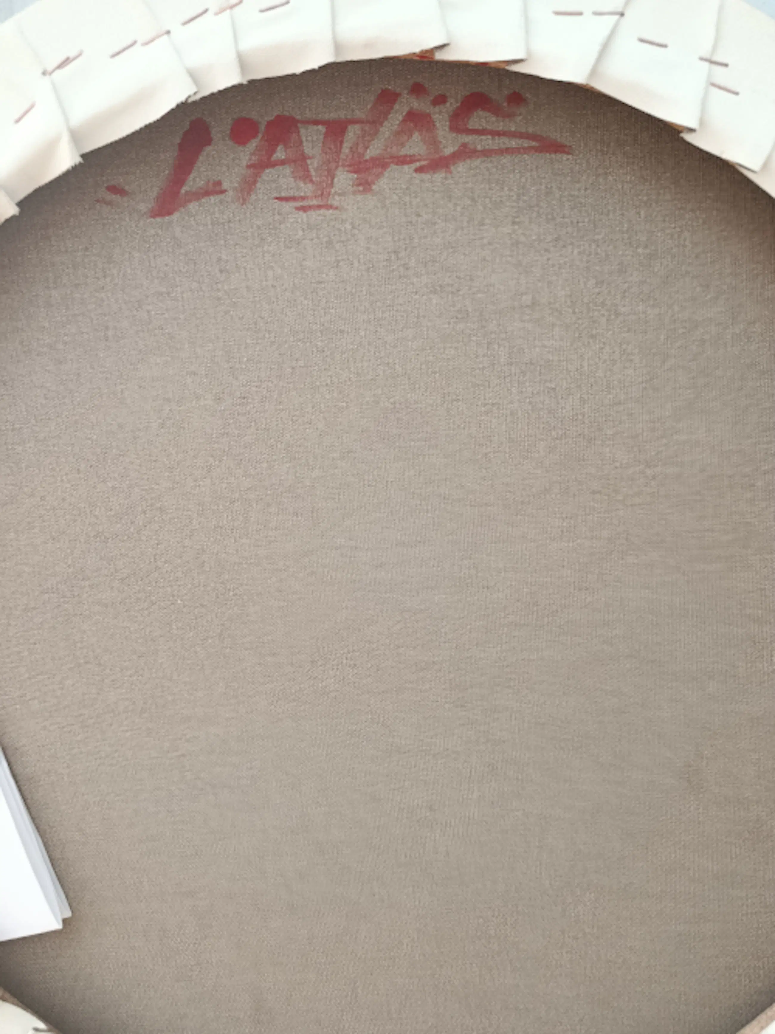 Tondo. Werk uit de groepstentoonstelling ter gelegenheid van de boekpresentatie van Rouge door de vereniging C215 (Christian Guémy) in 2007, Parijs, Frankrijk. Een boekje over de ATLAS en de originele factuur zijn bijgevoegd.