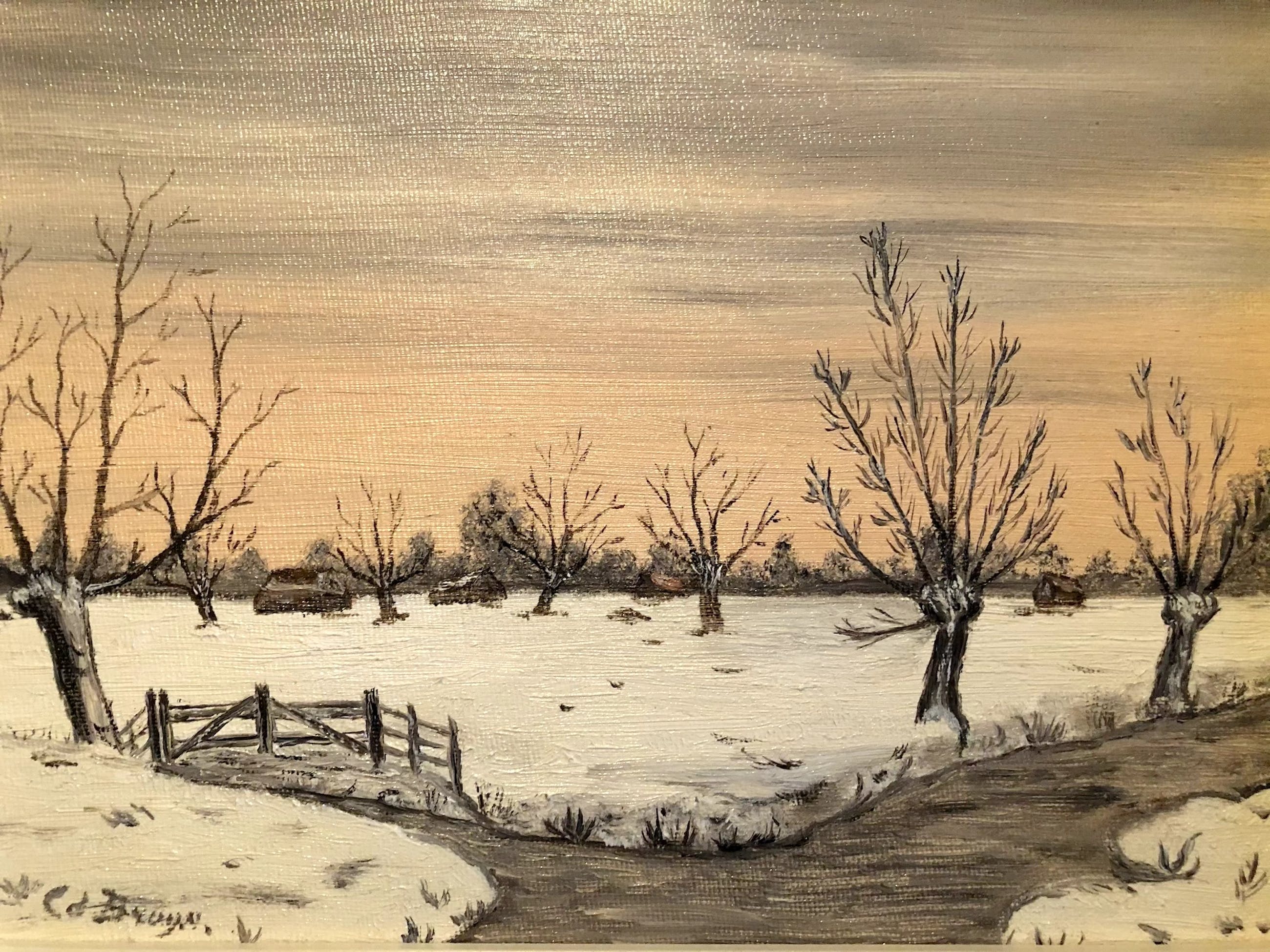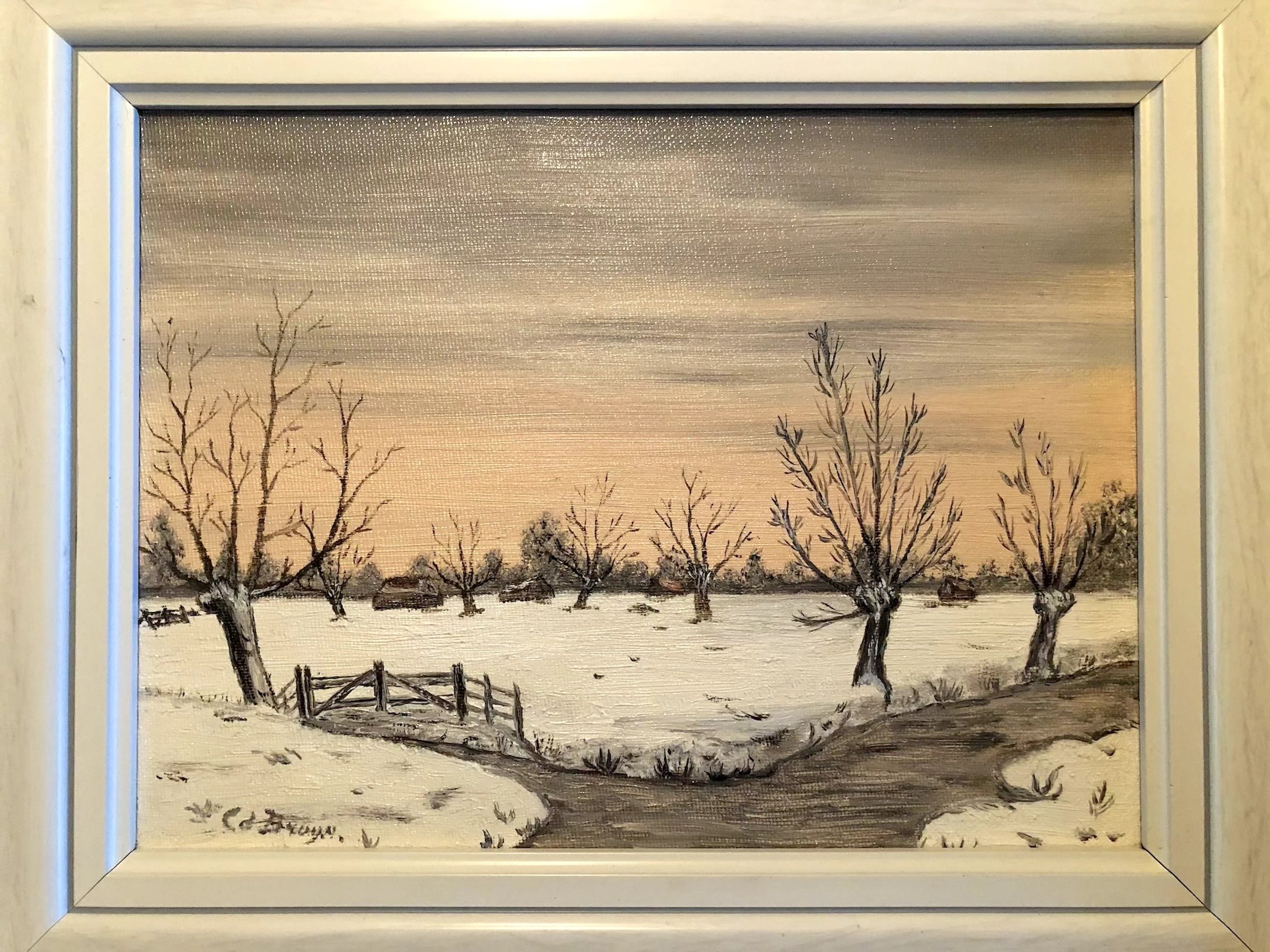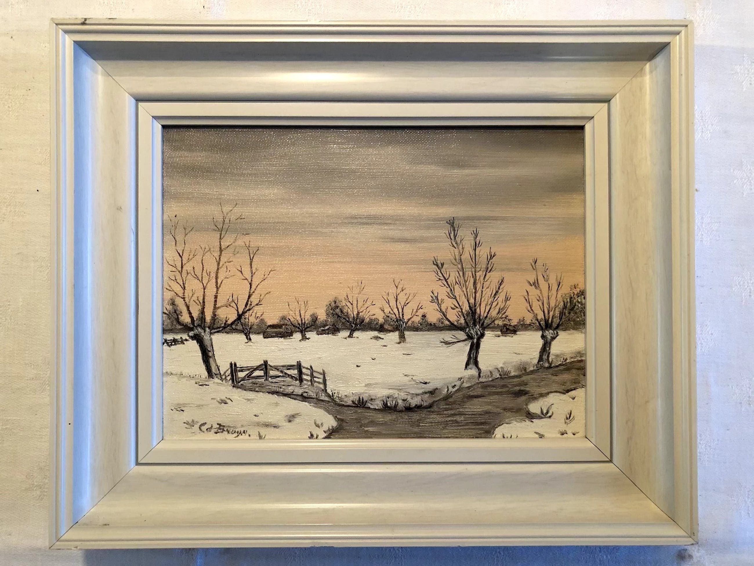 A7 15 L. de Bruijn Winterlandschap Olieverf op doek 19 x 24 cm 27 x 33 cm