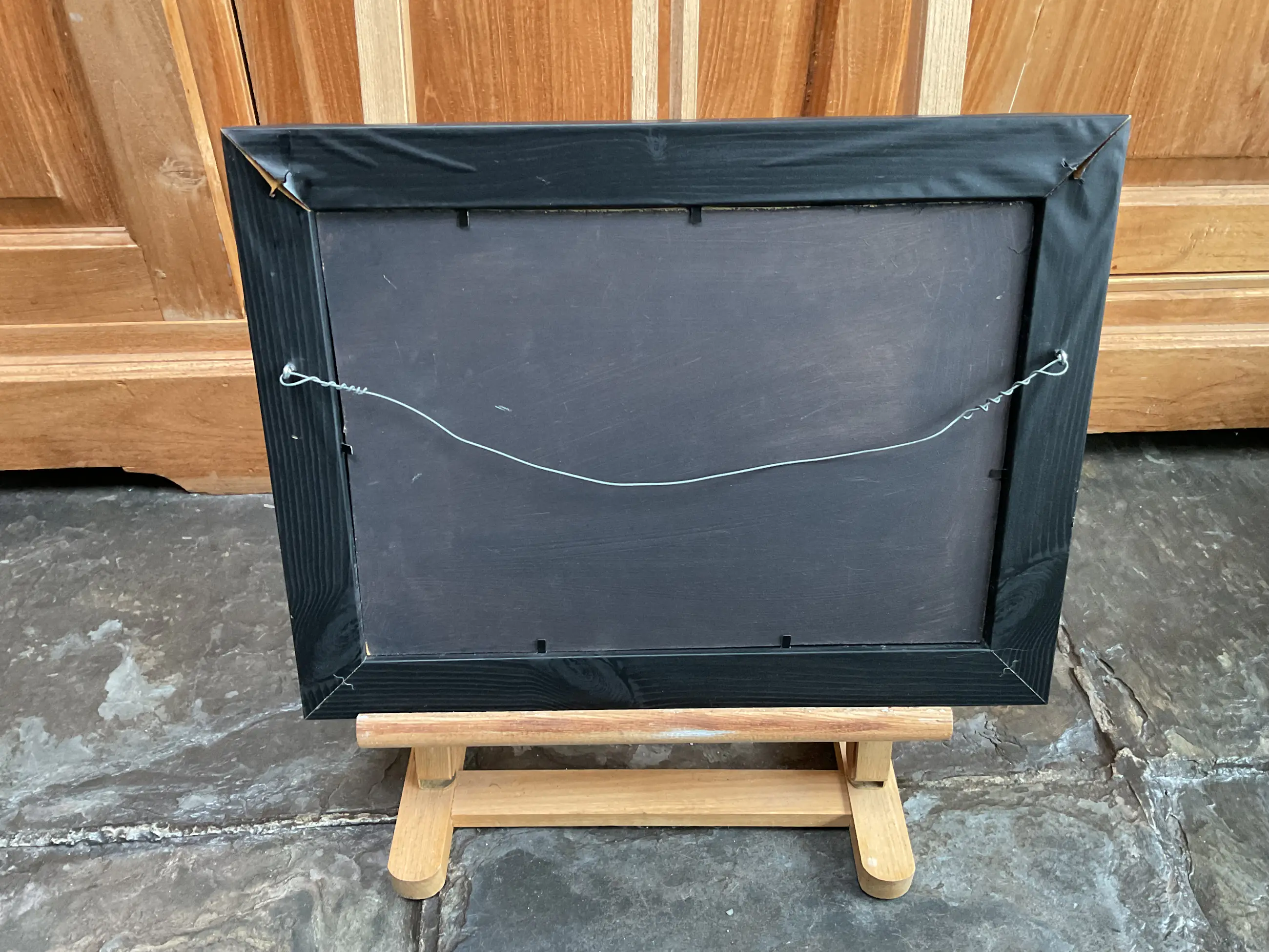 Het werk is in nieuwstaat. De lijst is netjes maar aan de bovenkant is de folie van de lijst wat gebobbeld.