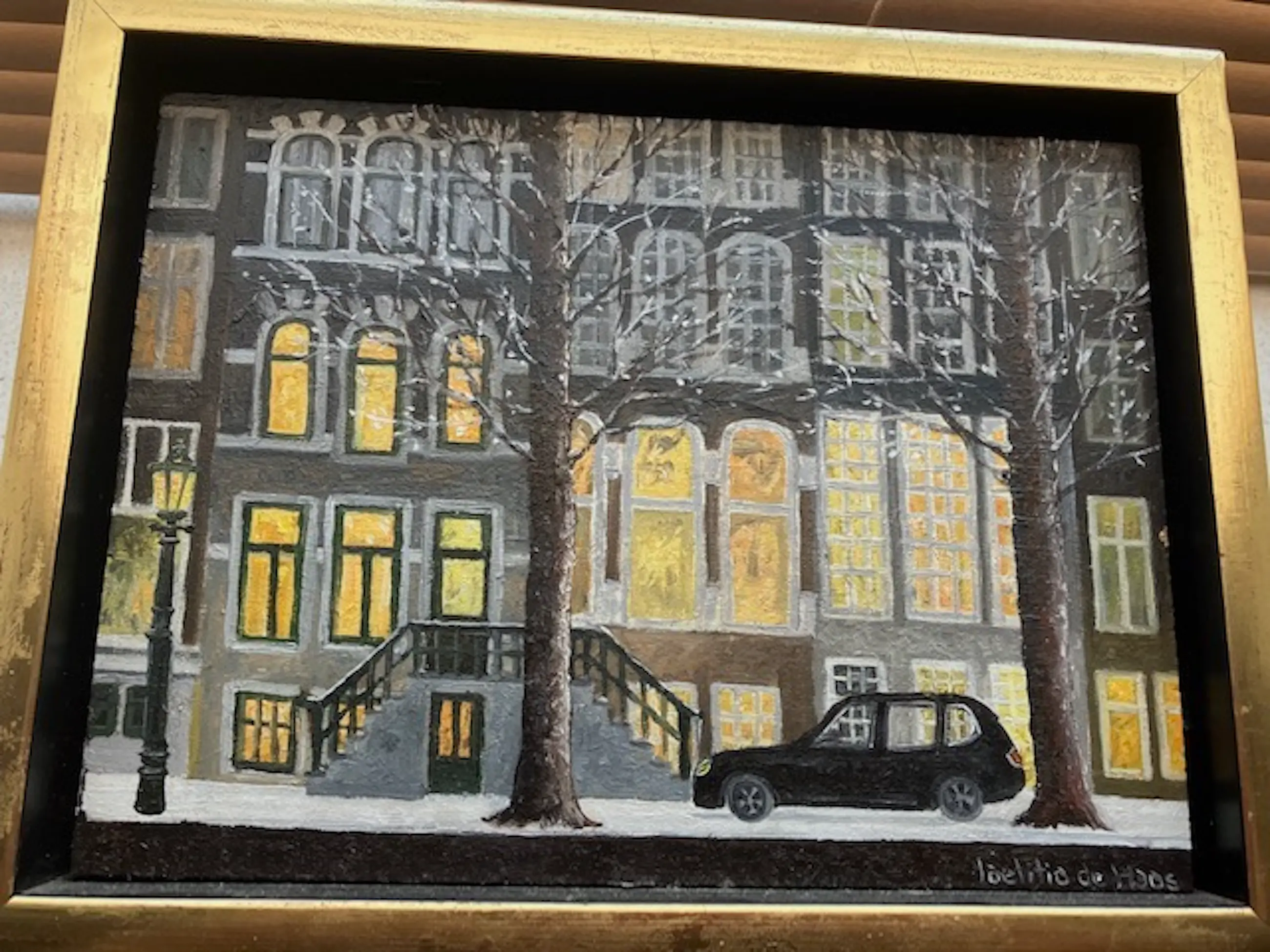 Uniek paneel, Amsterdam II van Laetitia de Haas, met hele mooie goudkleurige lijst.