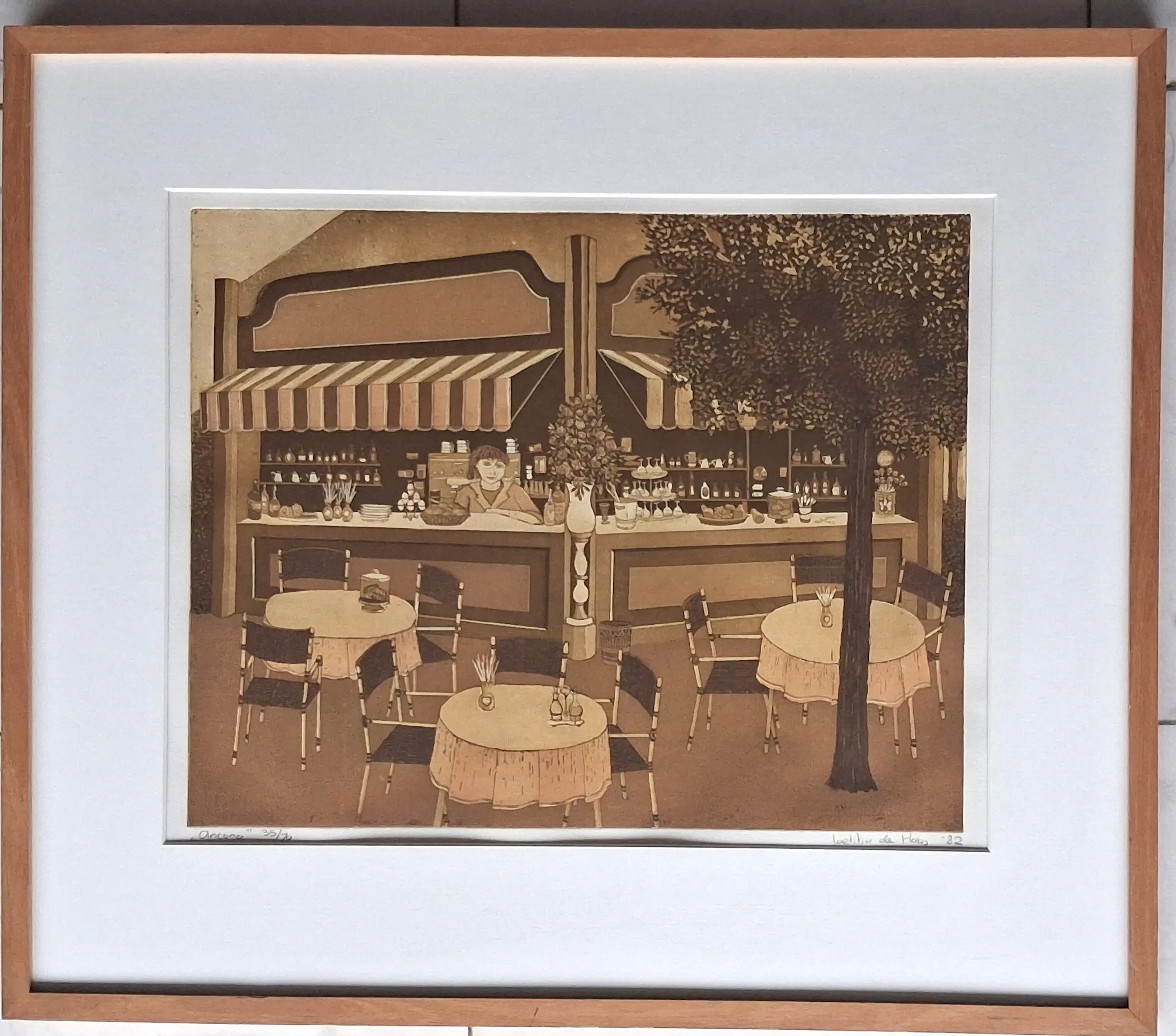 Sfeervolle kleurenets van Laetitia de Haas. Met potlood gesigneerd, gedateerd, genummerd en van titel voorzien. Ingelijst in keurige houten Barth-lijst. Het geheel verkeert in nieuwstaat