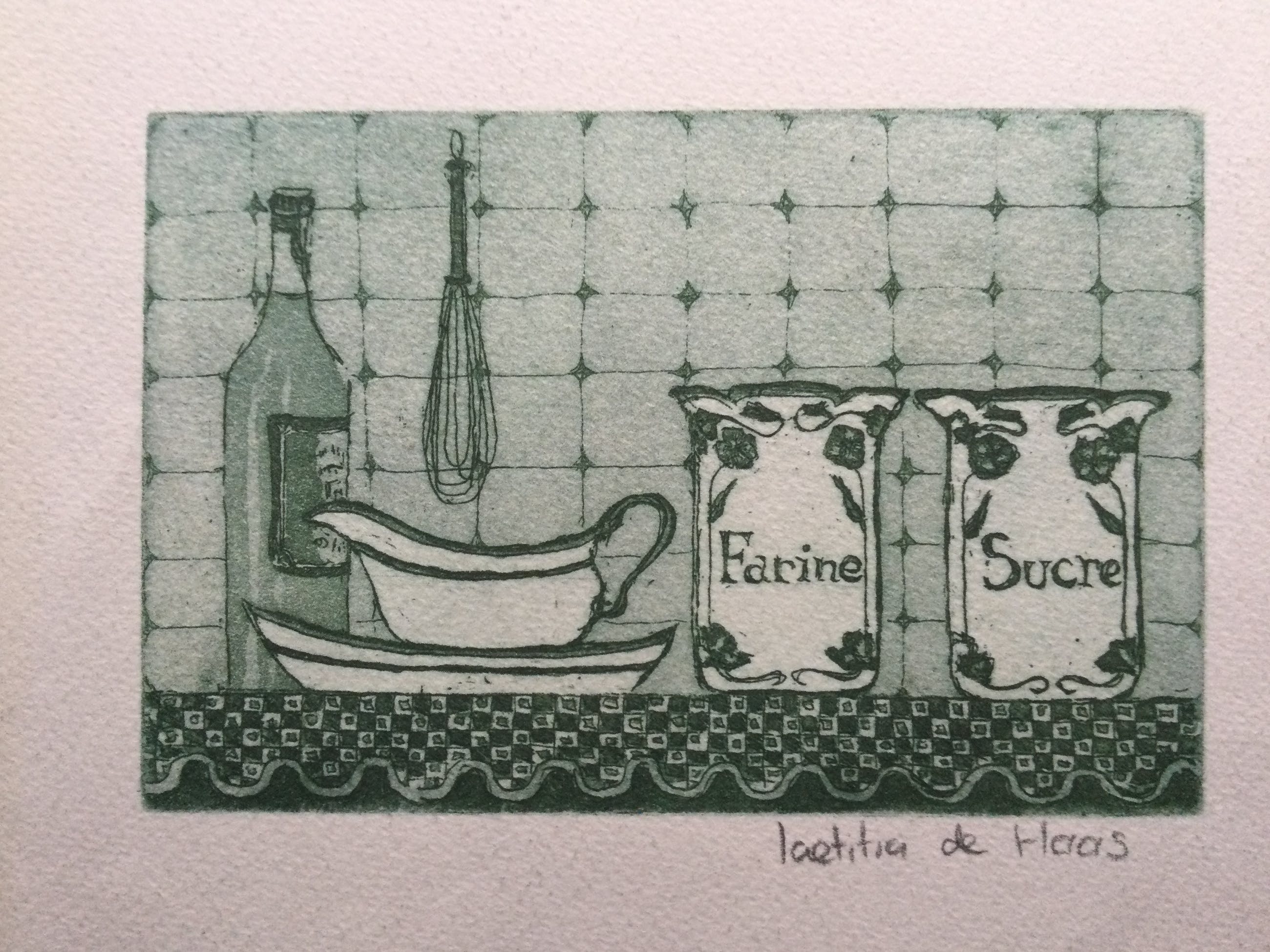 kleurendruk papier 28 x 22 cm beeld 9 x 14 cm handgesigneerd