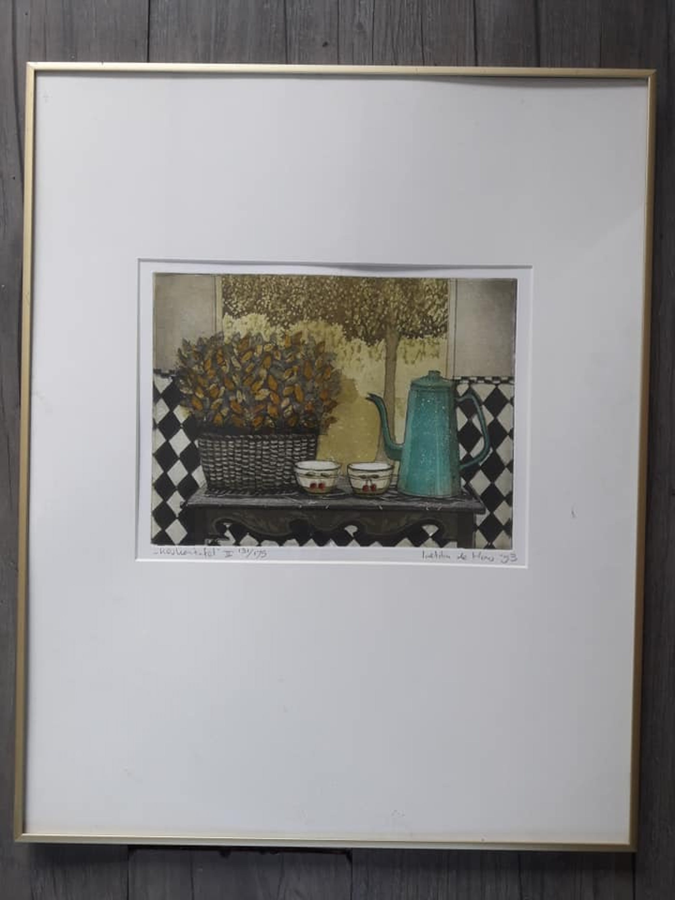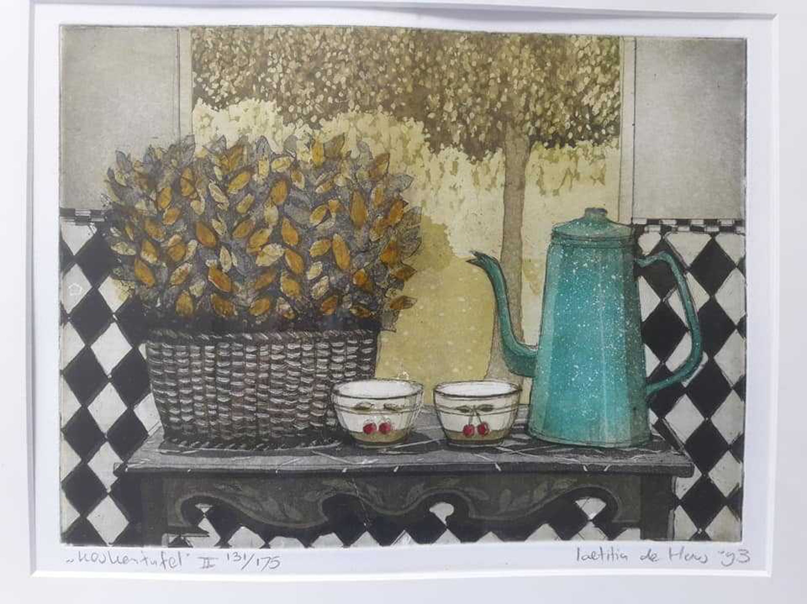 Laetitia de Haas wordt in 1948 in Voorburg geboren als dochter van kunstenares Willy Belinfante. Nadat ze aan de Gerrit Rietveld Academie in Amsterdam is afgestudeerd blijft ze in de hoofdstad wonen en werken. Ze maakt in een herkenbare, ietwat naïeve en verstilde, figuratieve stijl met name olieverfschilderijen en kleurenetsen. Voor haar omvangrijke grafische werk ontvangt ze in 1986 de Prix Francois 1. Gezien de dromerige, idyllische sfeer is het niet verwonderlijk dat er talloze wenskaarten van haar oeuvre zijn gedrukt, die via internet verkrijgbaar zijn. 'In het schijnbaar onopvallende weet zij het fascinerende te ontdekken', aldus een rake typering van een recensent.Tuinen en binnenplaatsjes, natuur door mensenhanden vormgegeven, dat zijn de geliefde onderwerpen van Laetitia de Haas. De resten van menselijke activiteit, zoals stoelen, tafels, theegerei, suggereren het aanwezig zijn van de mens. Daardoor onsttaat er een harmonie der dingen. Het werk straalt een voornaamheid en rust uit, die wij in de dagelijkse werkelijkheid dikwijls ontberen. Het is deze ontspannen sfeer die velen zo aanspreekt.Ogenschijnlijk ademen haar schilderijen en etsen een sfeer van zorgeloosheid uit, hetgeen niet wil zeggen dat haar werk met eenzelfde vanzelfsprekendheid tot stand komt. Het vaak moeilijke wordingsproces vindt plaats in de eenzaamheid van het atelier, waar de problemen om een sfeer van onbevangenheid te creeren worden opgelost. Behalve talent zijn grote discipline en werklust eigenschappen die noodzakelijke voorwaarden zijn voor een echt kunstenaarsschap. Laetitia de Haas bezit deze eigenschappen in ruime mate, hetgeen blijkt uit de omvang en de kwaliteit van haar oeuvre.'Ik zoek altijd naar sfeervolle plaatsen, die mij aanspreken, of die mij iets zeggen en dus inspireren', zegt Laetitia de Haas. Daarnaast schildert ze graag romantische interieurs en doorkijkjes in tuinen, huizen en landschappen. 'De resten van menselijke activiteit, zoals stoelen, tafels, theegerei, suggereren het aanwezig zijn van de mens. Daardoor ontstaat er een harmonie der dingen'. Inderdaad ontbreken mensen consequent in het werk van Laetitia de Haas. Recensenten schrijven, dat haar schilderijen wel de indruk wekken dat elk moment een persoon te voorschijn kan komen. 'Ze zijn voelbaar aanwezig, maar niet fysiek. Zal worden verzonden in een op maat gemaakte kist om beschadiging te voorkomen. Glasbreuk blijft risico koper. Kan ook worden opgehaald in Velsen - noord.
