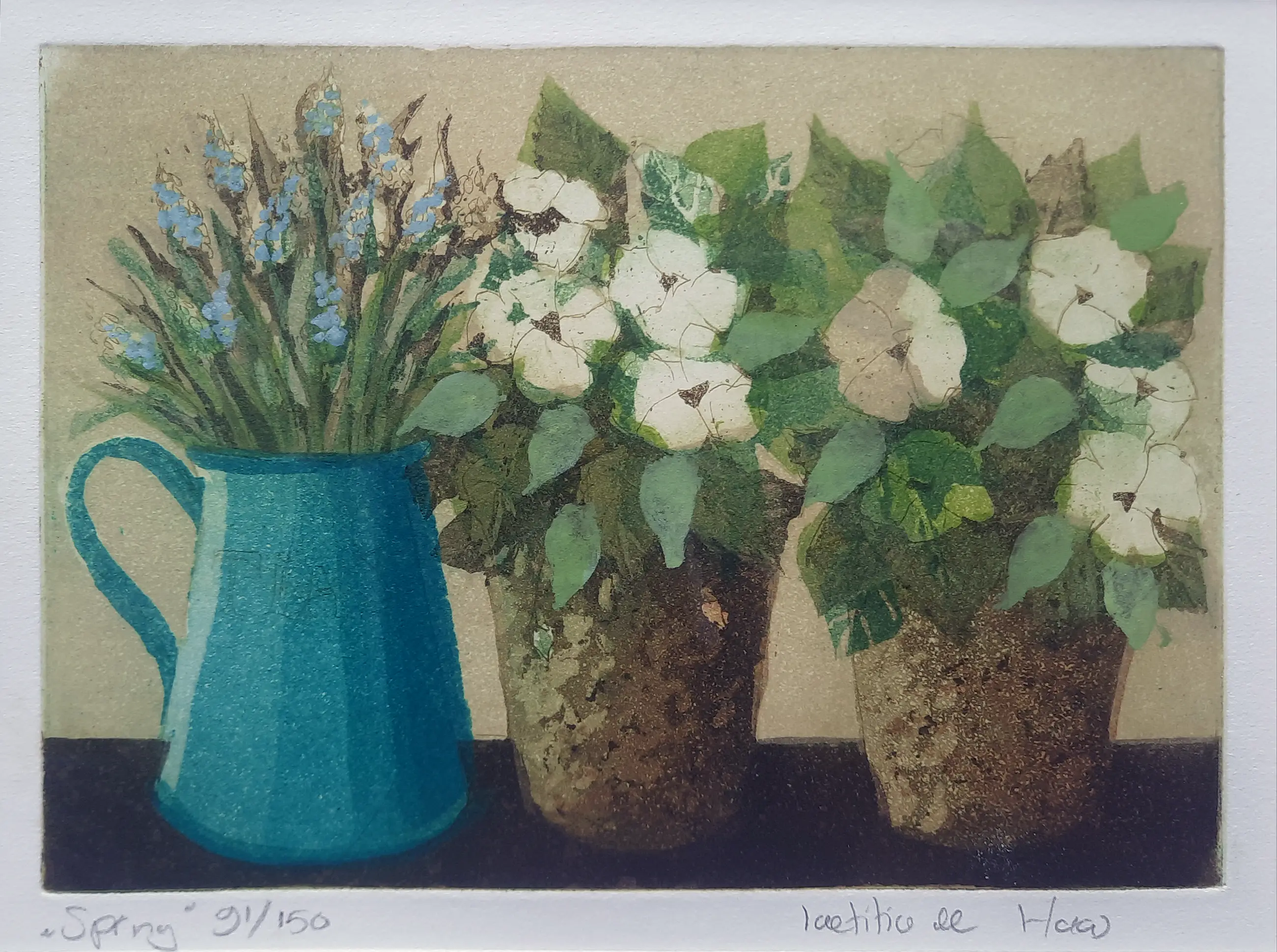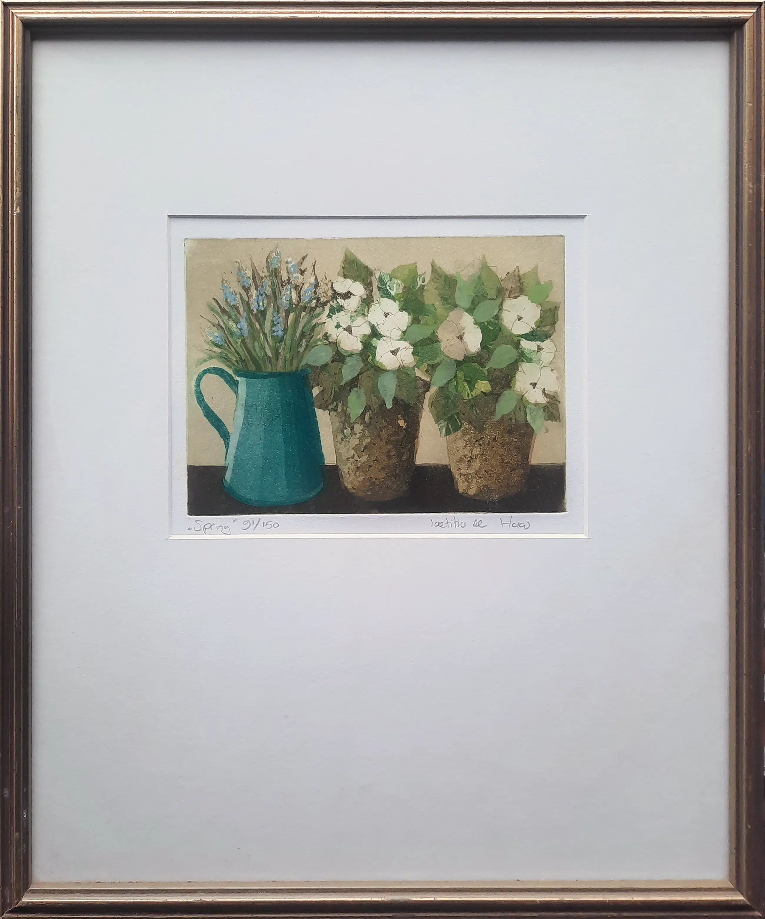 Spring van Laetitia de Haas in houten lijst, in passe-partout achter glas.