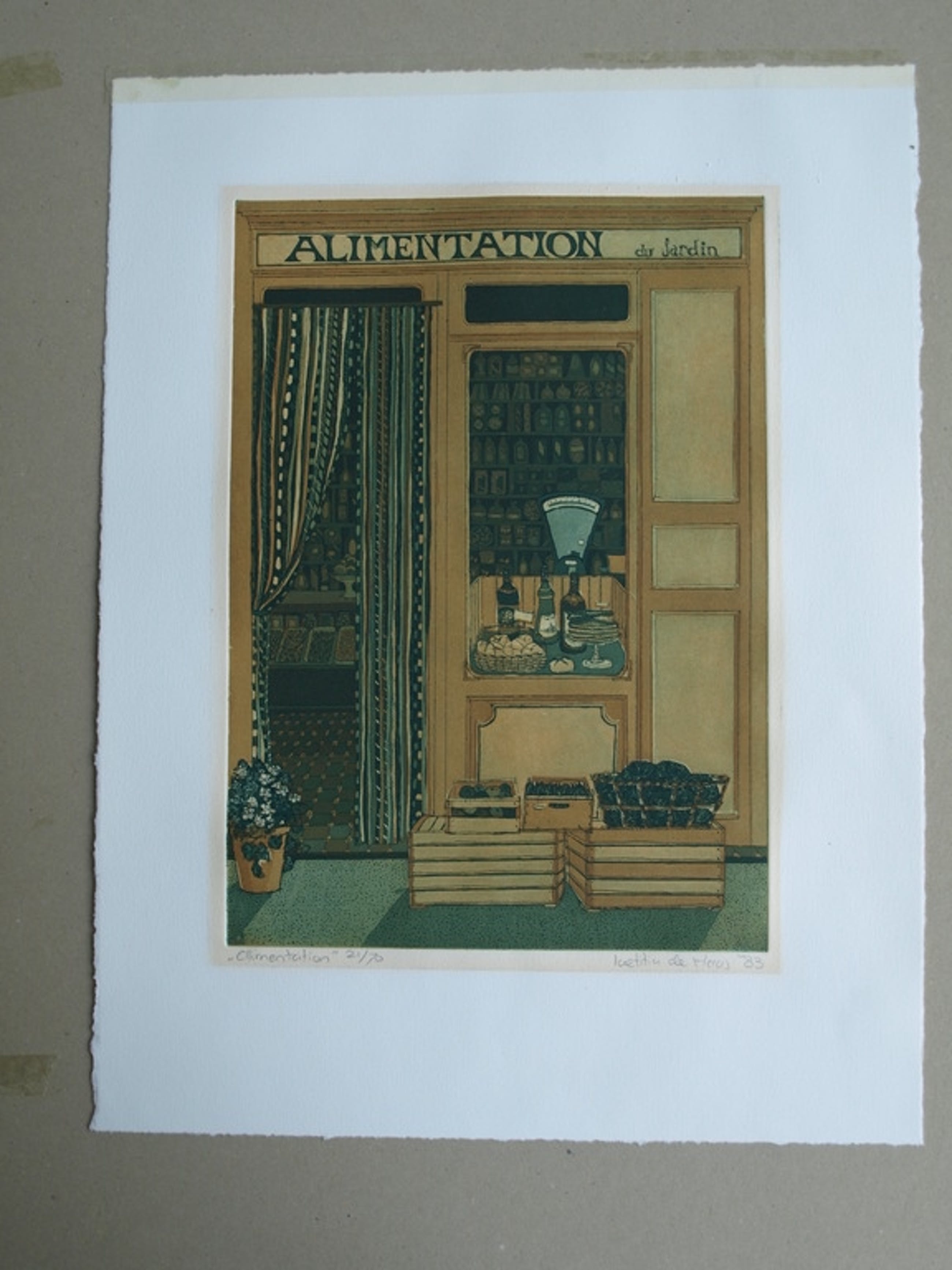 Een kleurenets van Laetitia de Haas uit 1983, getiteld “Alimentation”.