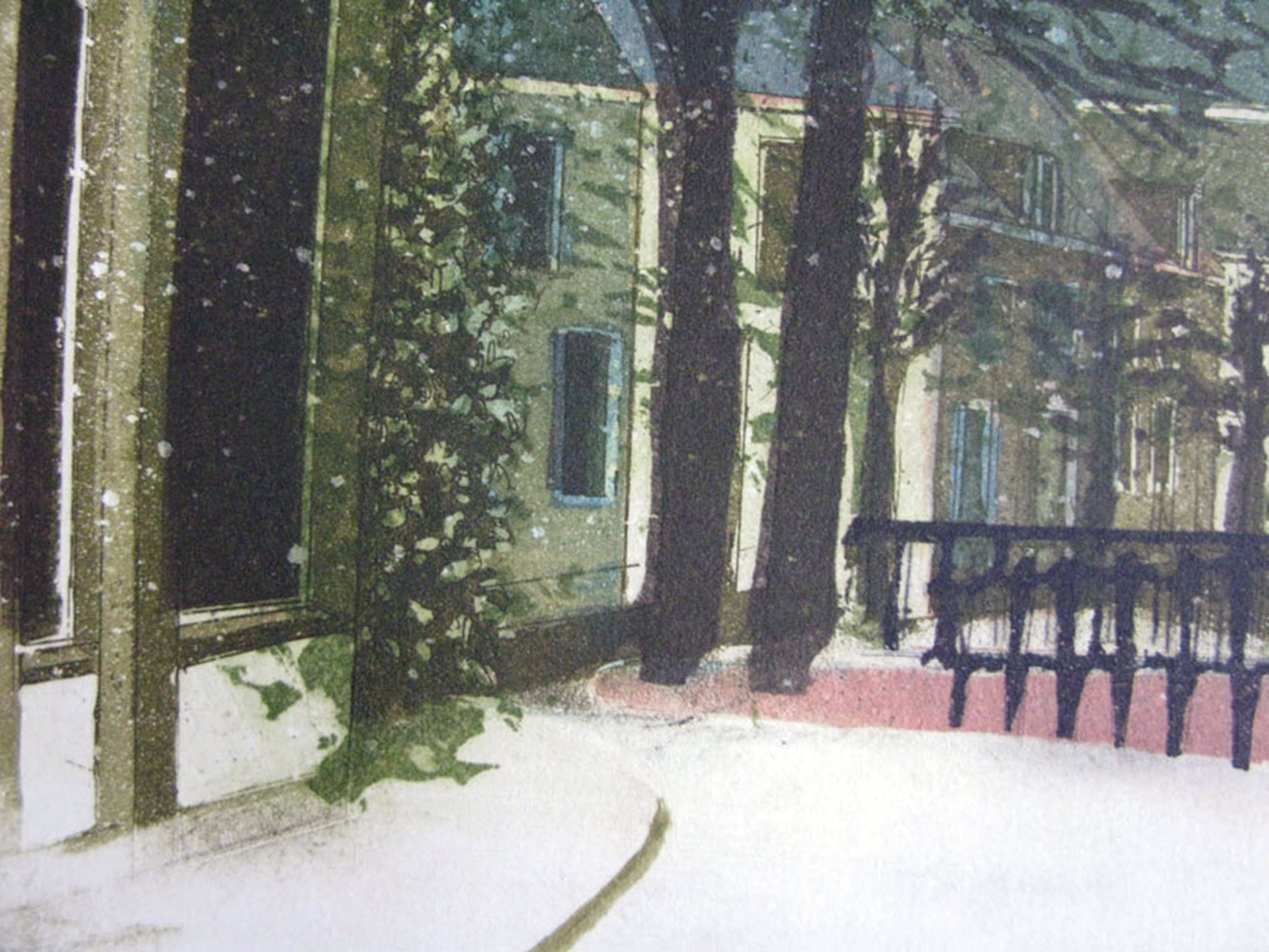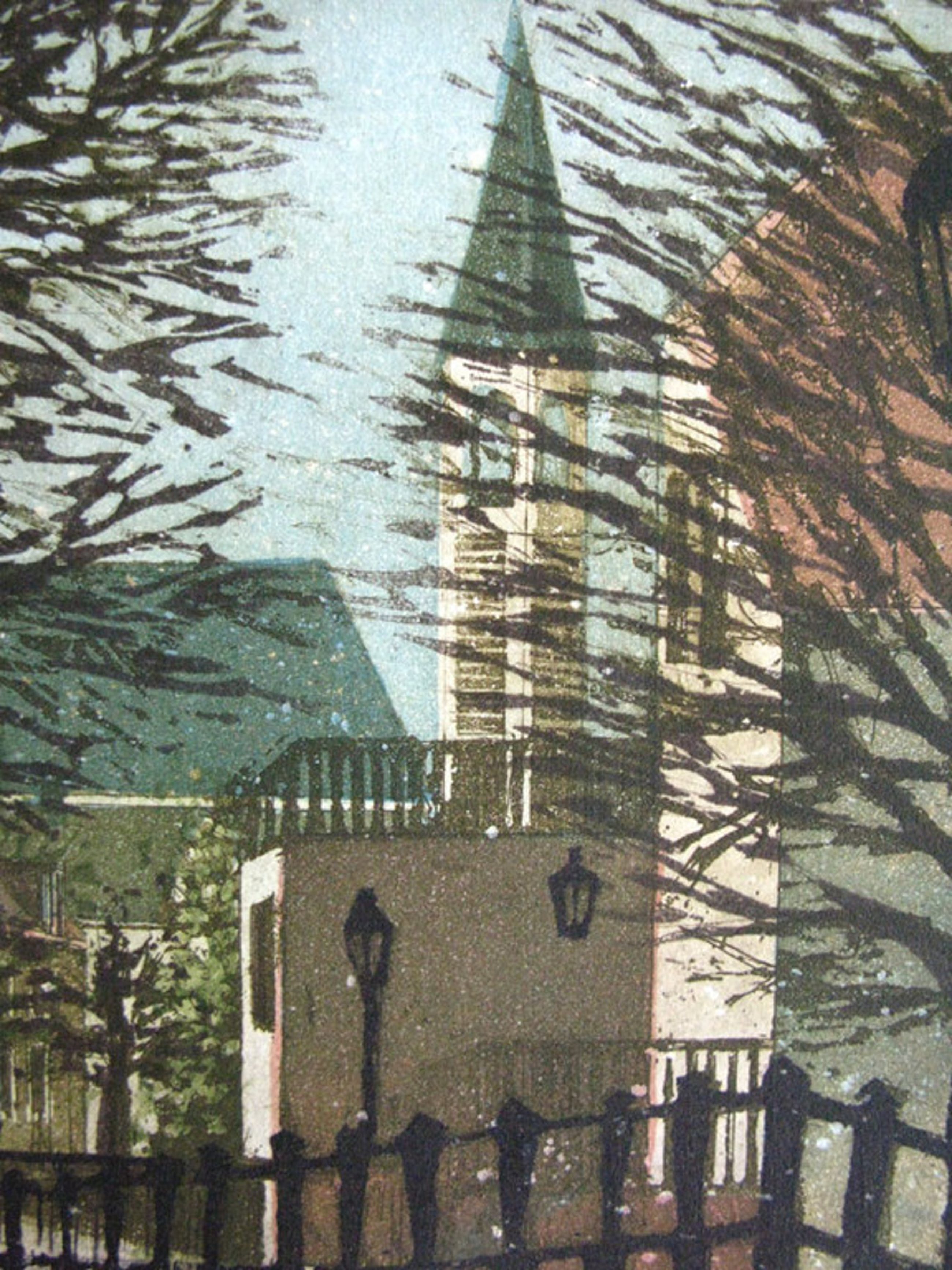 "Langs de gracht" is gesitueerd in Amersfoort. De afmeting van de afbeelding is 18 x 24 op een blad van 27 x 35. De kunstenaar heeft het werk rechtsonder gesigneerd en verder van titel en oplage 50/150 voorzien. Er is geen jaartal bekend. De conditie van de kleurets is uitstekend. De verzending is aangetekend via PostNL.