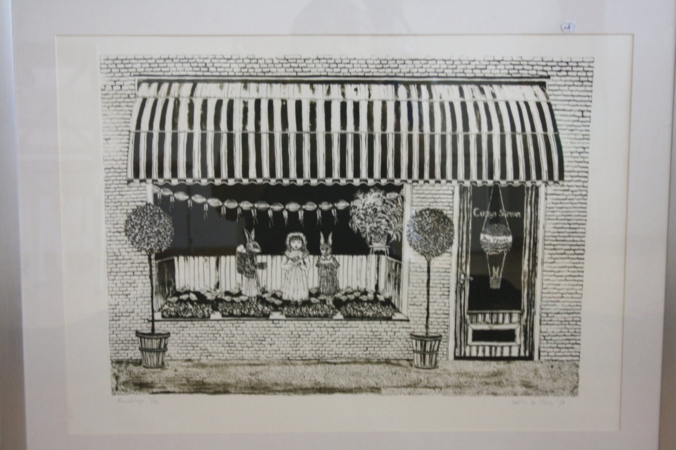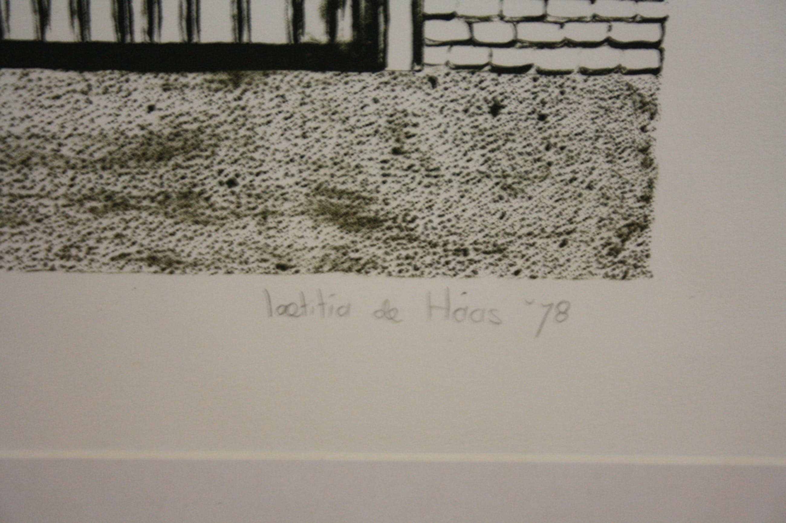 Een originele zwart/wit ets van de bekende Amsterdamse kunstenares Laetitia de Haas ( Voorburg 1948).Rechtsonder gesigneerd Laetitia de Haas 1978, en linksonder "Paasetalage " 2/60. Voorstelling is een winkel met een paasetalage. Laetitia de Haas, staat vermeldt in diverse boeken en woont en werkt in Amsterdam. Haar opleiding kreeg ze bij de Gerrit Rietveld Academie te Amsterdam. Zij is lid van het Amersfoortse Kunstgenootschap De Ploegh.