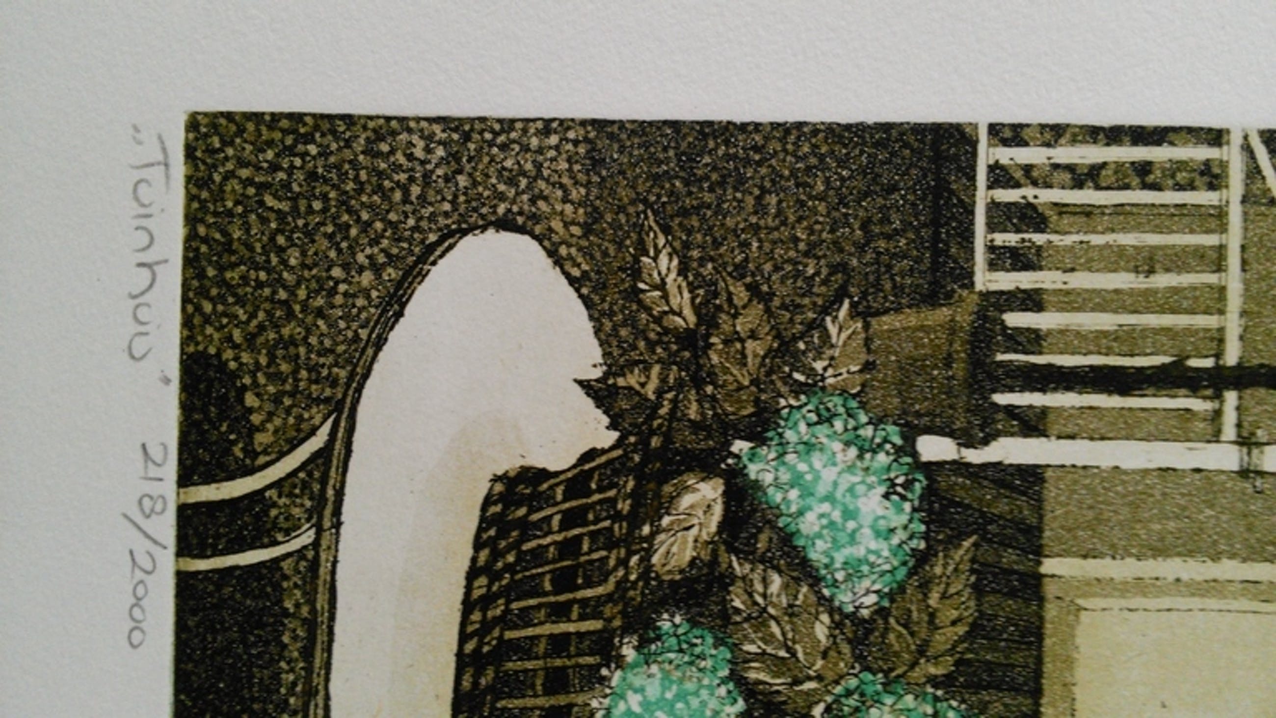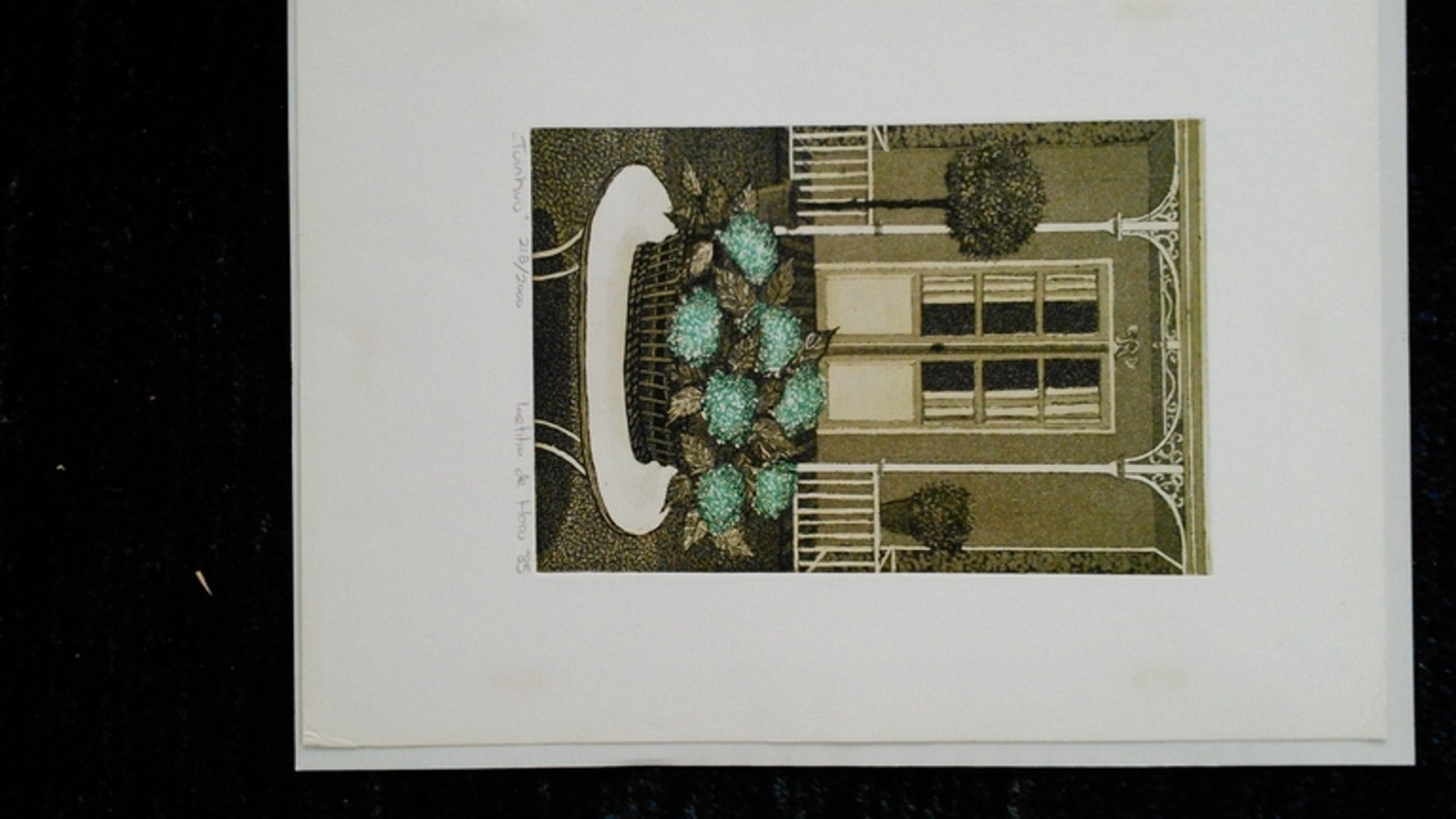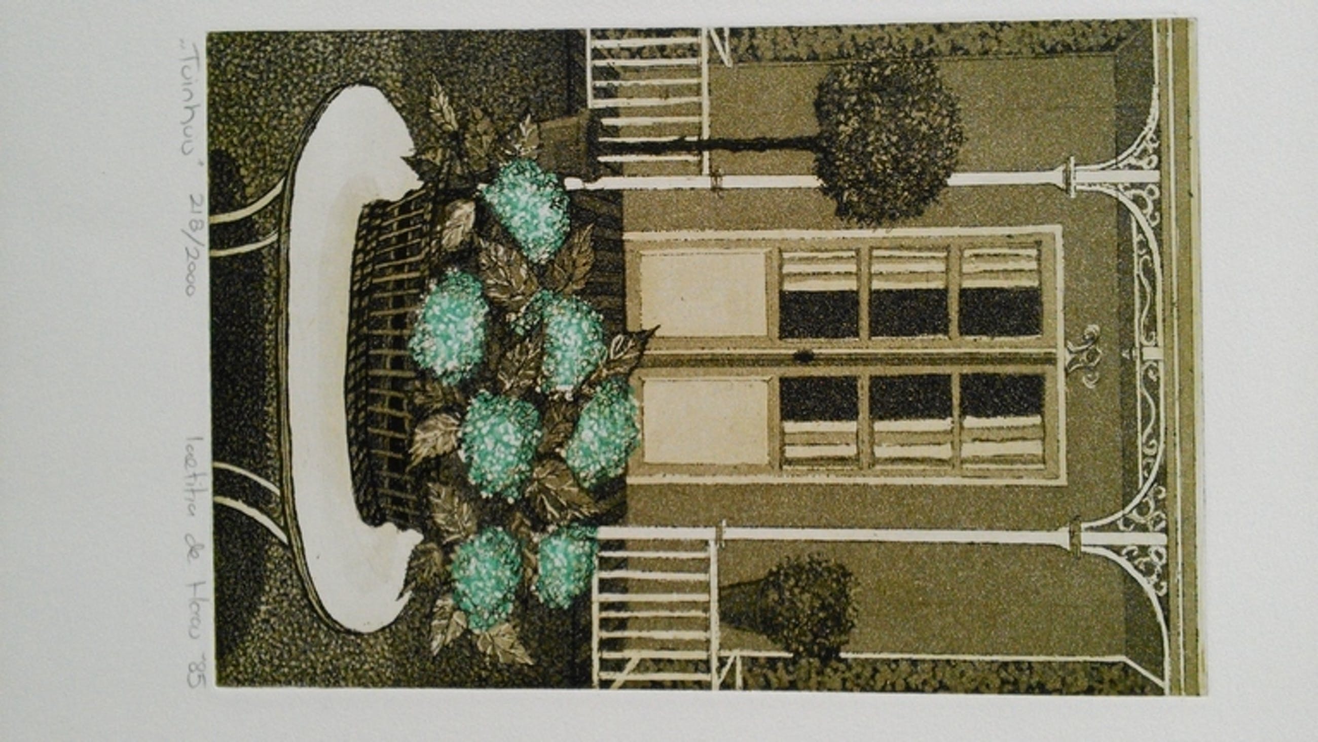 Litho met de titel "Tuinhuis"nummer 218 van de oplage van 2000 gesigneerd en gedateerd '85