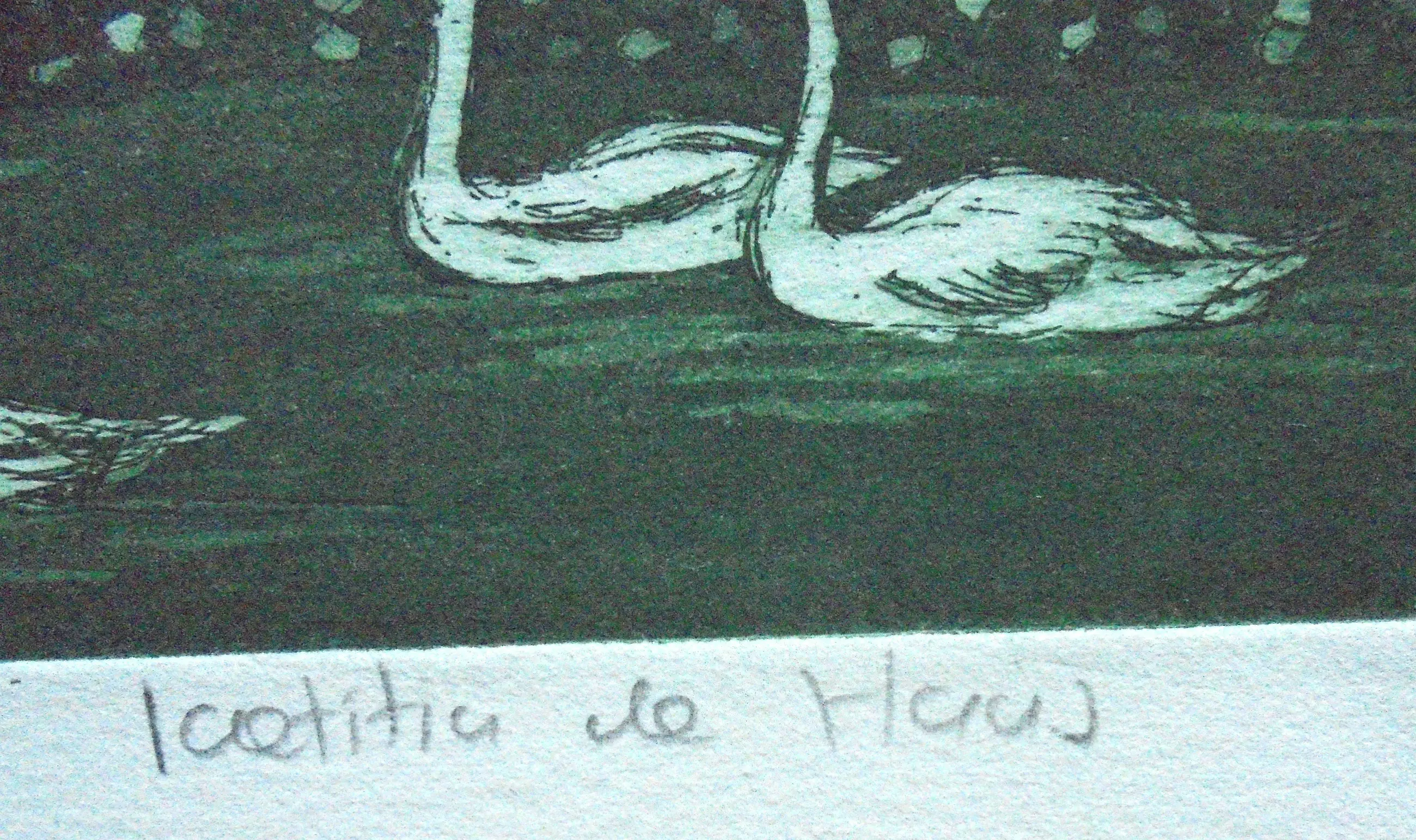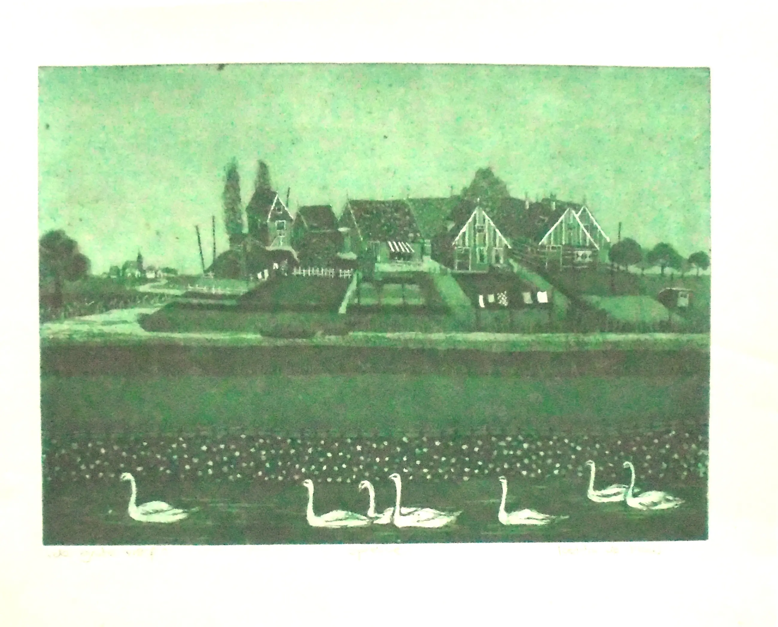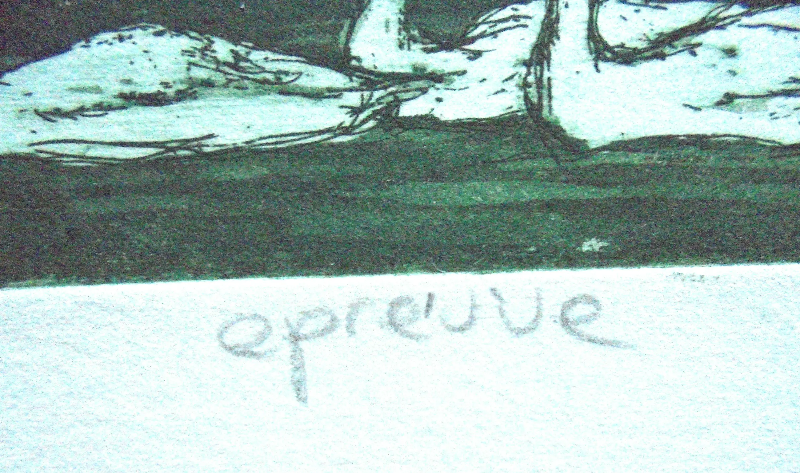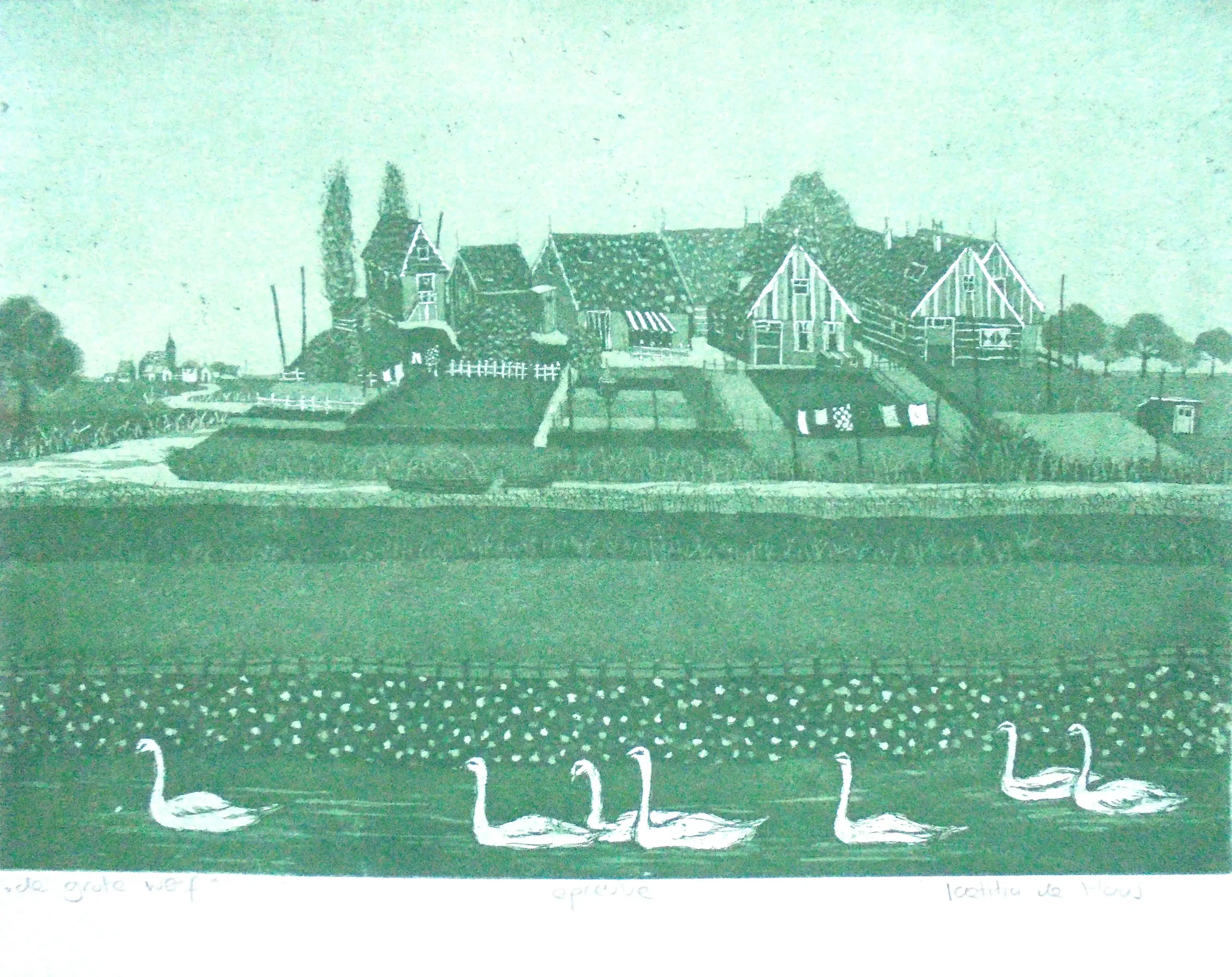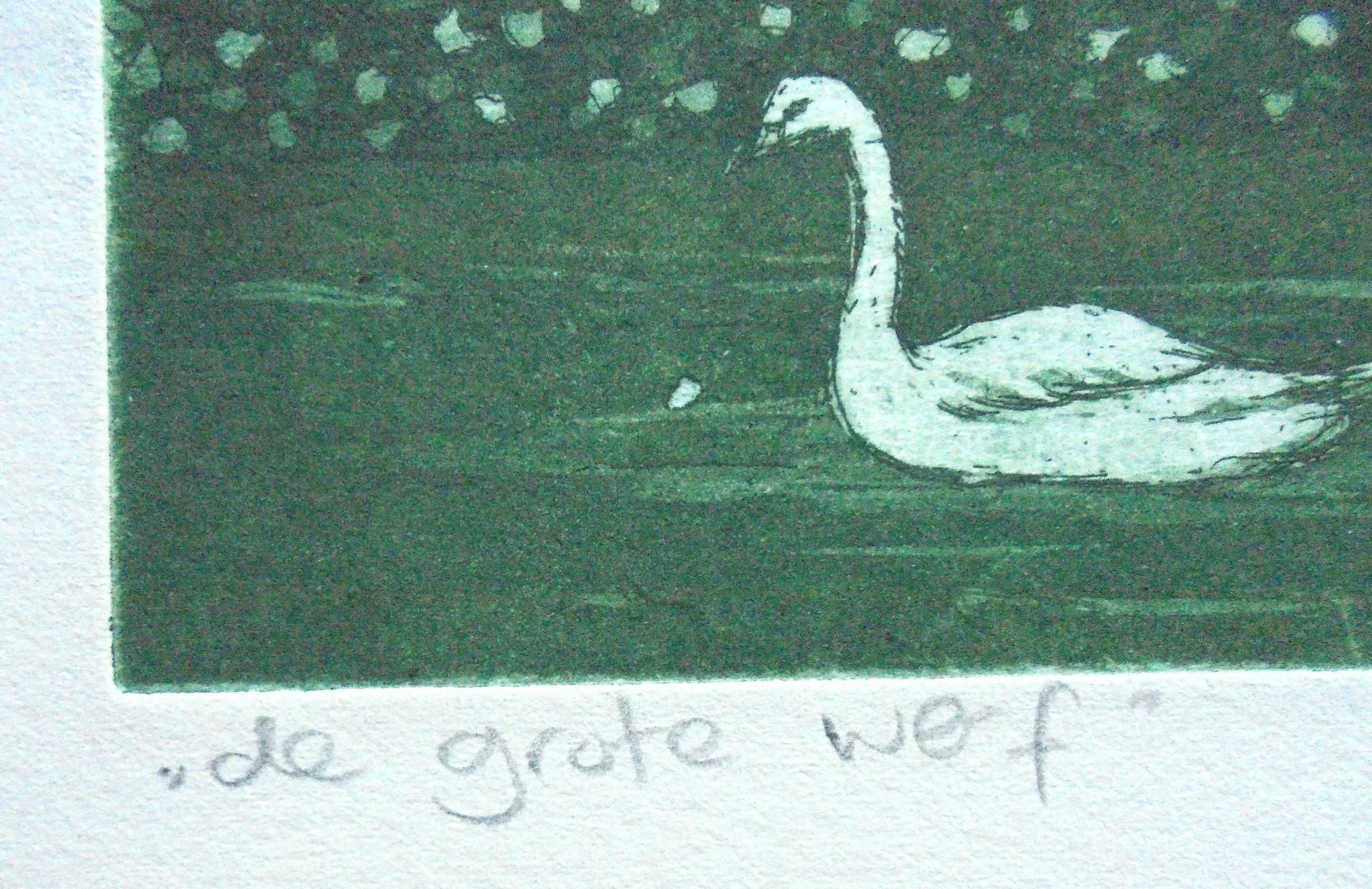 Met potlood gesigneerd Laetitia de Haas, "De grote wer". Epreuve.
