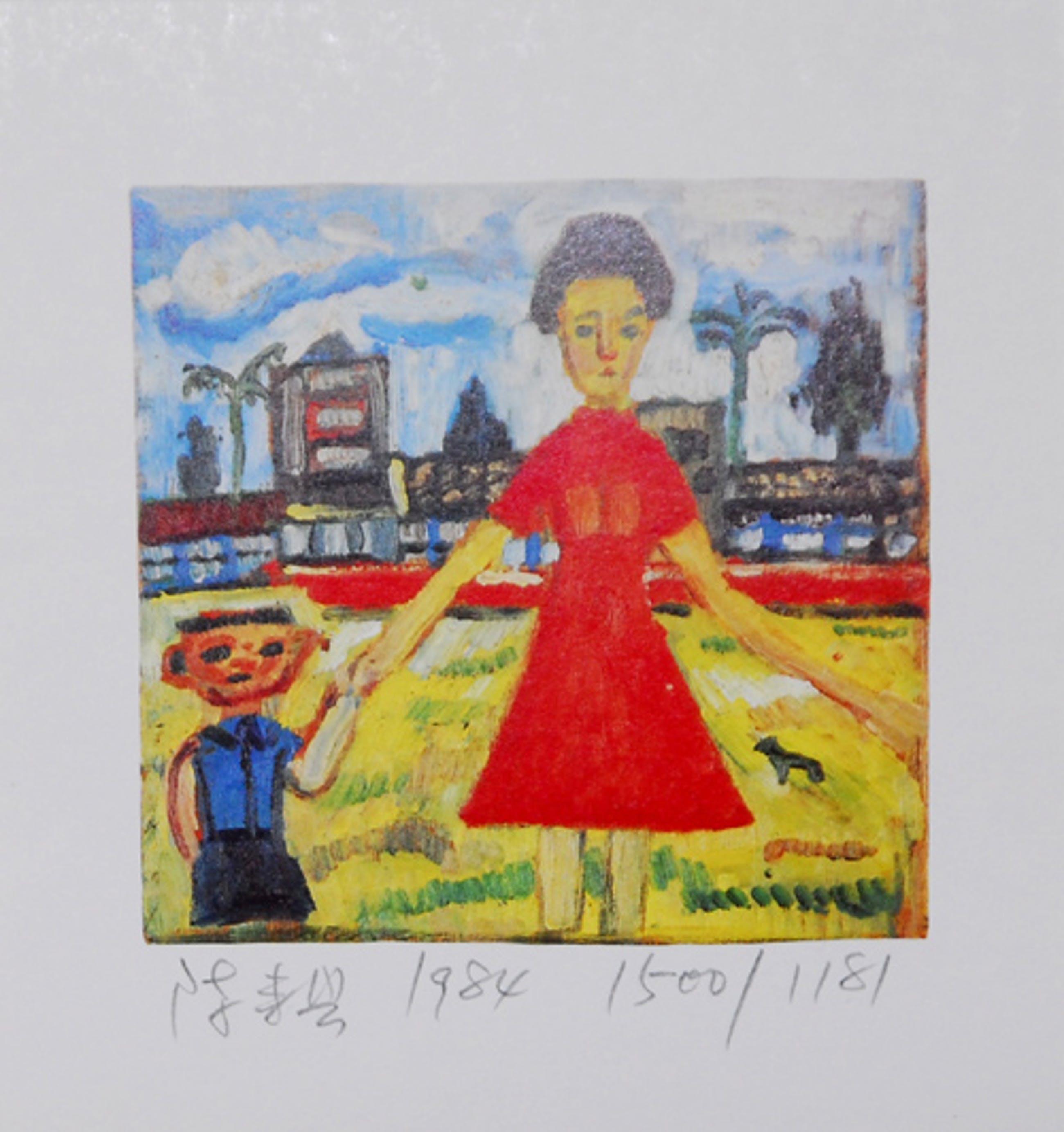 Collectie van drie handgesigneerde lithografien (1984) van Laixing Cheng. Titels: Moeder met kind, Cirkus I en II. Afmetingen: 15 x 14 cm.