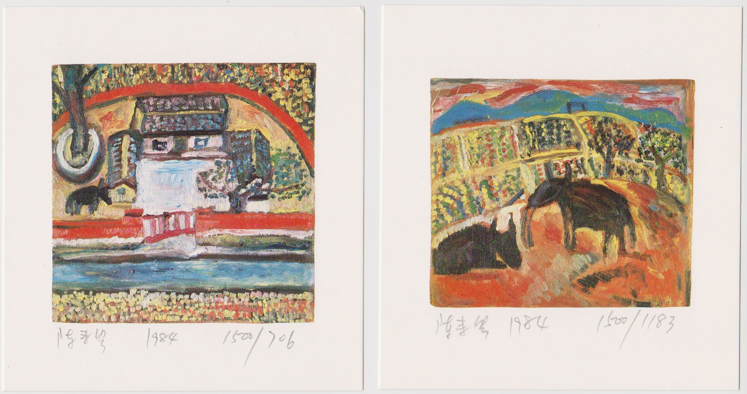 Twee fraaie handgesigneerde lithografien (1984) van Laixing Cheng. Titels: Cirkus I en II. Genummerd 1500/1183 en 1500/706. Afmetingen: 15 x 14 cm.