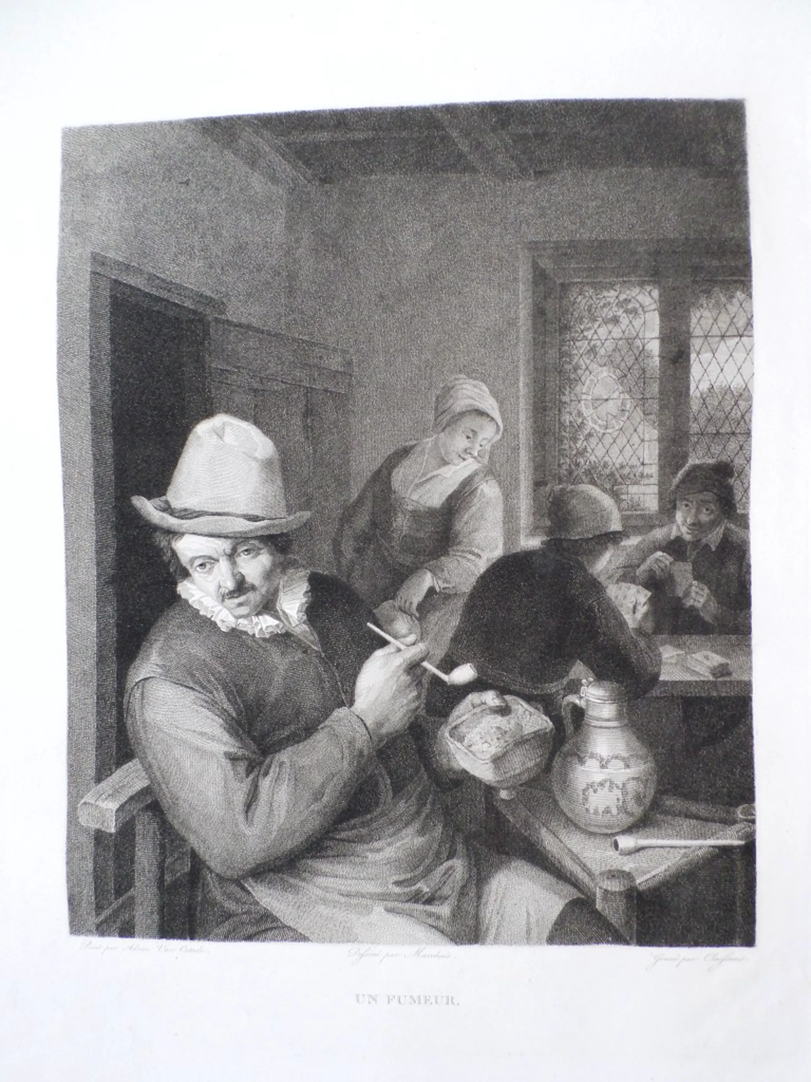 Un Fumeur - Lambert Antoine Claessens - Adriaen Van Ostade - Marchais Hollandse School Gravure Onderaan de prent: "Peint par Adrien Van Ostade - Dessiné par Marchais - Gravé par Claessens"