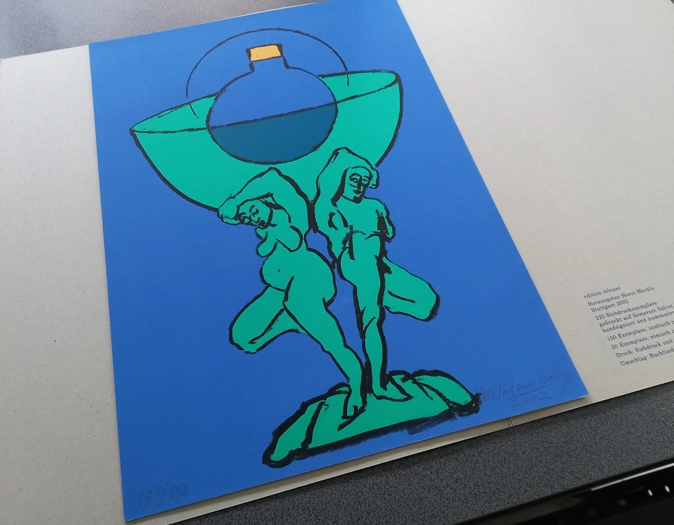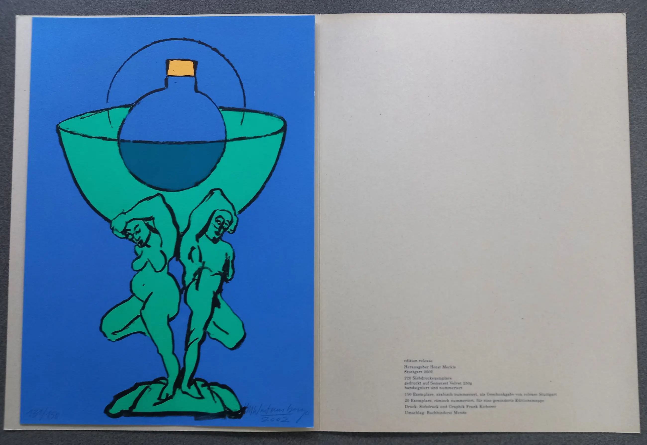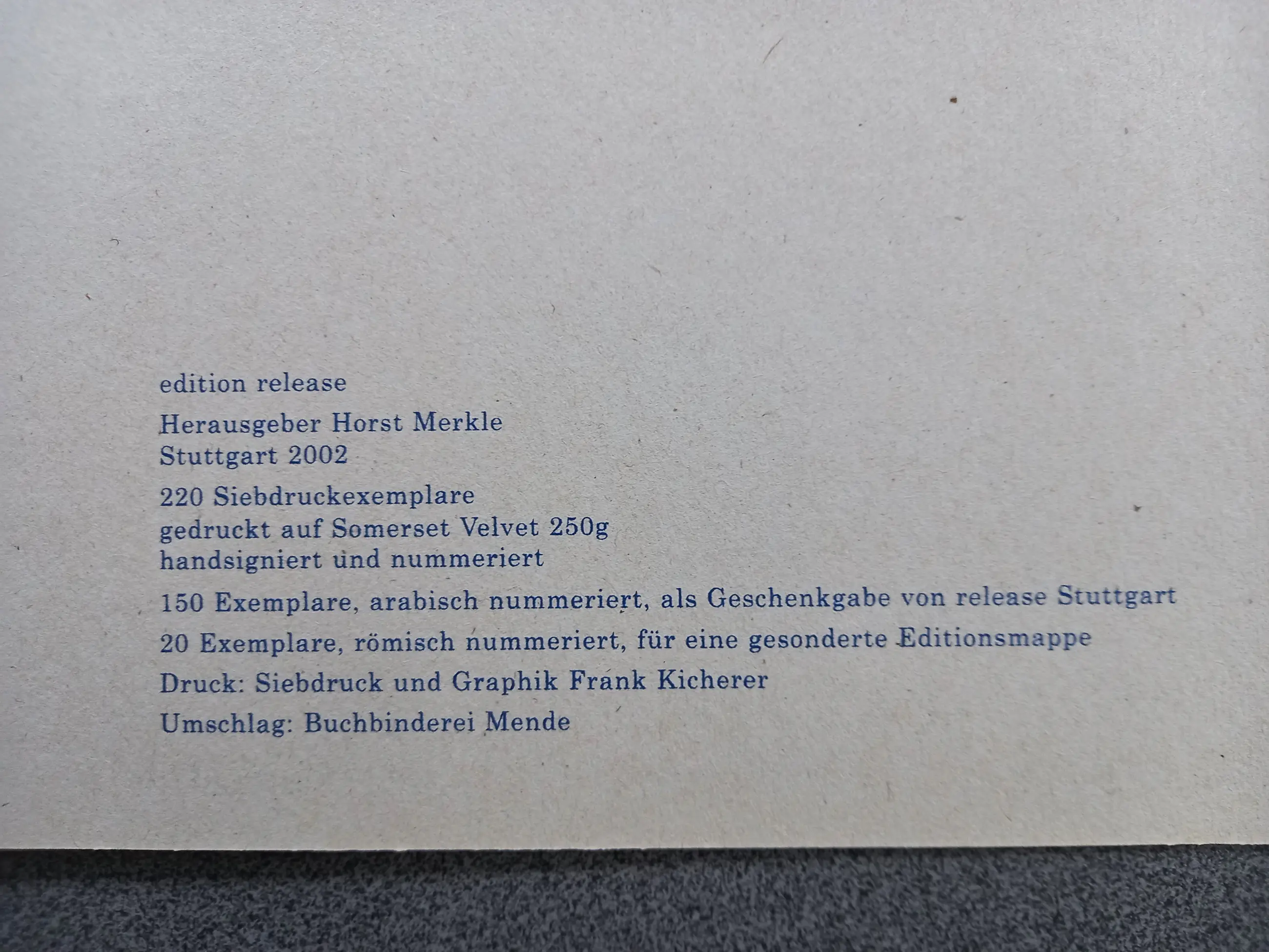 Deze prent werd in 2002 uitgegeven door Edition Release, uitgever Horst Merkle, Stuttgart, in een oplage van 150 gesigneerde en genummerde exemplaren.