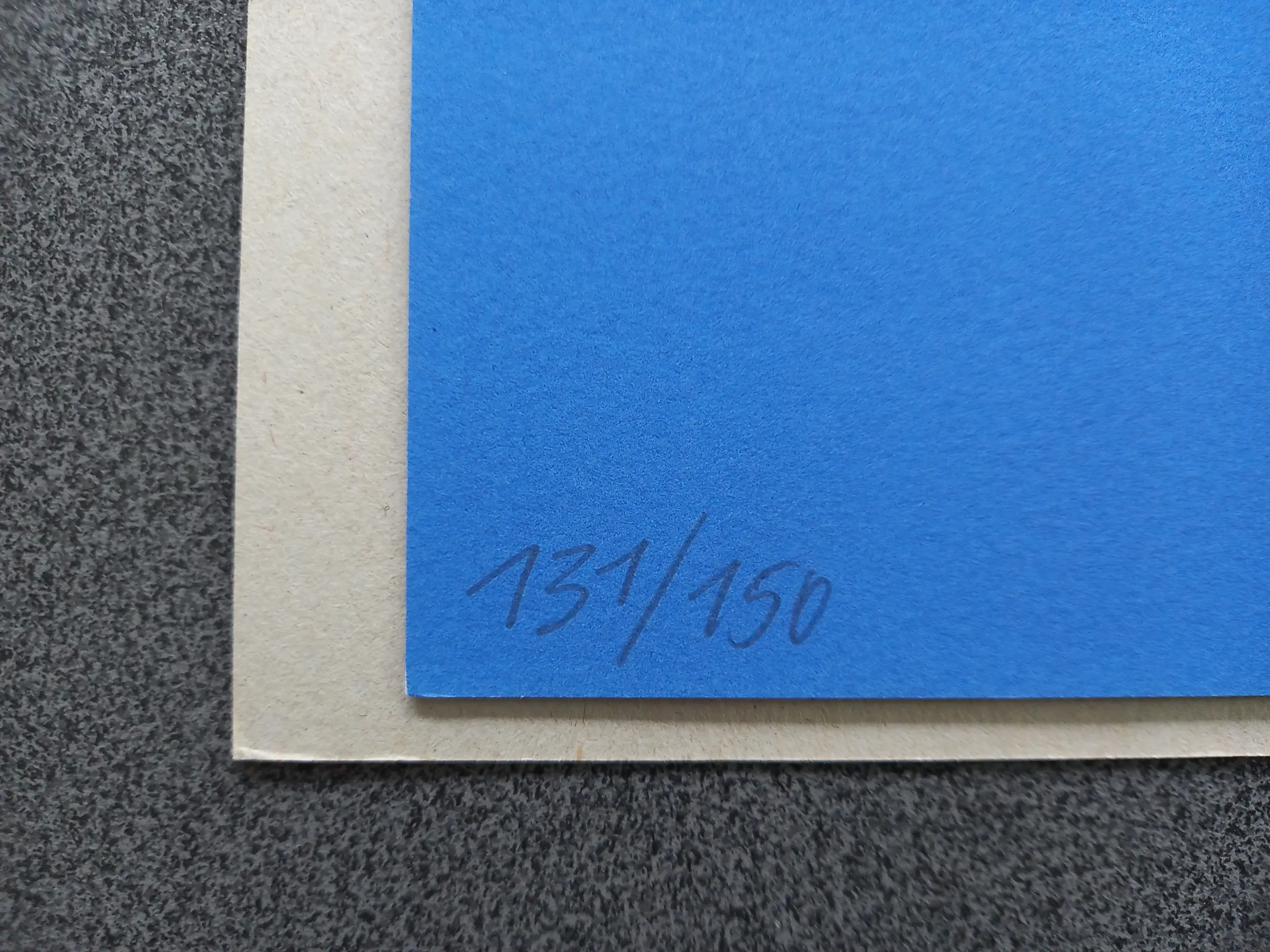 Dit is een zeefdruk in DIN A3-formaat, circa 42 cm hoog en 29,7 cm breed, gedrukt op zwaar, mat Somerset Velvet kunstpapier van 250 g/m² door de gerenommeerde Stuttgartse zeefdrukker Frank Kicherer.