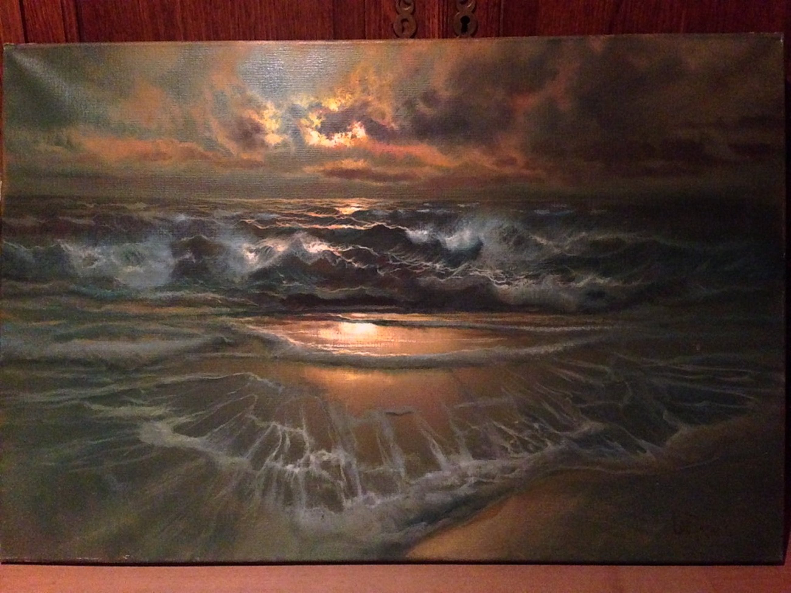 Het schilderij heeft de typische touch van de artiest en de kleuren zijn bijzonder levendig.