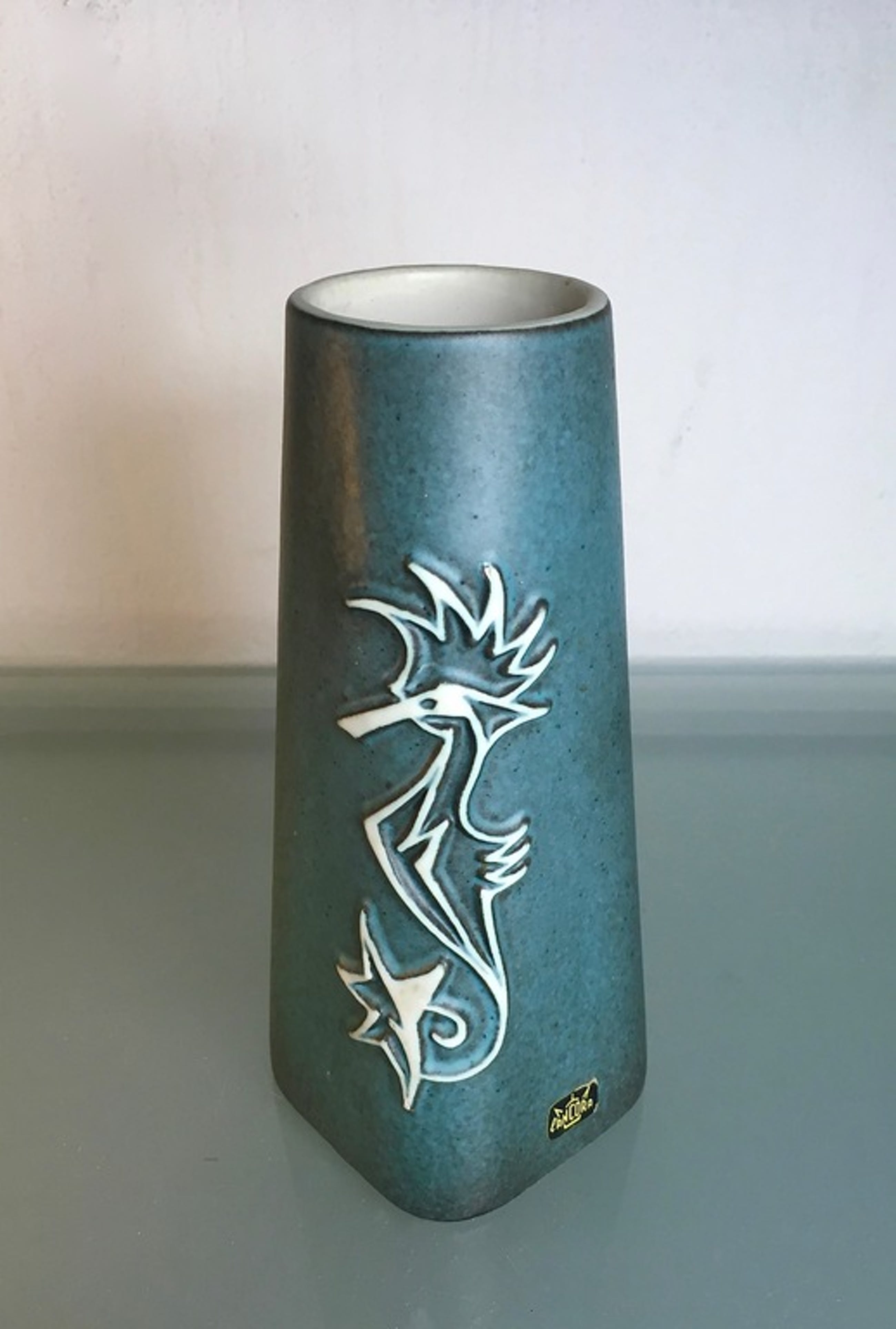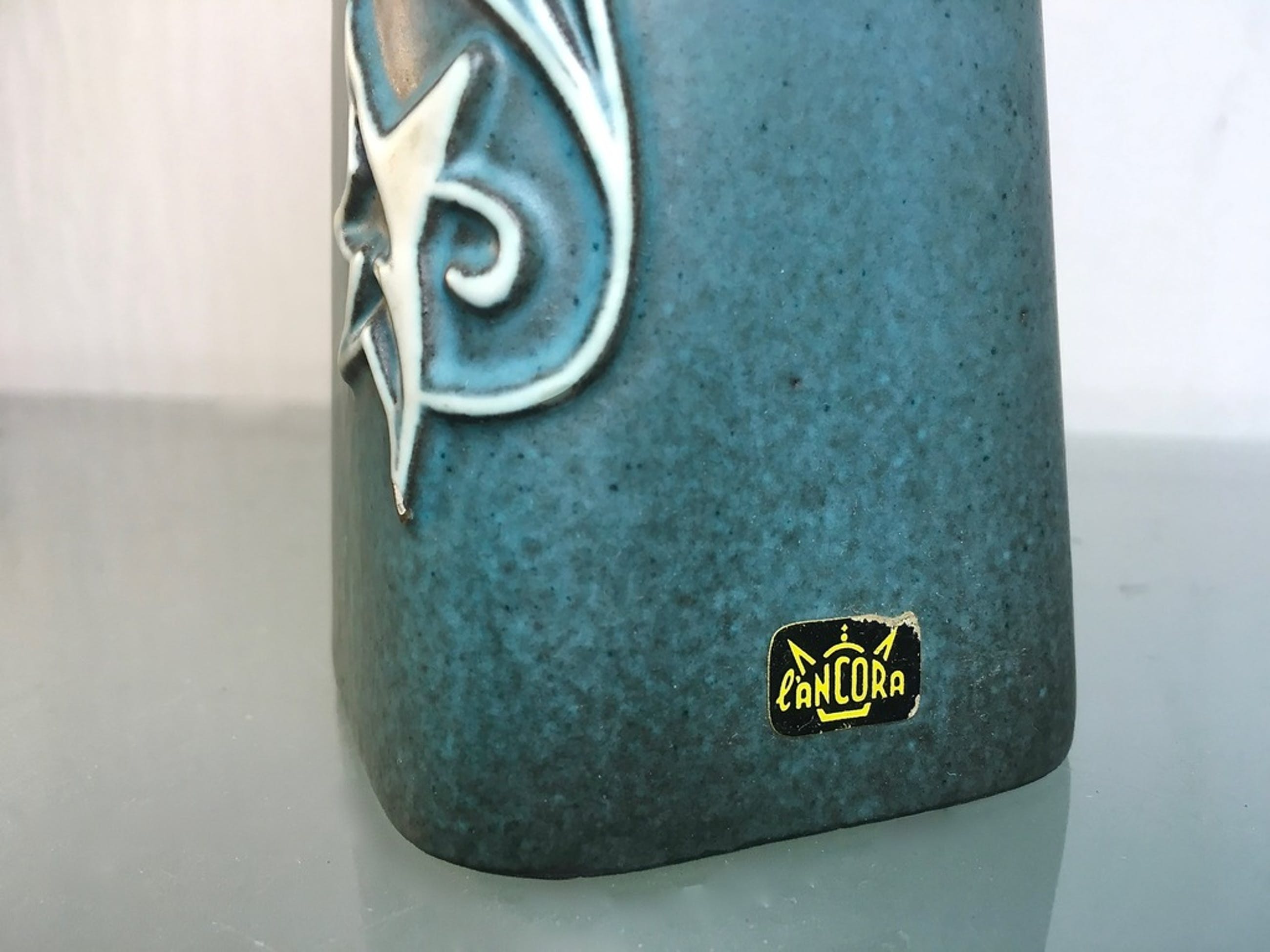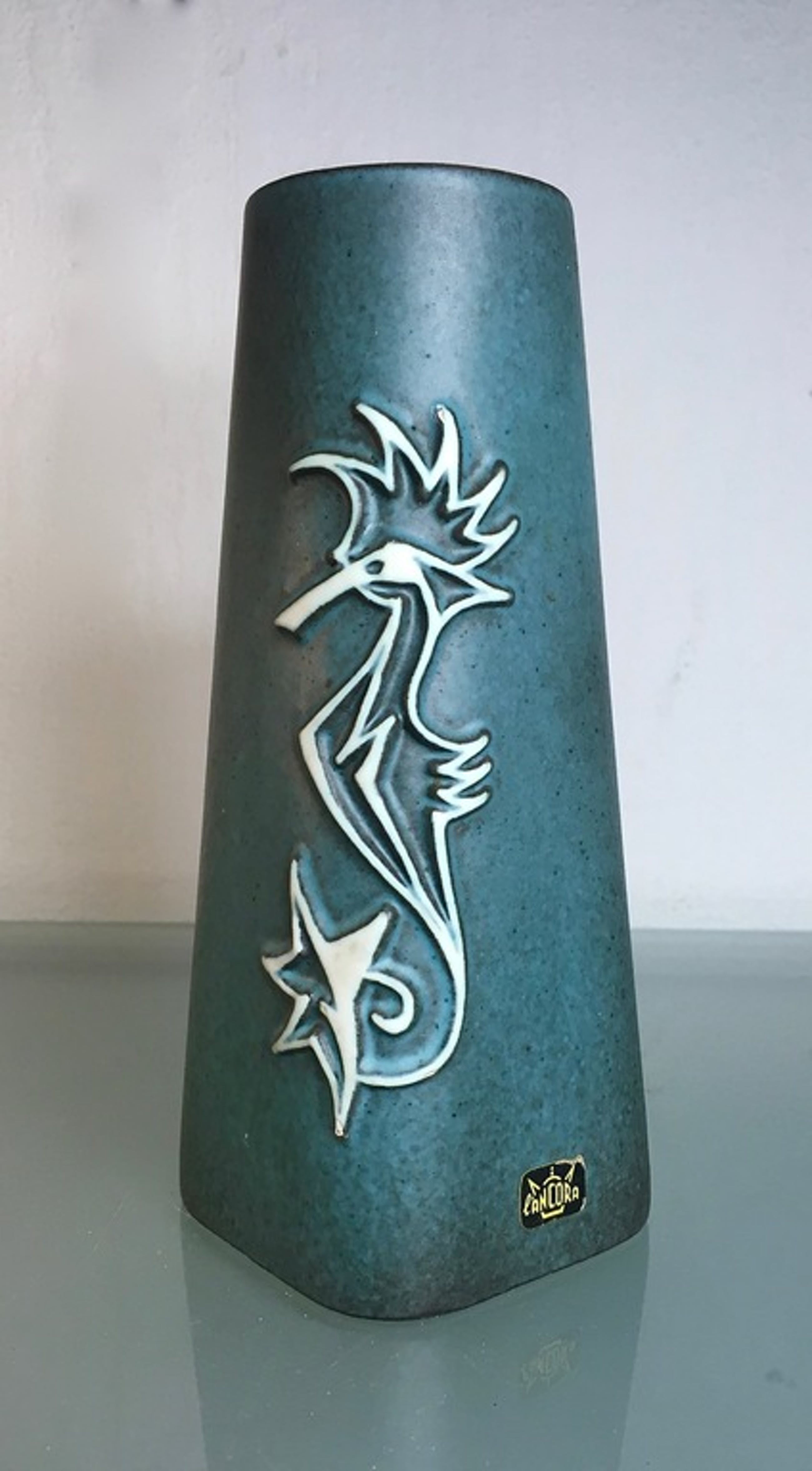 Uitstekende zeer decoratieve L'ancora vaas met 'zeepaard' reliëf decor uit ca. 1960.