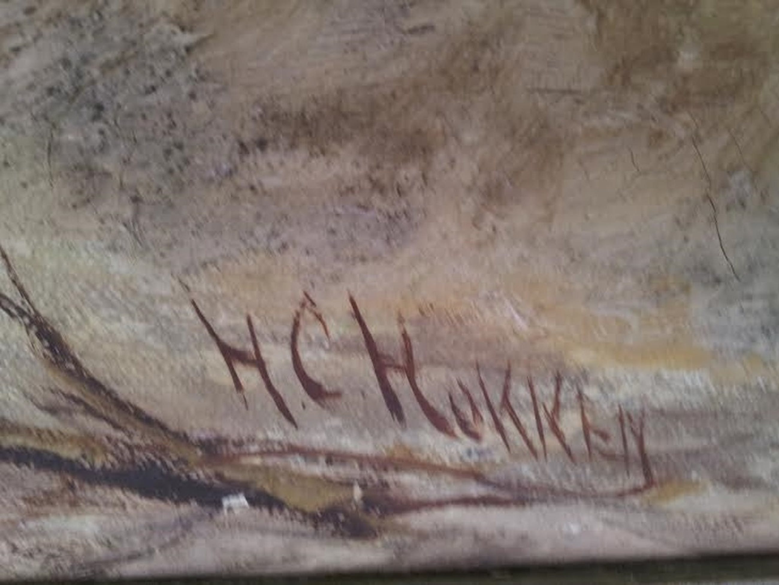 Groot werk door de Sliedrechtse schilder HC Hokken. Olieverf op doek. Het is ingelijst.