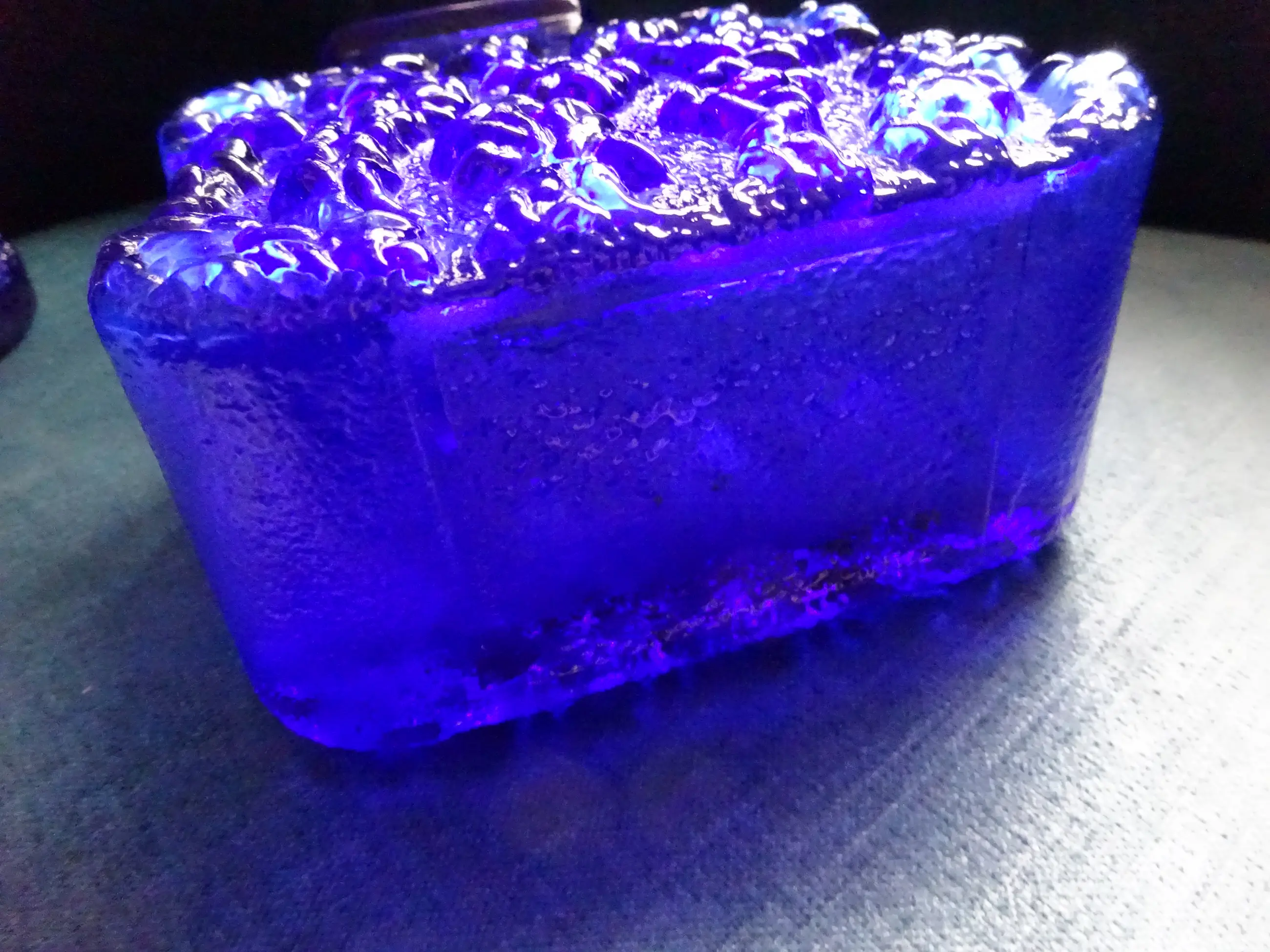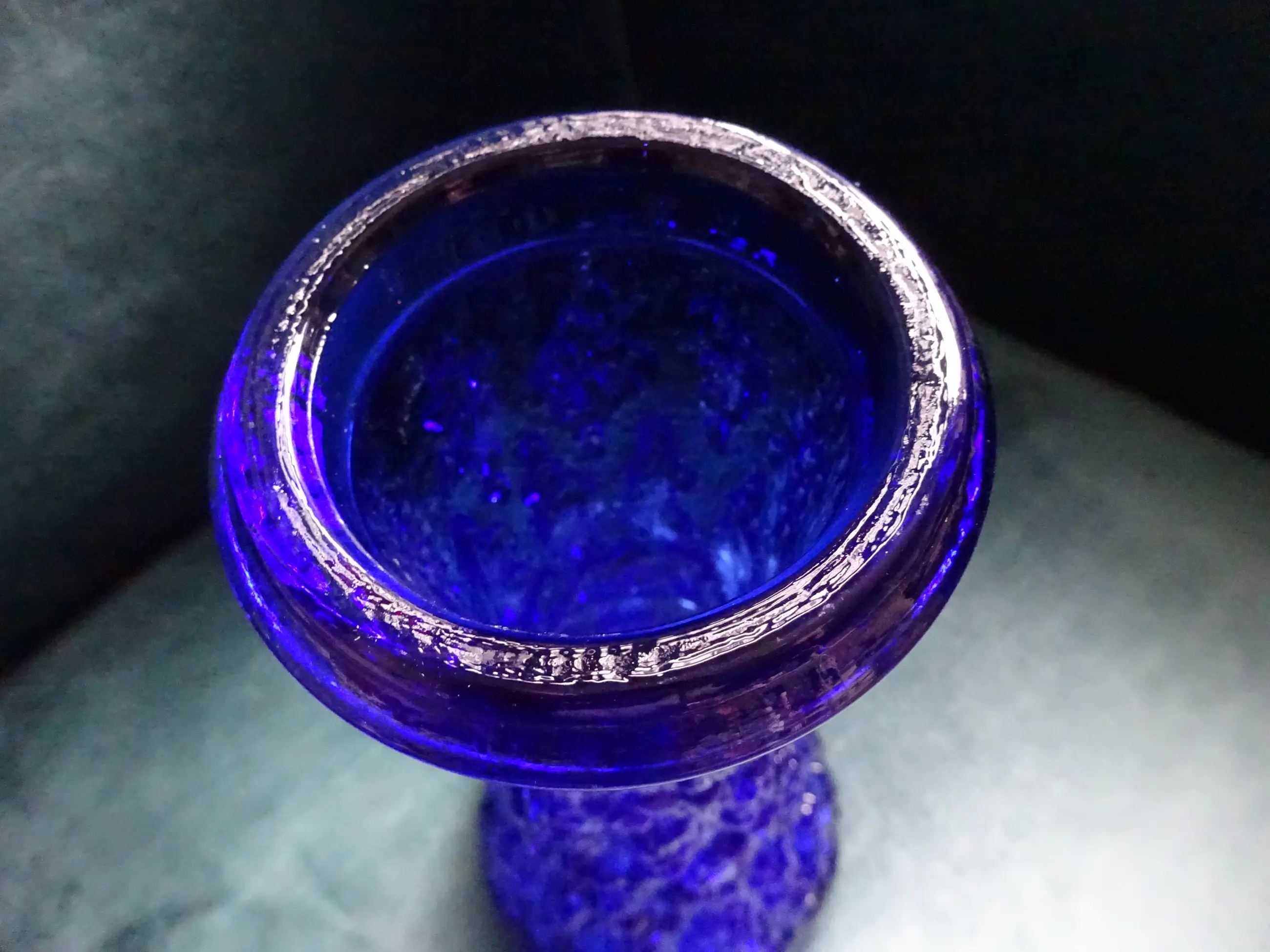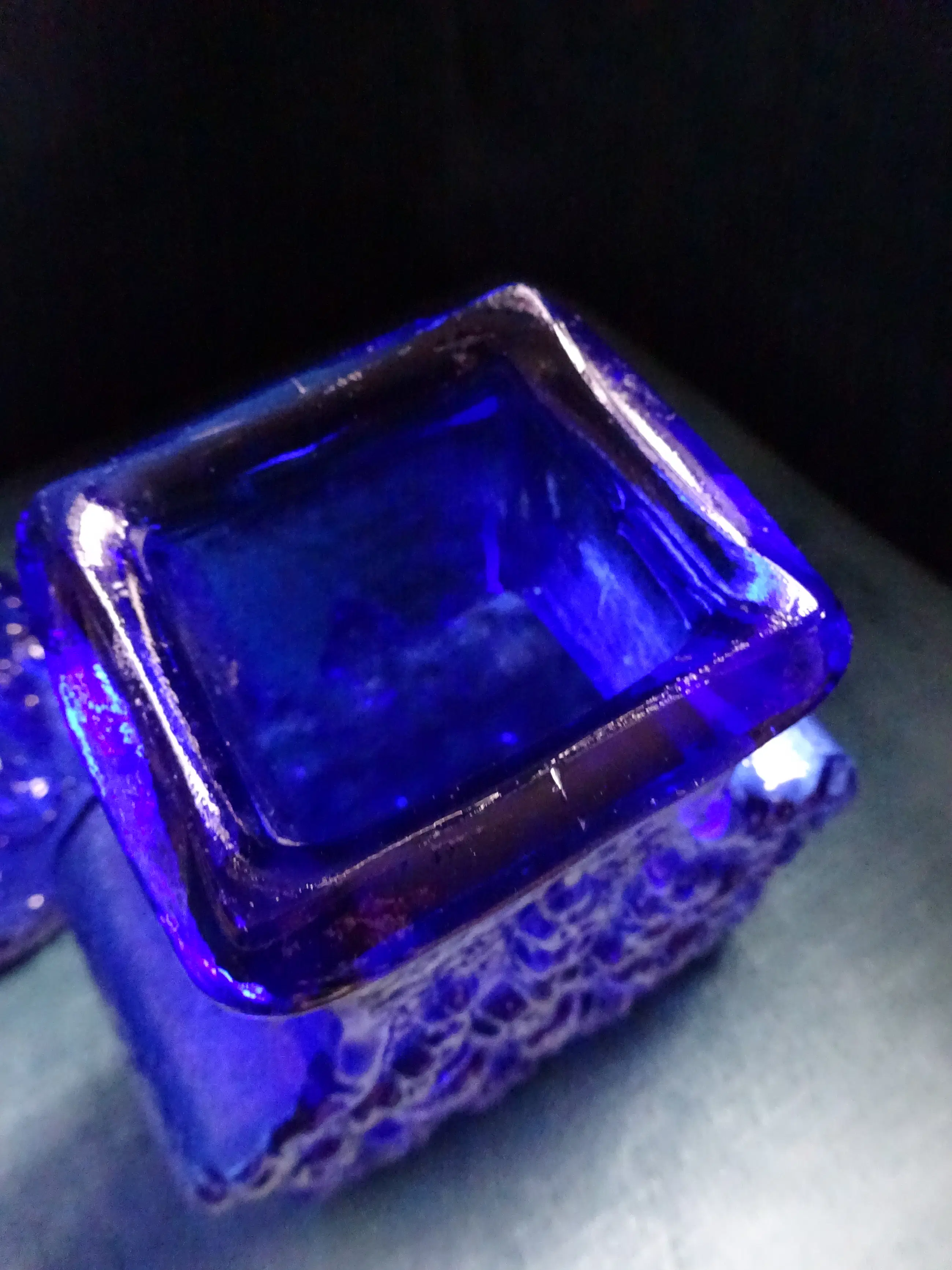 Twee Bark vazen van dik koningblauw - Kobaltblauw geperst glas Ontwerp is geïnspireerd op de natuur: de schors van bomen. Ontwerp: Lars Hellsten 1933 Uitvoering: Skruf Glasbruk Sweden Jaar: 1960-1969 Afmeting hoge vaas: 25 cm, diameter onder 11 cm Afmeting 'Guitar' vaas: ca 17.5 cm, breed 12 cm, diep 6 cm Kleur: Koningsblauw of Kobaltblauw Land: Zweden Conditie: mooie gave staat