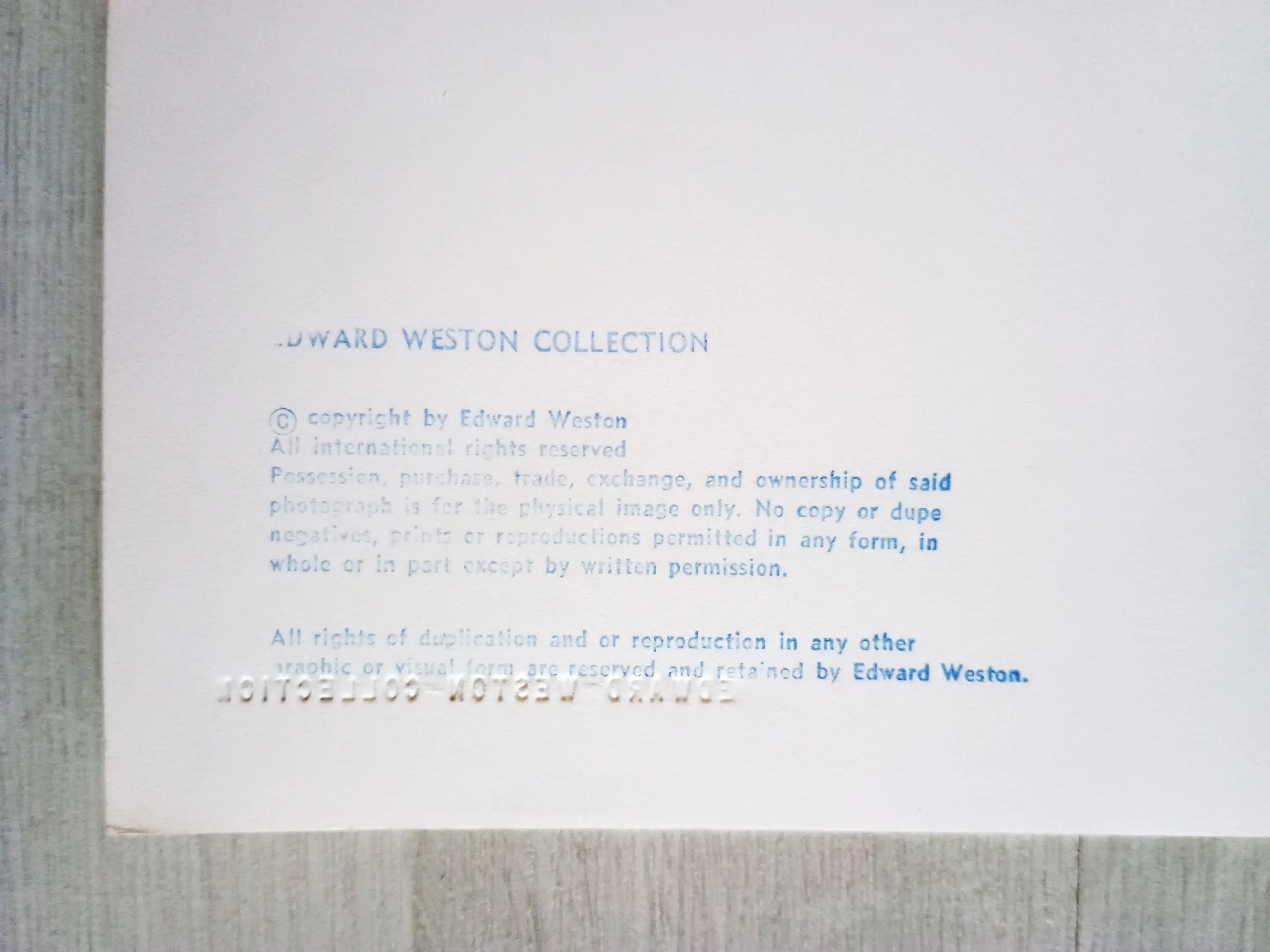De afbeelding is voorzien van een reliëfstempel uit de Edward Weston-collectie.