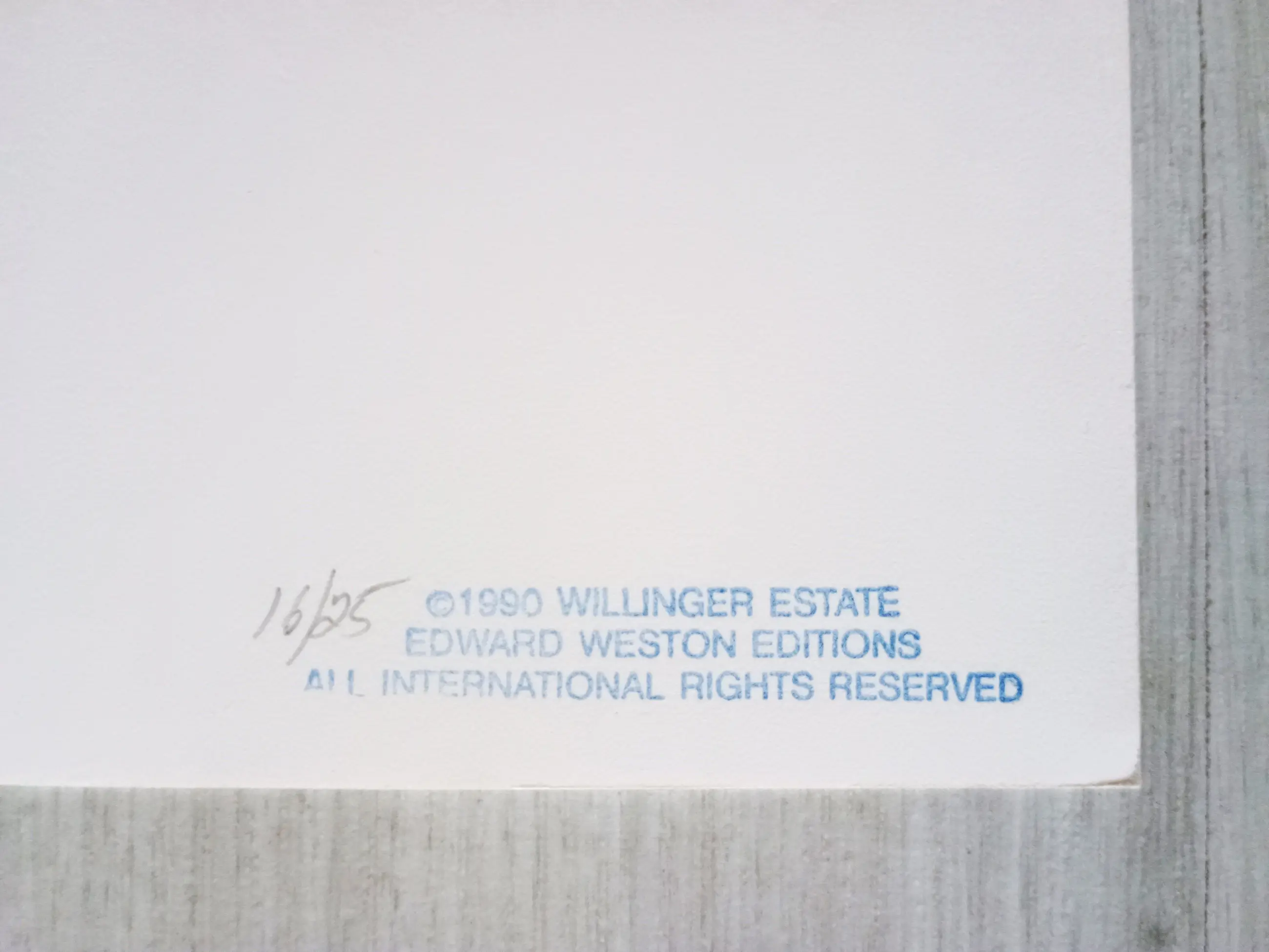 Op de achterzijde gestempeld met de inscriptie "Edward Weston Collection" en "Willinger Estate", handgenummerd.
