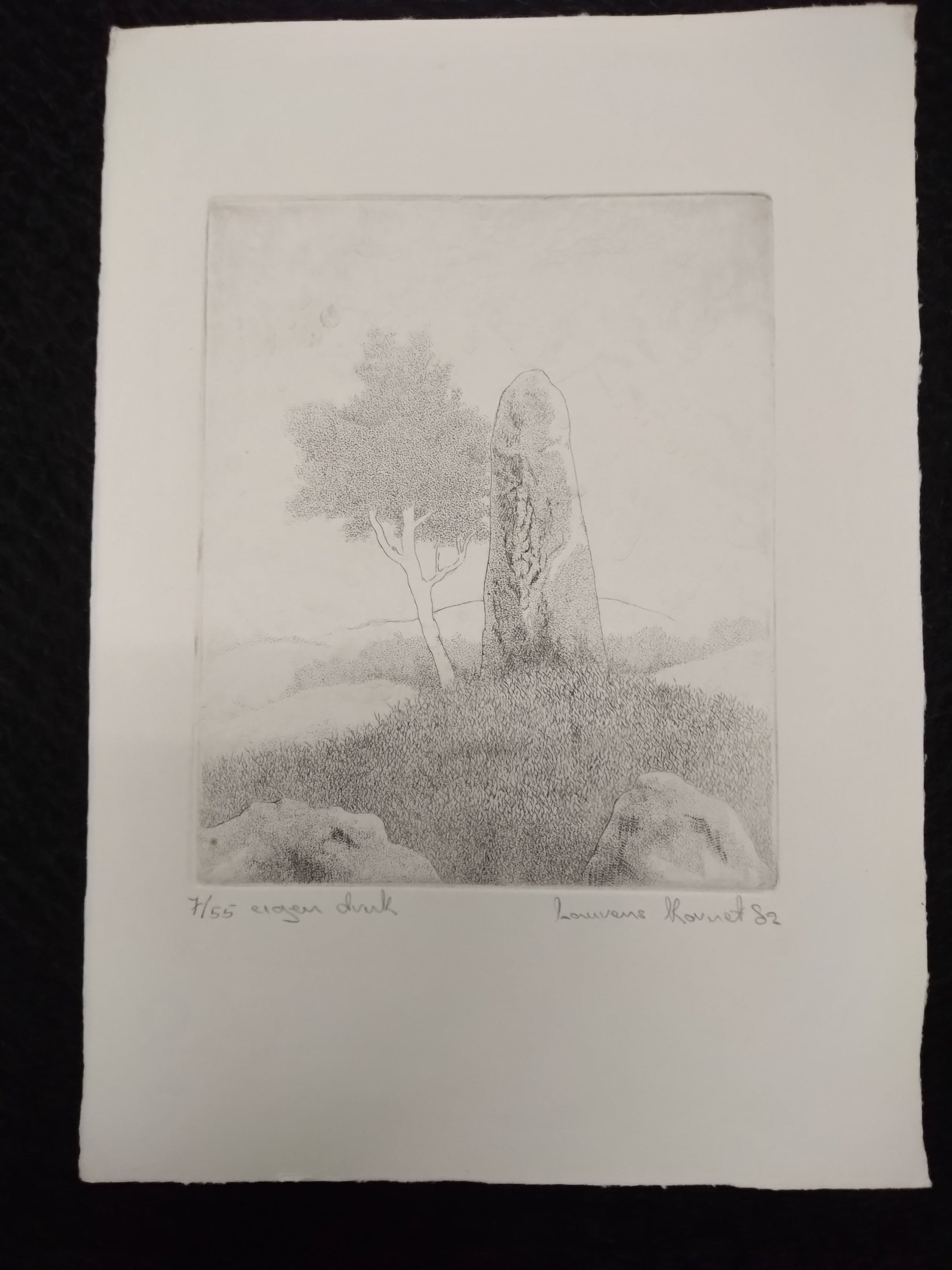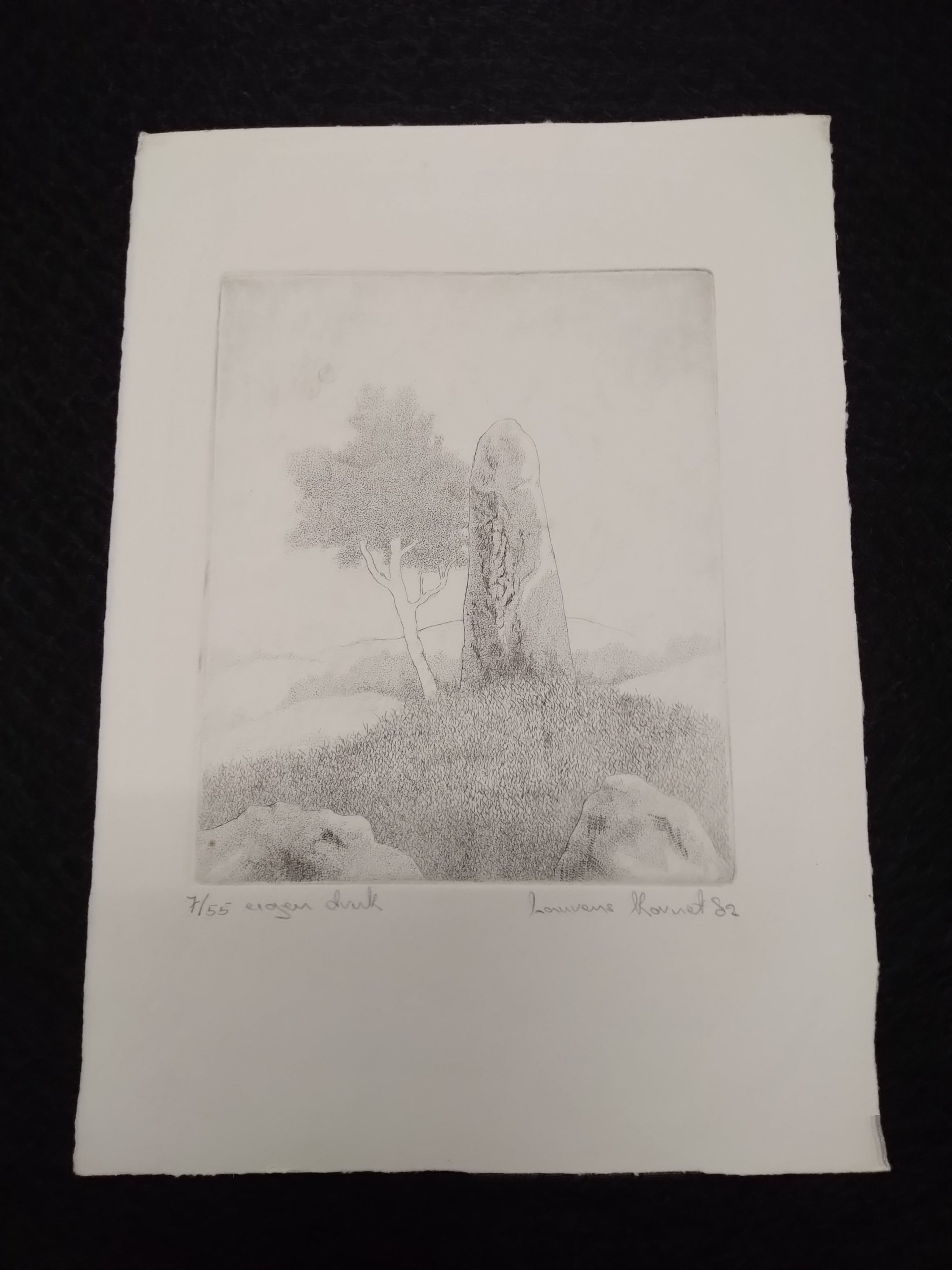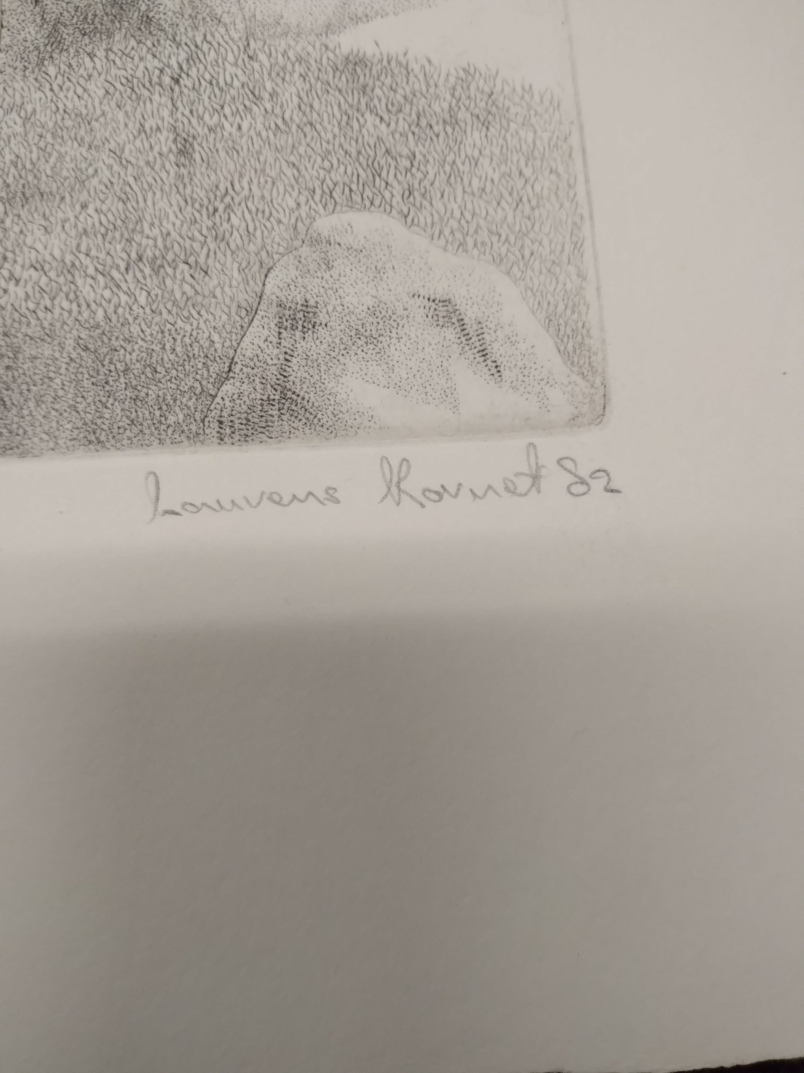 Kunstenaar Laurens kornet Geen titel Nr 7/55Eigen druk Afm papier 18x25cm hoog