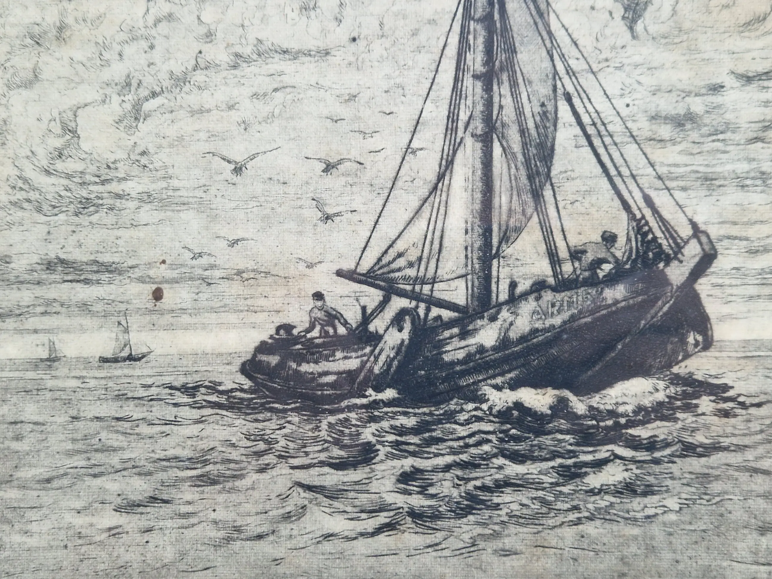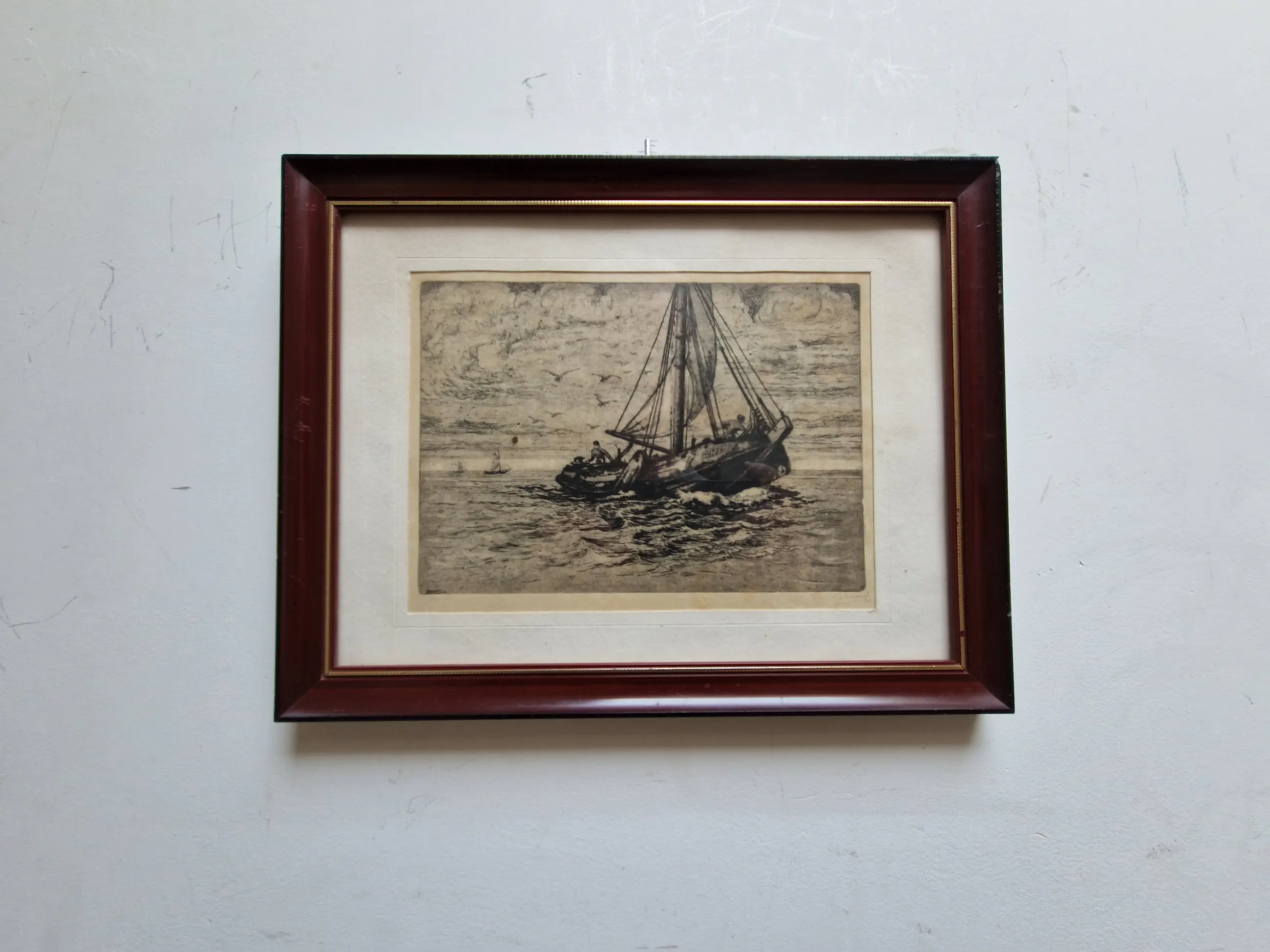 Heel fraaie ets van een Arnemuidse Hoogaars door Laurens Jannis Braams.