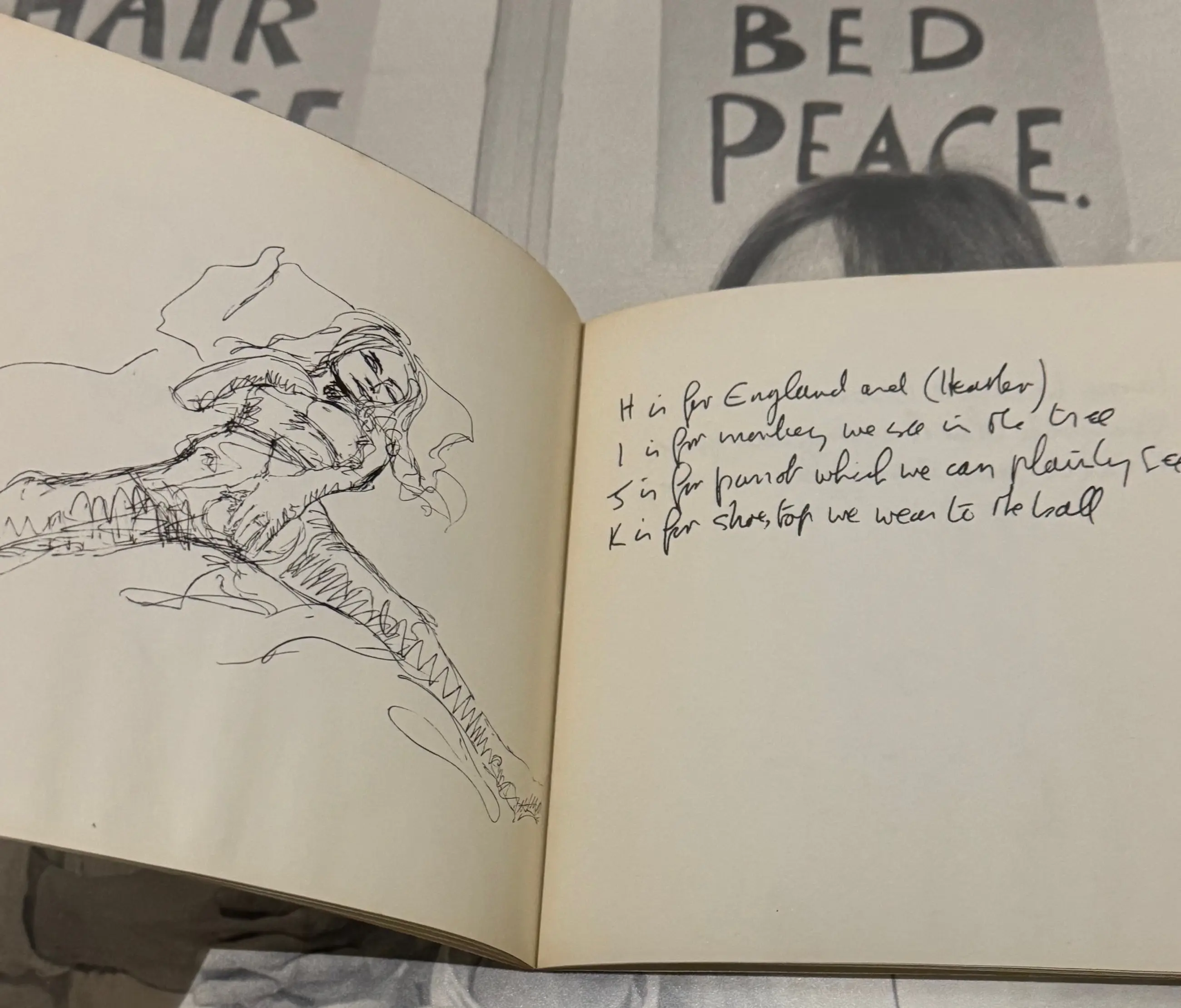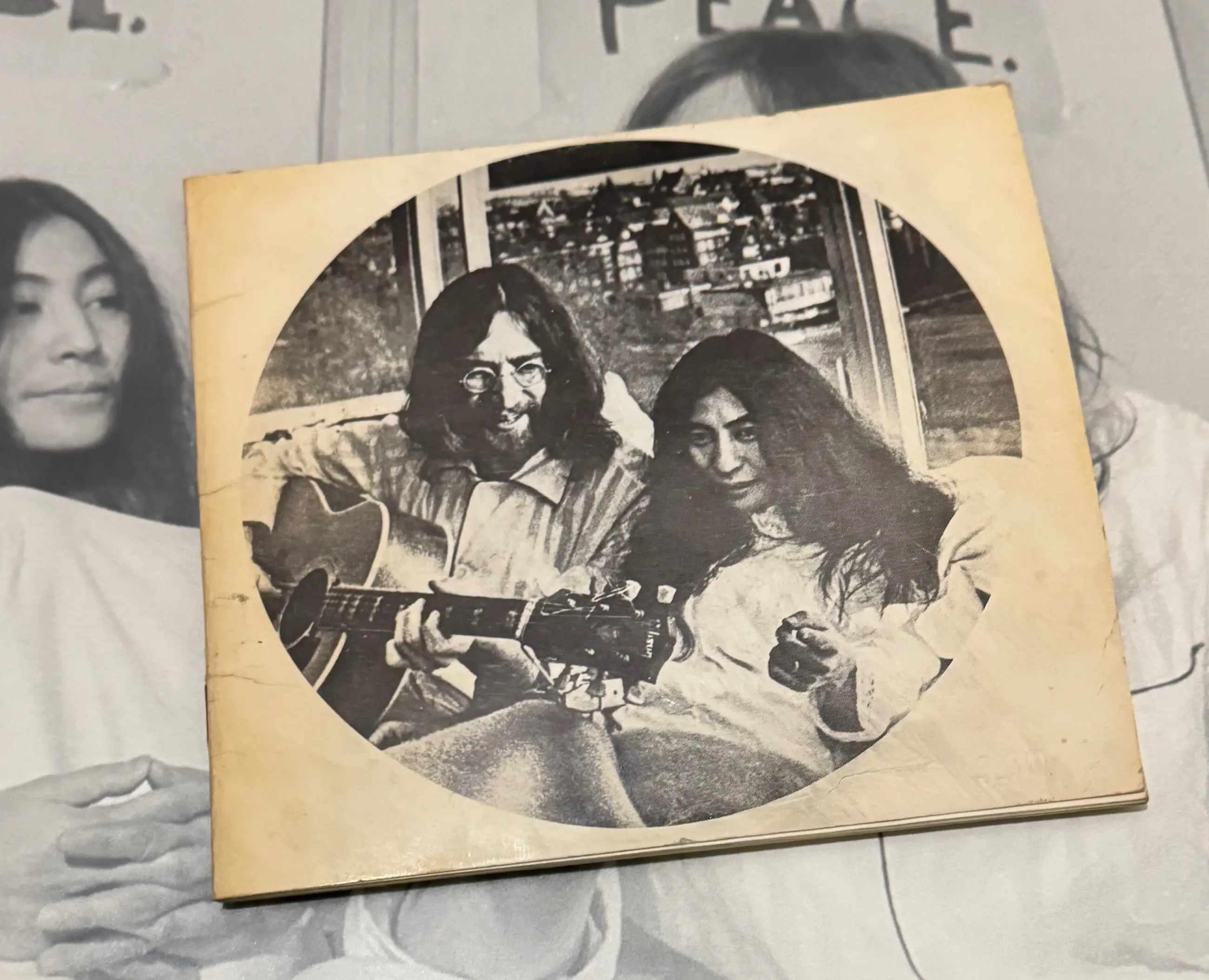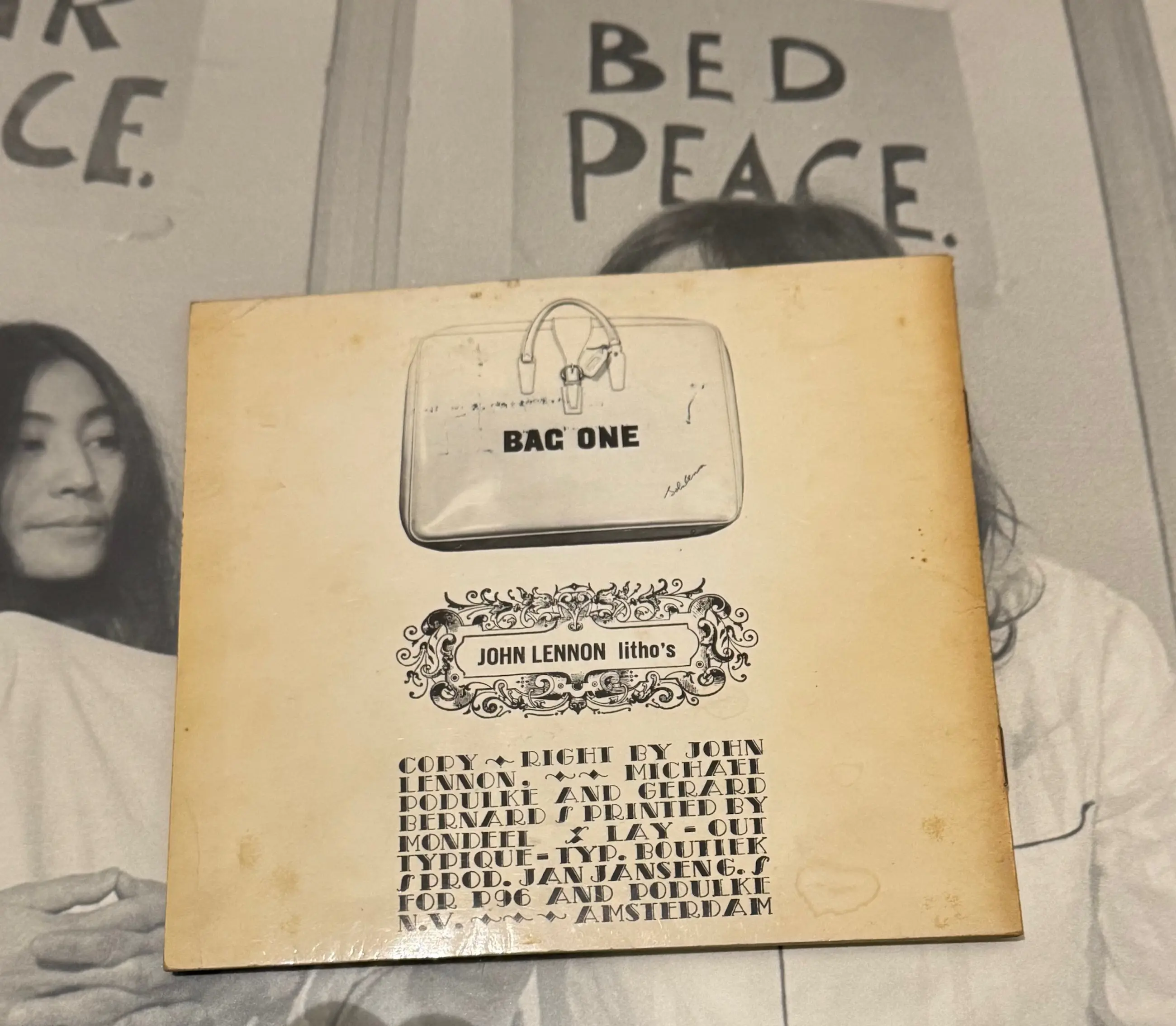 Bij de foto ook een boekje met afbeeldingen van de litho's die destijds door John Lennon gemaakt zijn.