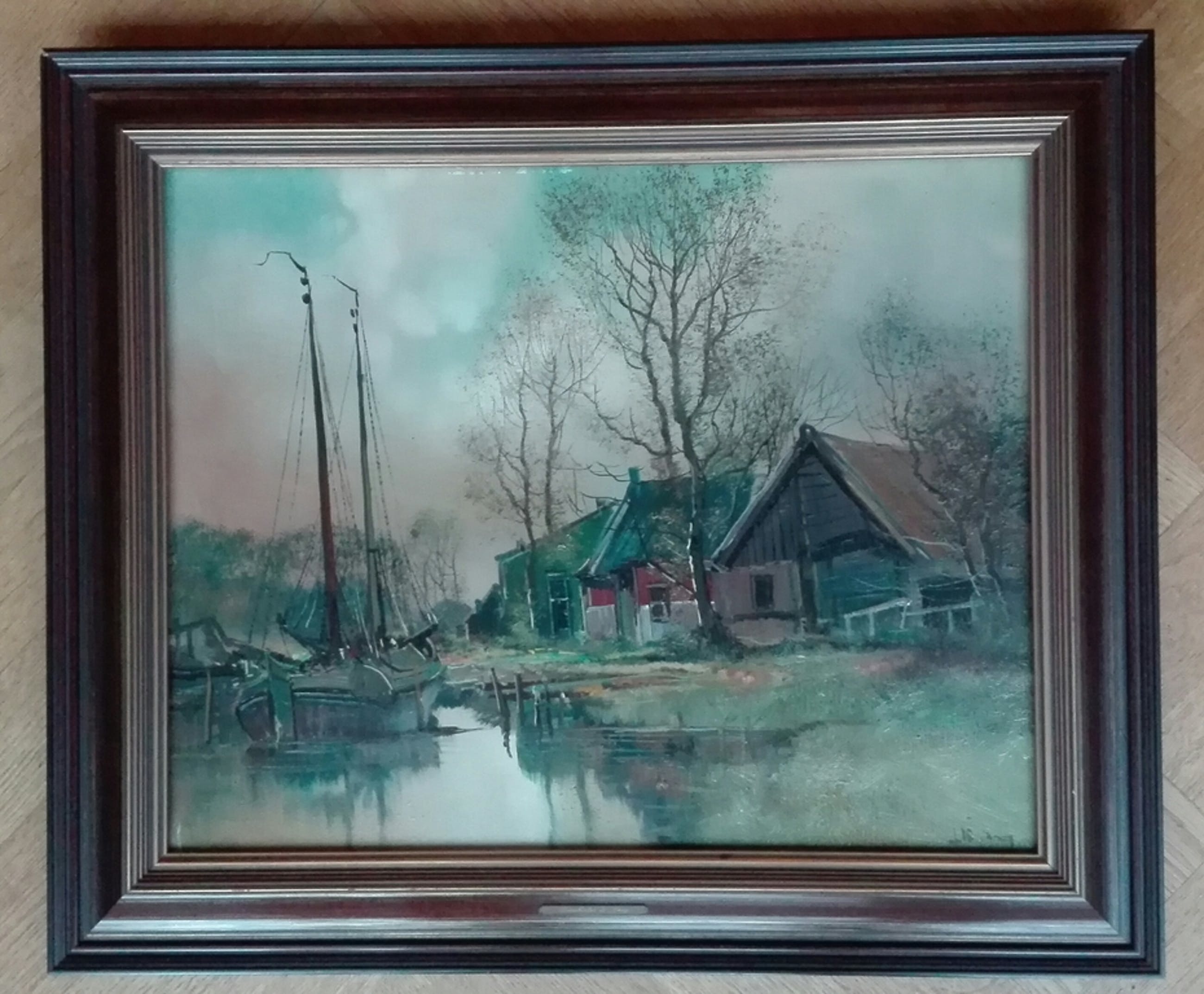 Fraai ingelijst olieverf op paneel in het formaat 52 cm x 62 cm.