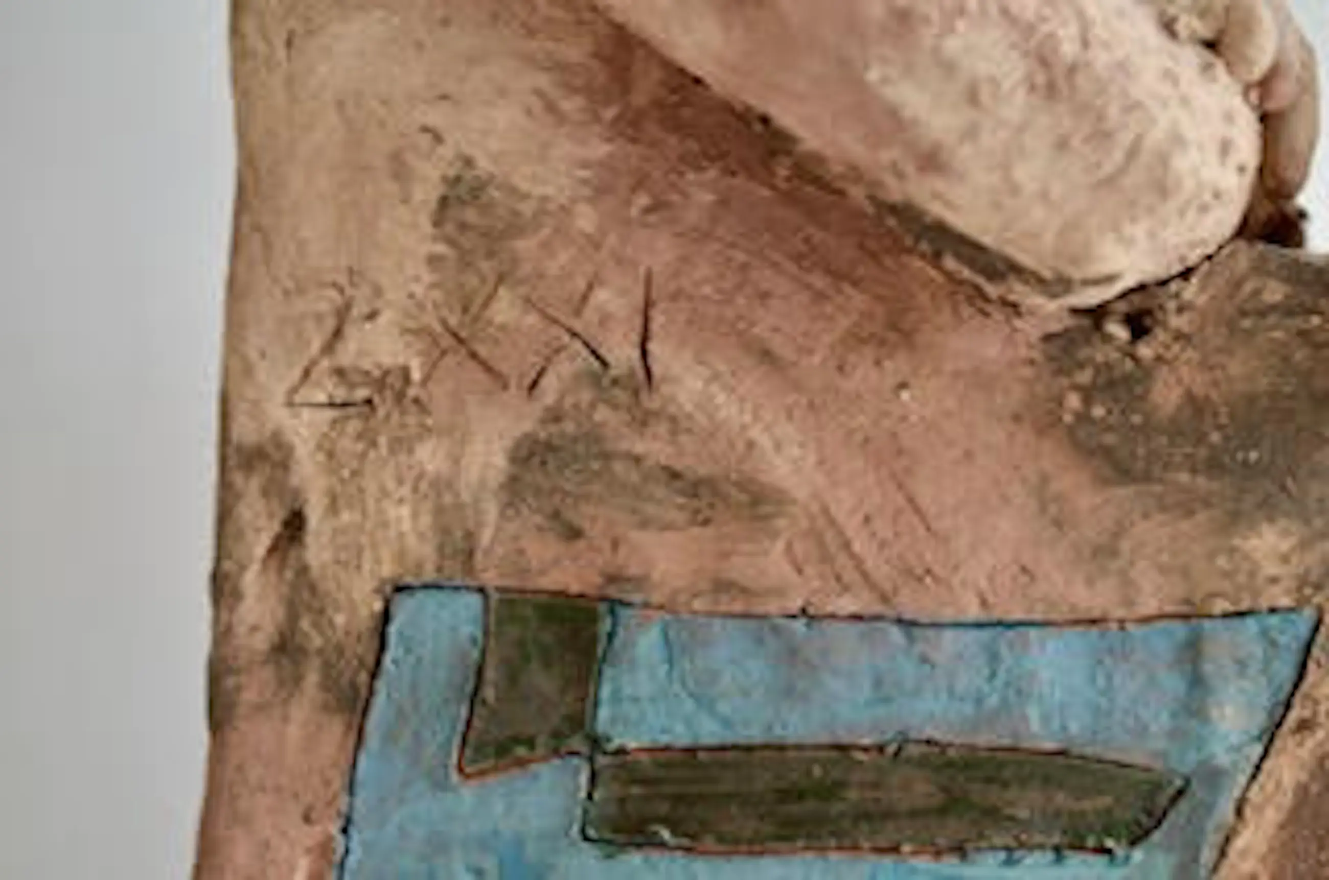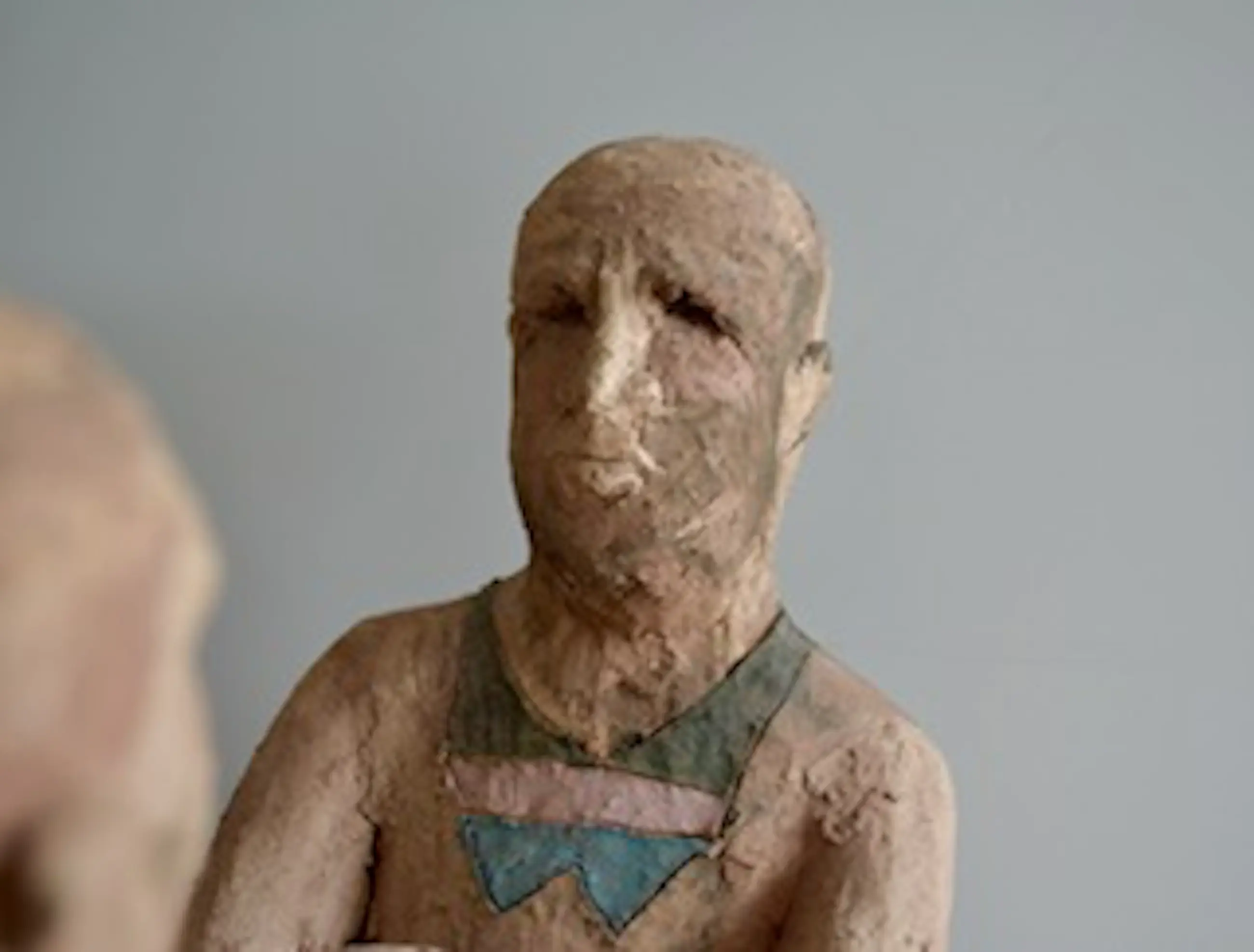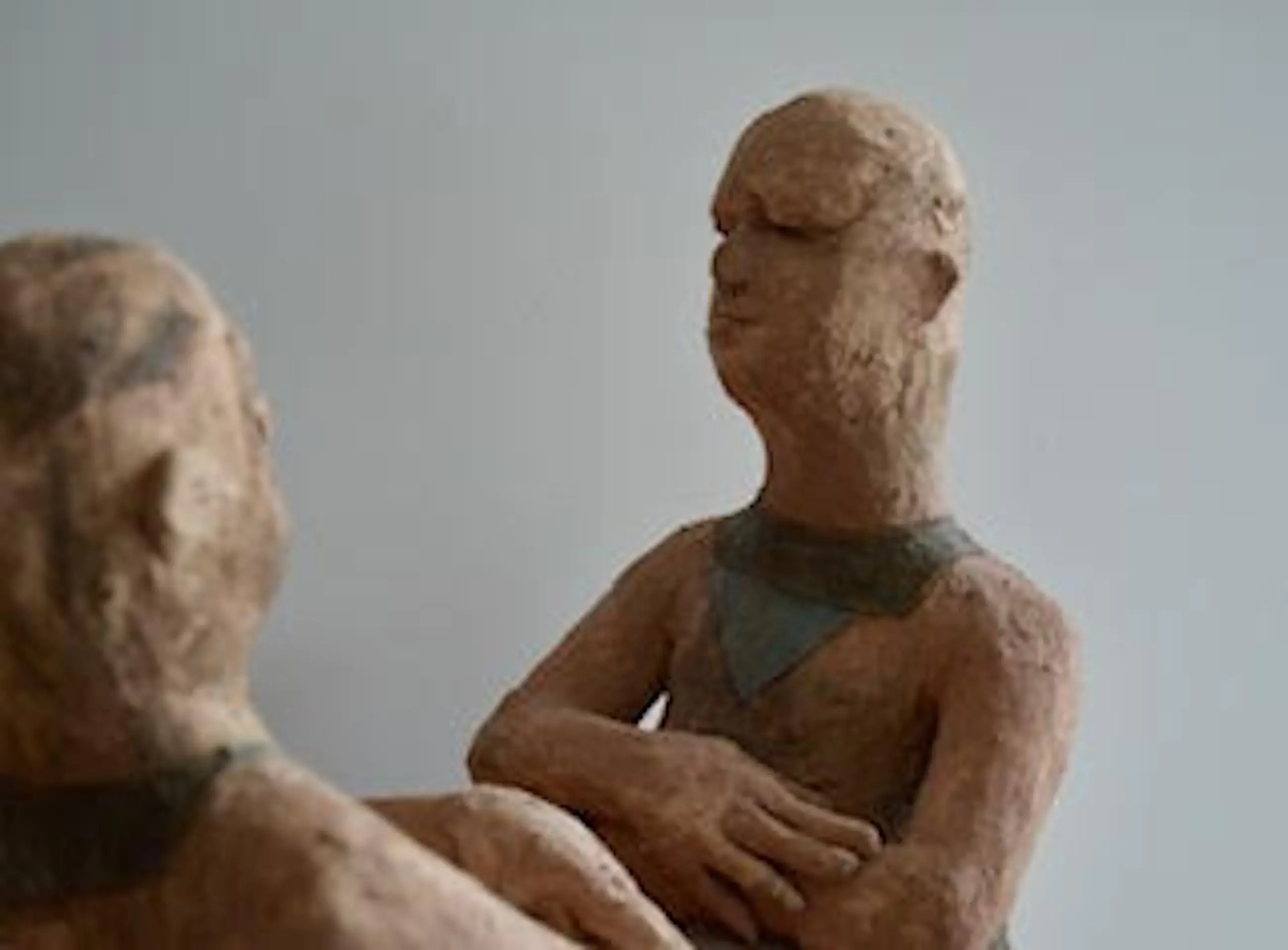 D'haese Lebuin is een Belgische dichter, beeldhouwer, schilder. Geb. 1956 Hij communiceert via zijn werk met het publiek dat op die manier inzicht krijgt in zijn denkwereld. Zijn onderwerp is altijd "de mens" Dit werk is gemonogrammeerd "D" voor D'haese Lebuin Inscriptie LXXI Tekst op het werk "Met andere woorden". Afmetingen H= 35cm Br = 12cm L = 25cm