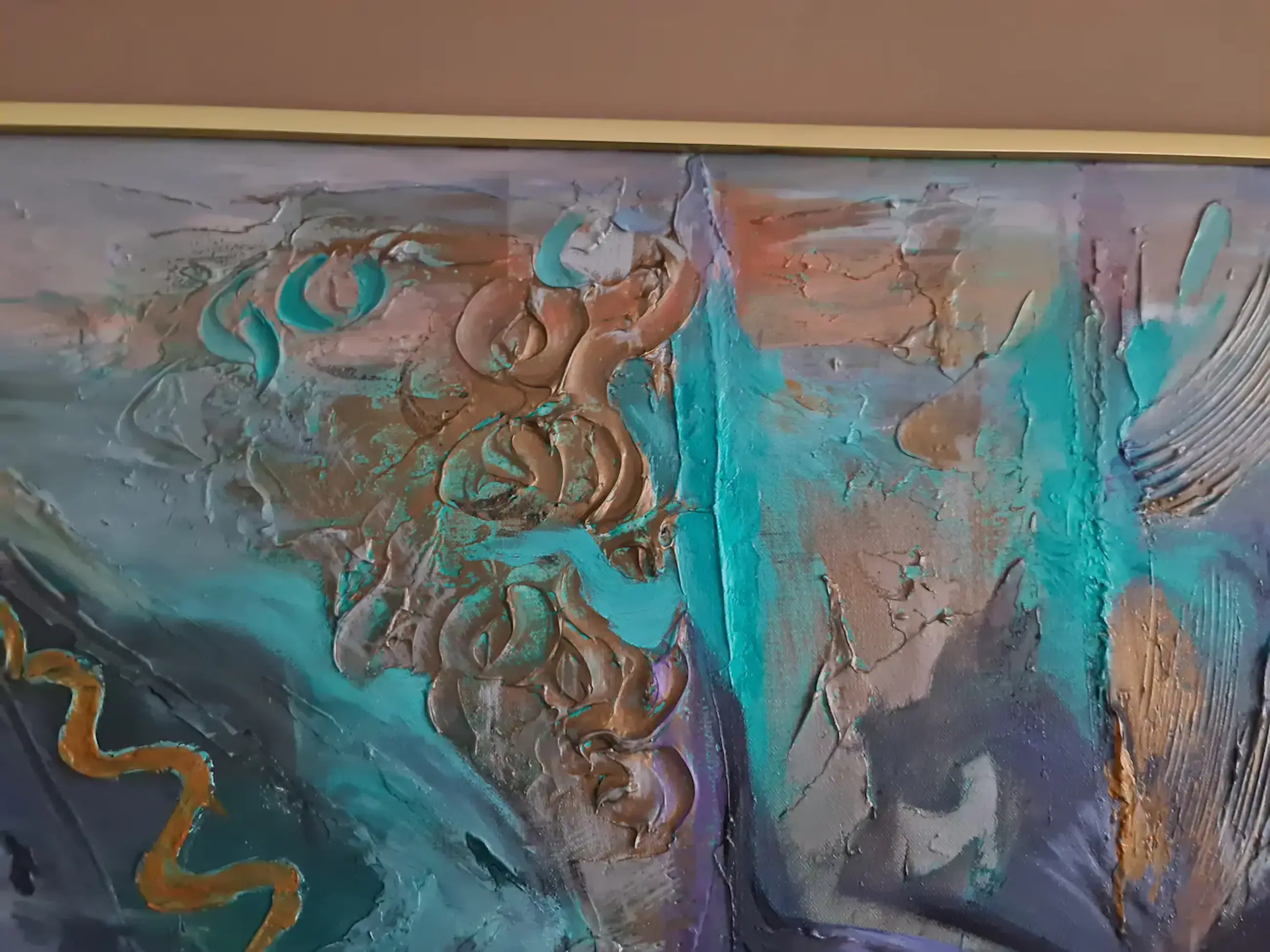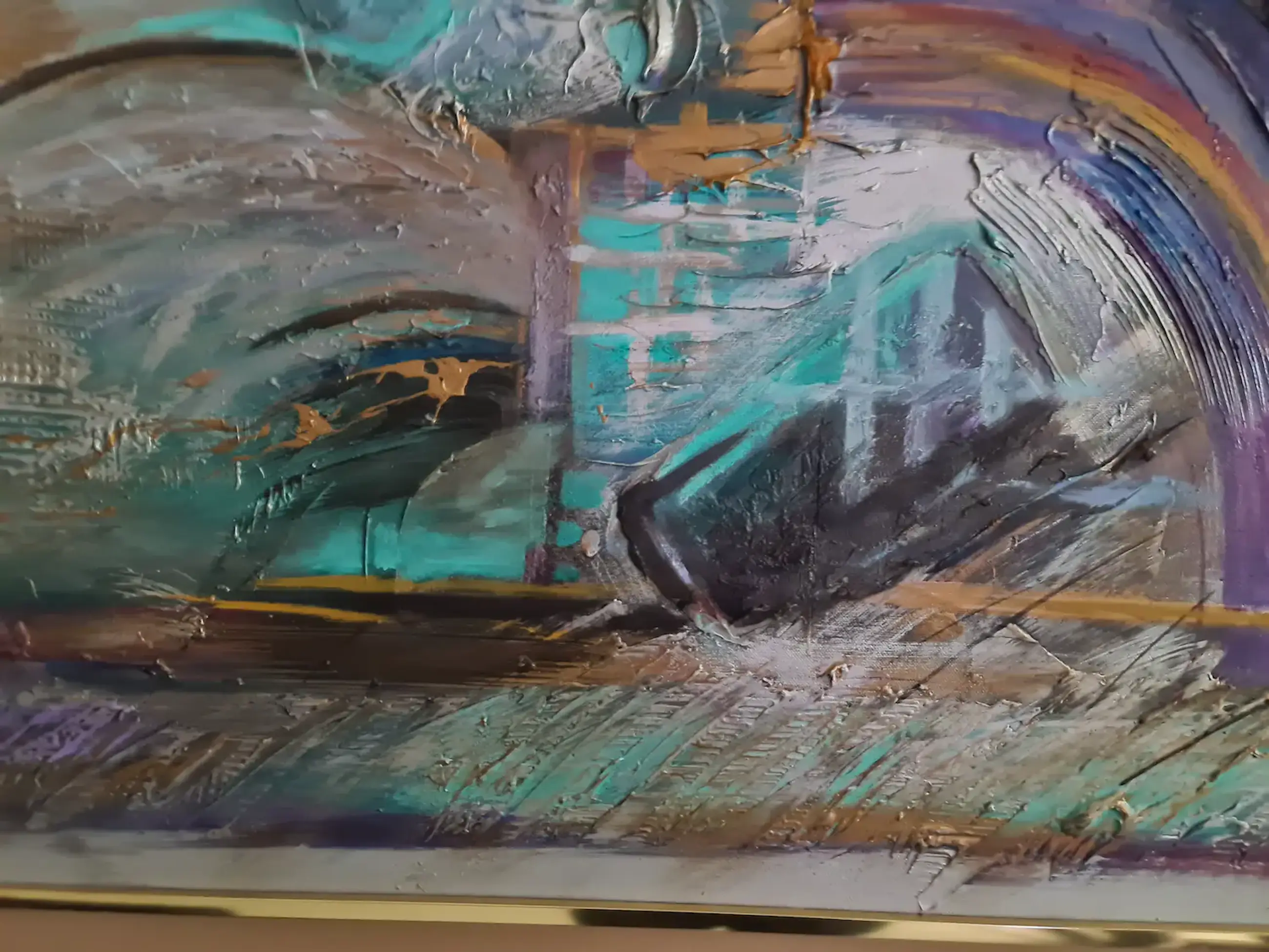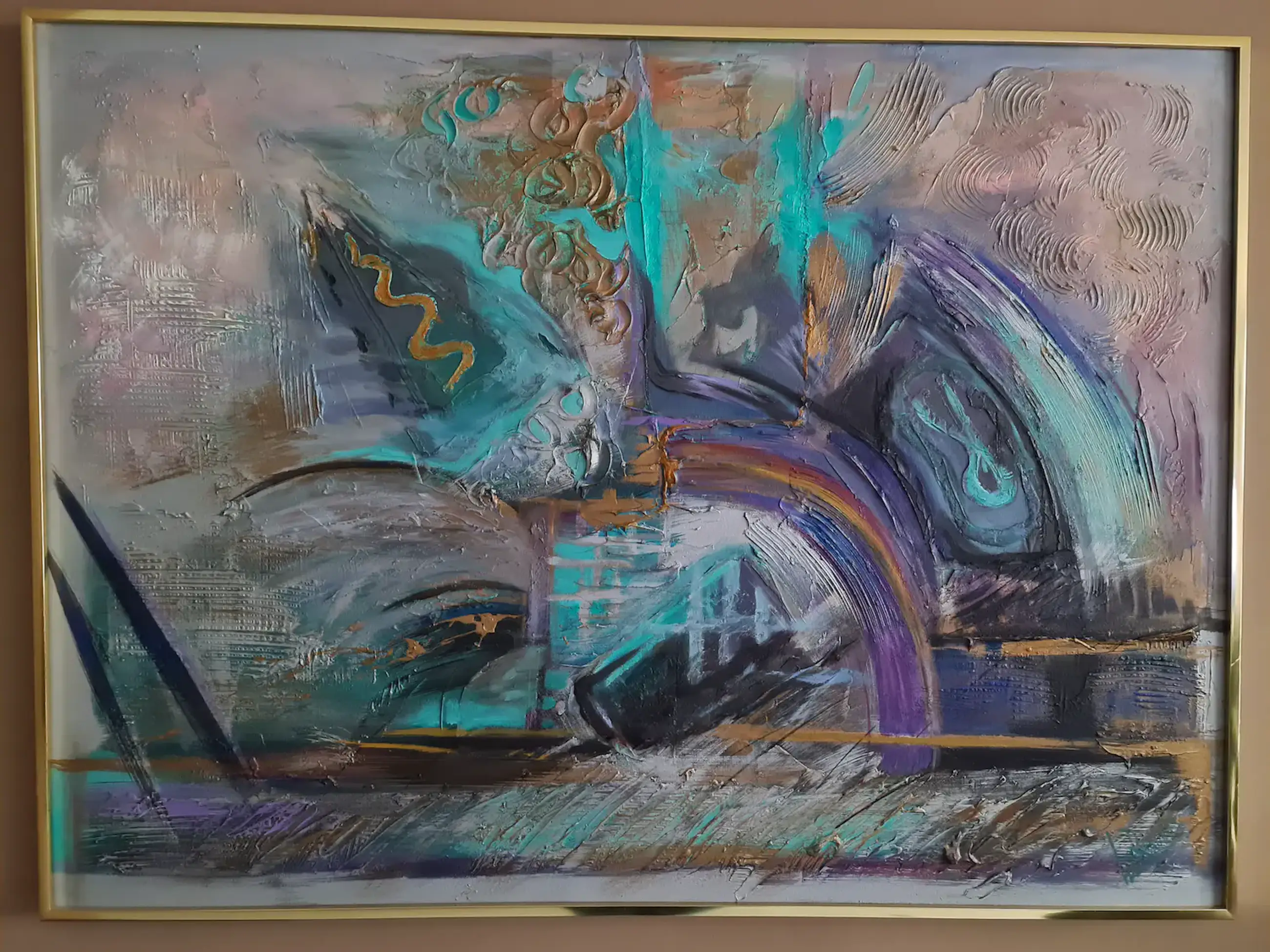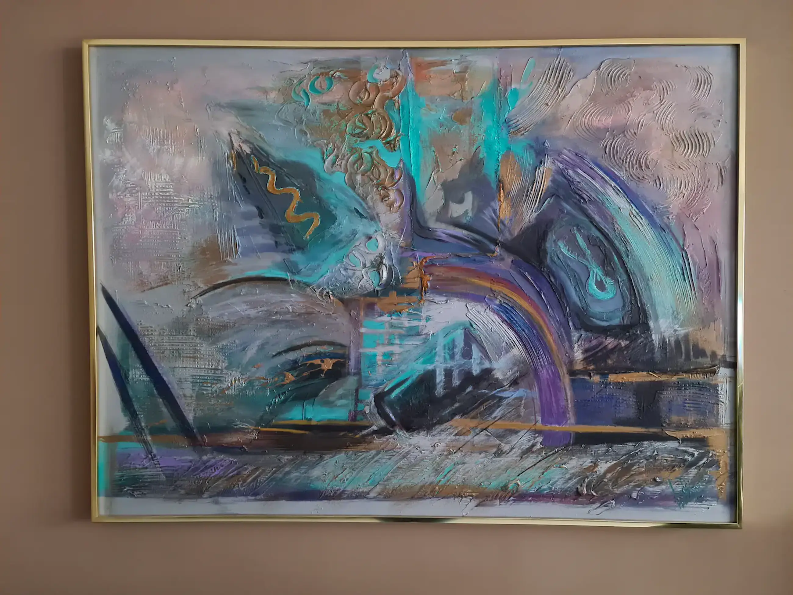 De mooie gouden lijst is van Vanguard Studios. Het is een modern schilderij met mooie, sprekende kleuren.