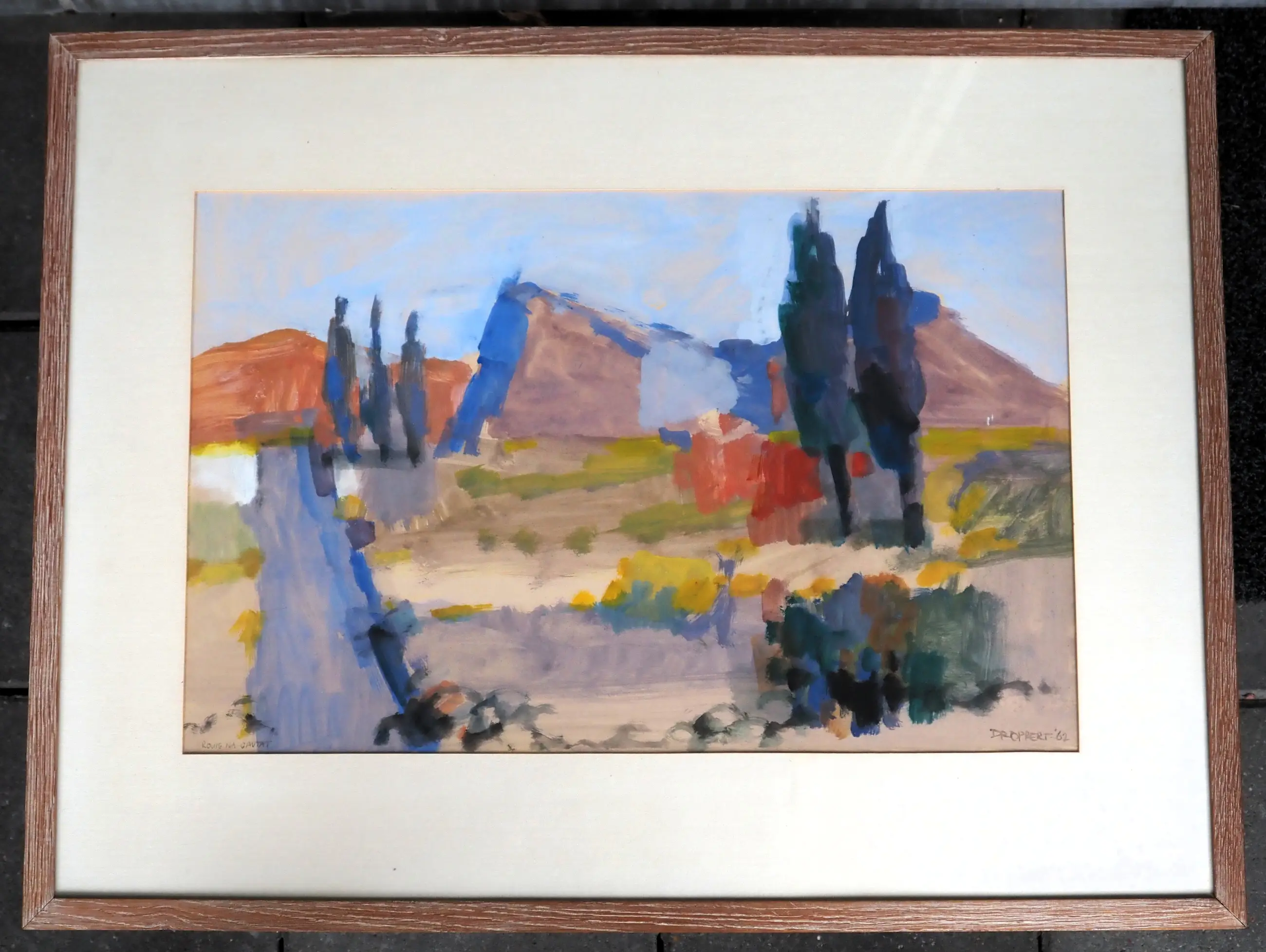 Ik ben al vele jaren in het bezit van dit kleurrijke schilderij van Leen Droppert uit 1962, met als titel ‘route na Cavtat' (een kustplaats in het huidige Kroatië). Het is afkomstig van mijn vroegere architectenbureau GelukTreurniet Architecten uit Vlaardingen. De oorspronkelijke oprichter van dit architectenbureau was Gilles Geluk (1925-1981). Vanaf de jaren ’60 van de vorig eeuw werkten Gilles Geluk en Leen Droppert veel samen. O.a. bij de bouw van diverse (basis)scholen in de Vlaardingse Westwijk. De gevels van meerdere van deze door Geluk ontworpen gebouwen werden verfraaid met een kunstwerk van Droppert. Waarschijnlijk is Gilles Geluk in die periode in het bezit gekomen van het eerdergenoemde schilderij. Het heeft vele jaren gehangen in de hal van ons architectenbureau aan het Liesveld. Na mijn pensionering en beëindiging van de activiteiten van GelukTreurniet Architecten in 2013 heeft het een mooie plaats gekregen in mijn woonhuis. In verband met mijn recente verhuizing naar een veel kleiner appartement denk ik dat nu de tijd gekomen is om er afstand van te doen.