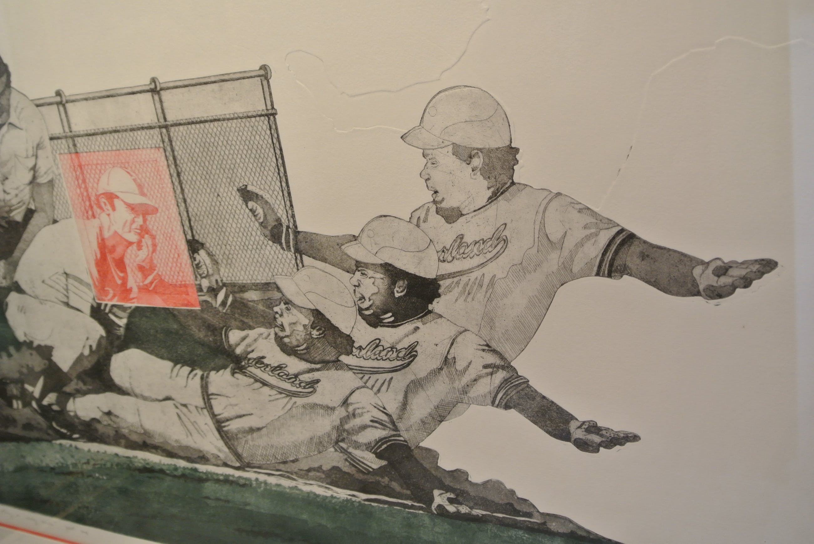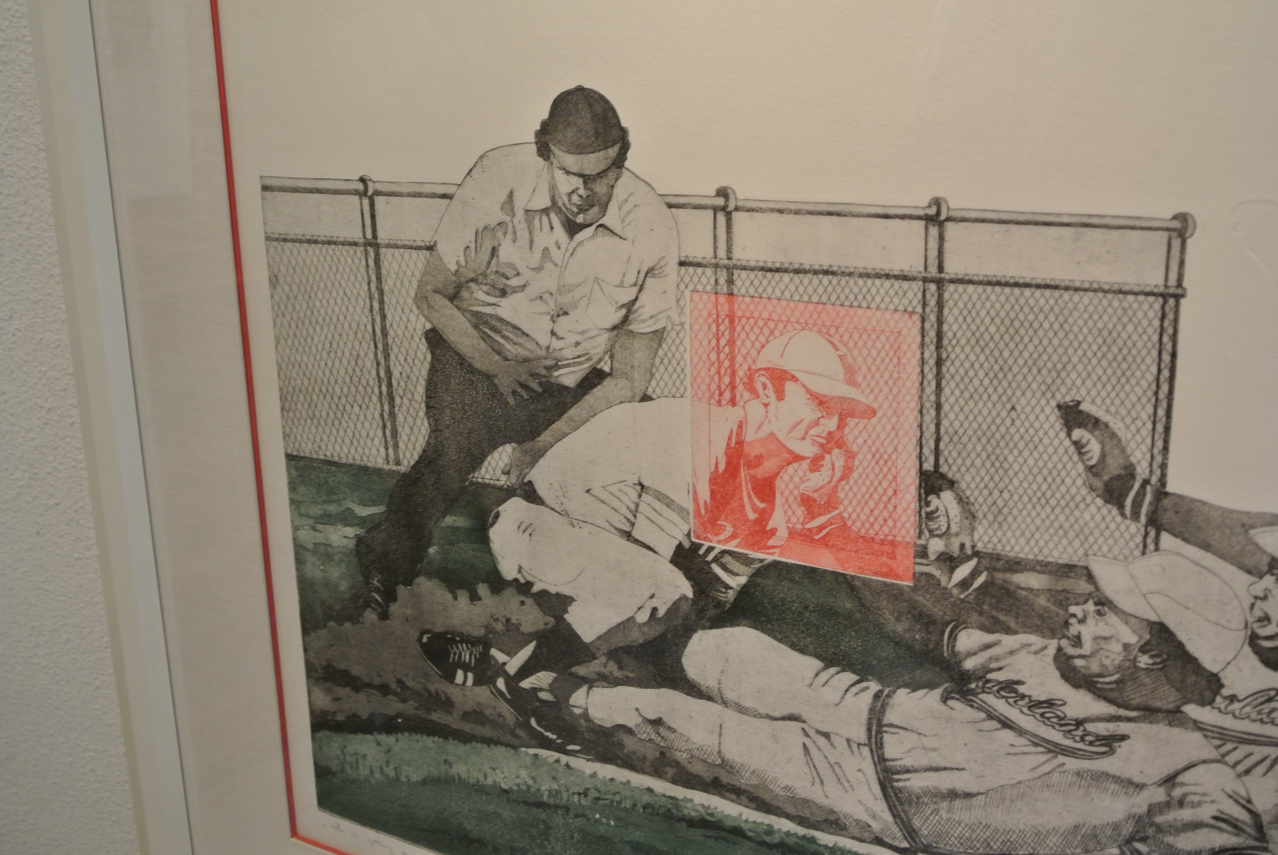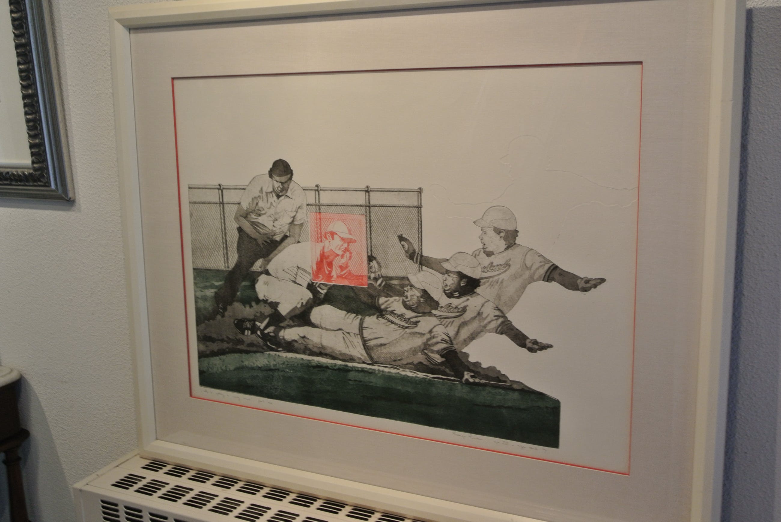 Voorstelling: De Vier Honkbalspelers bij scheidsrechter met silhouet(zie foto)